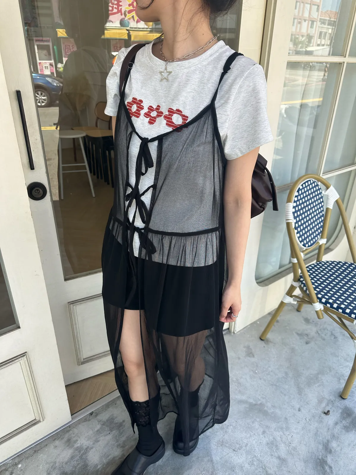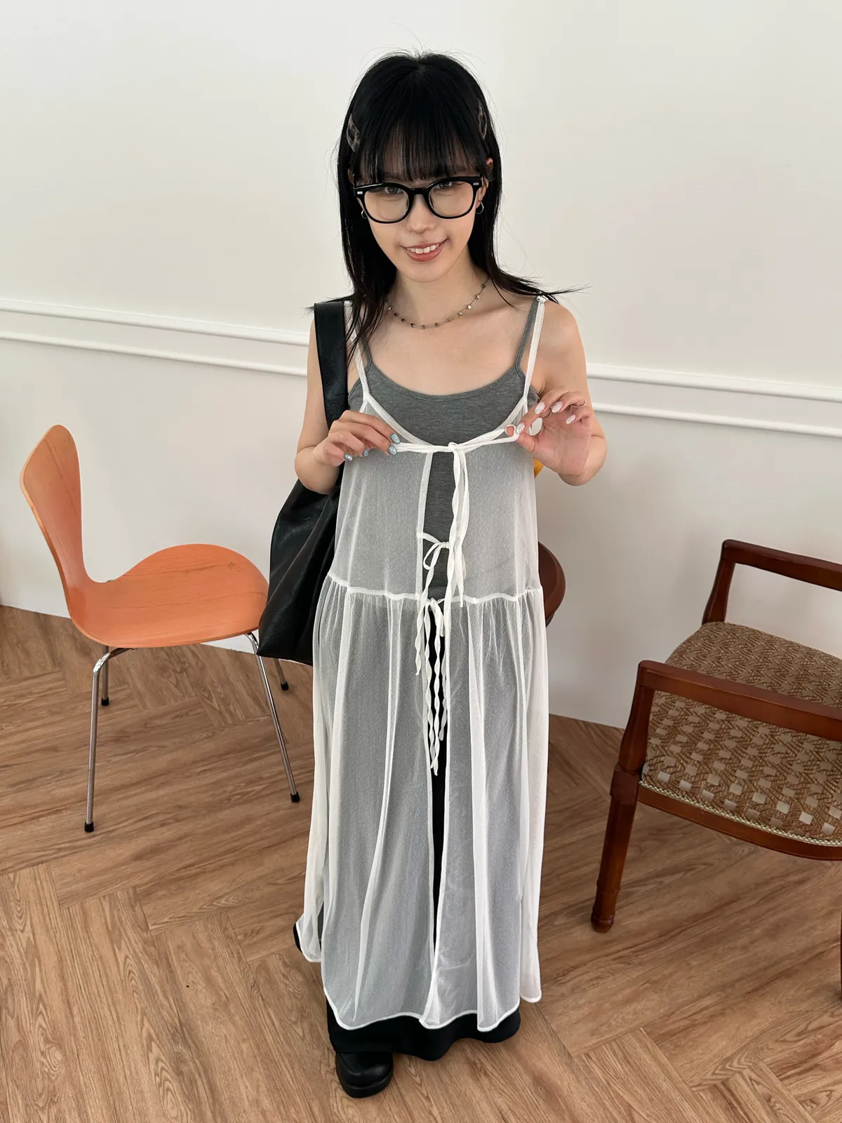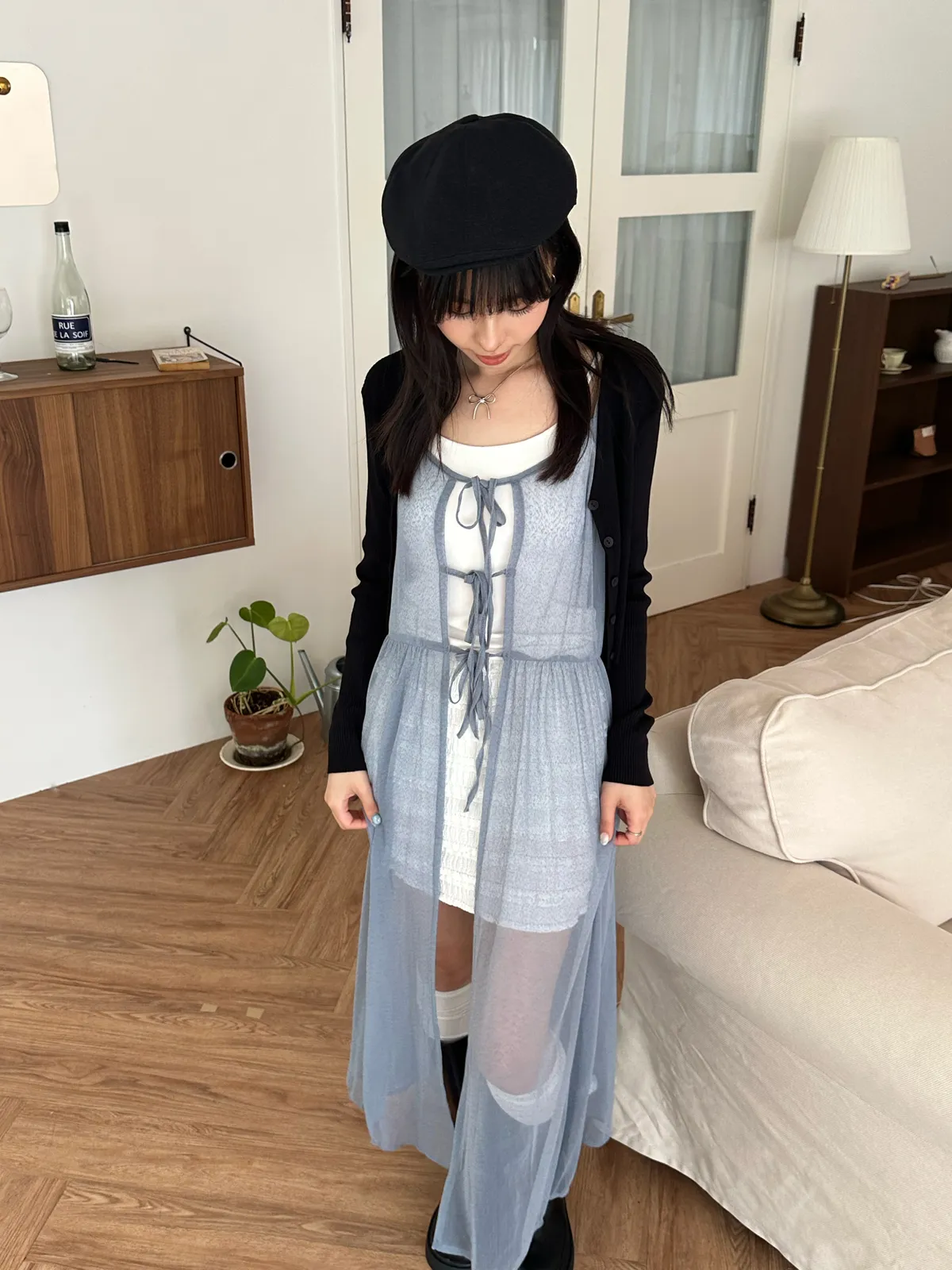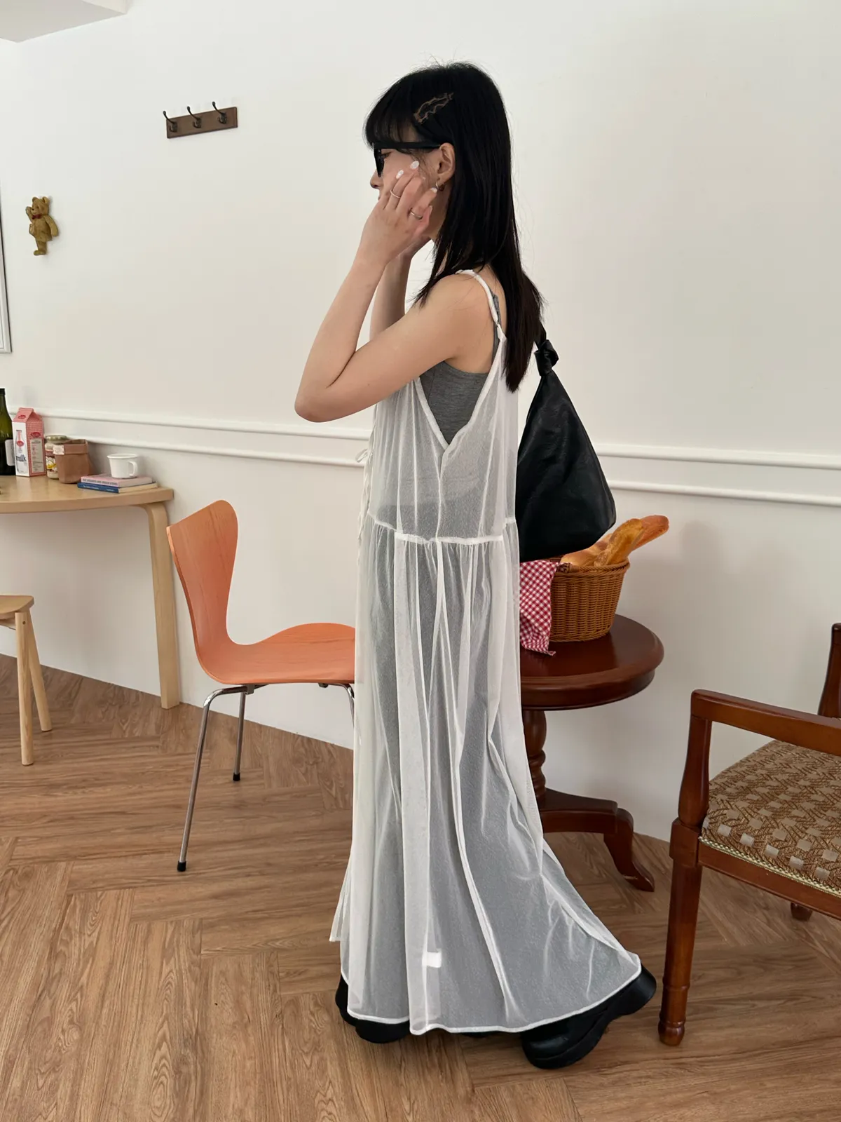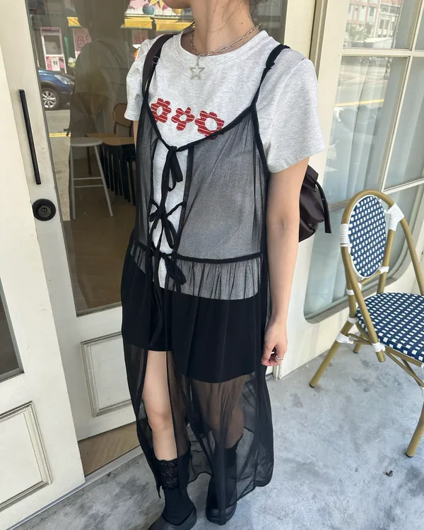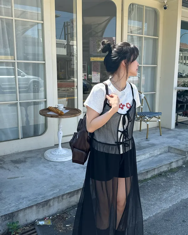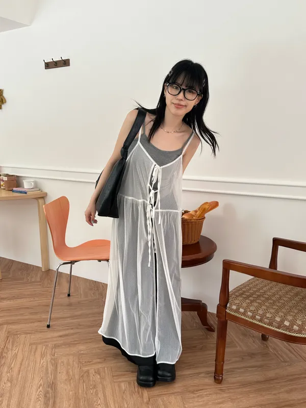 疊穿單品 透膚雪紡洋裝-4col
