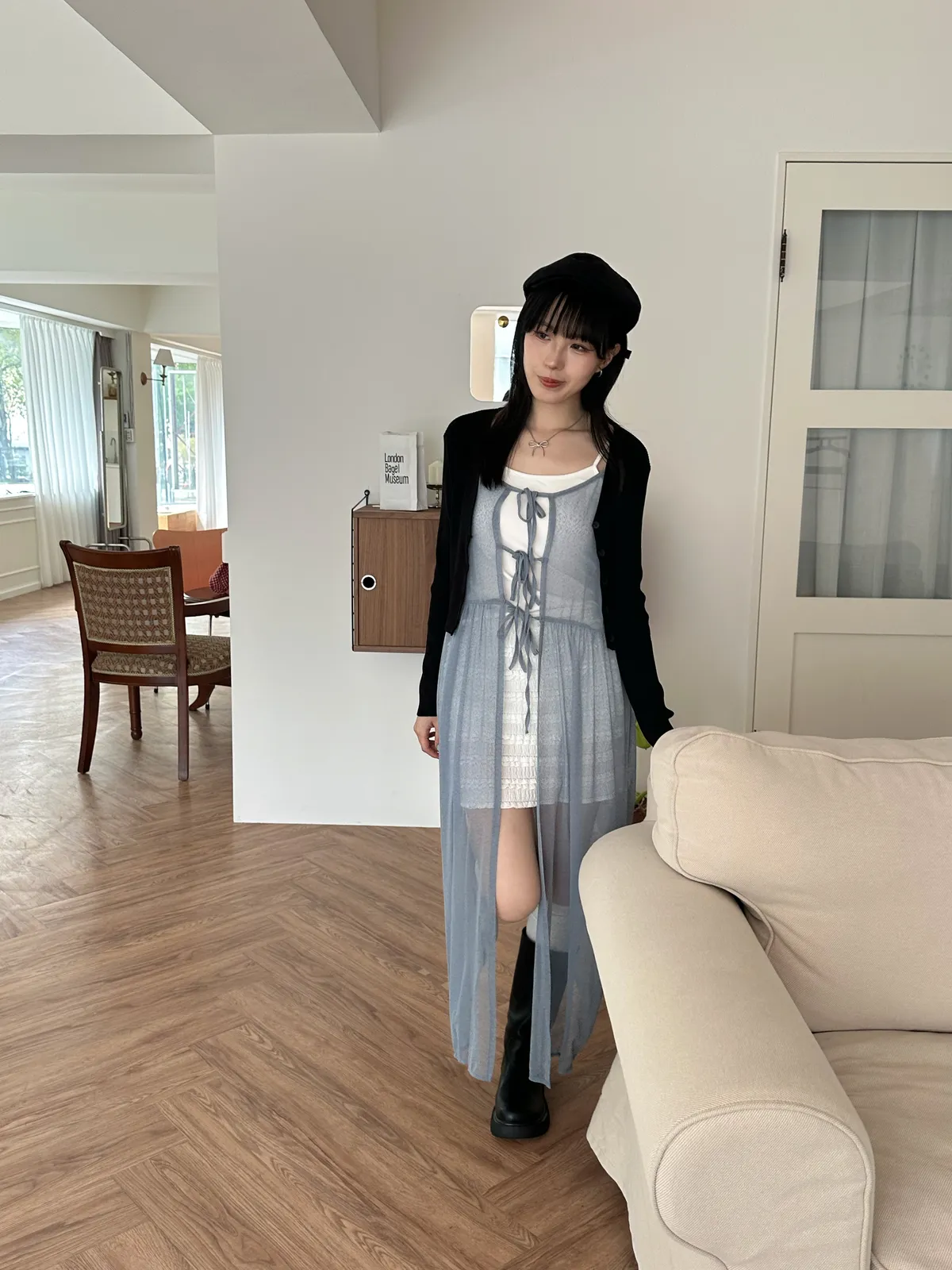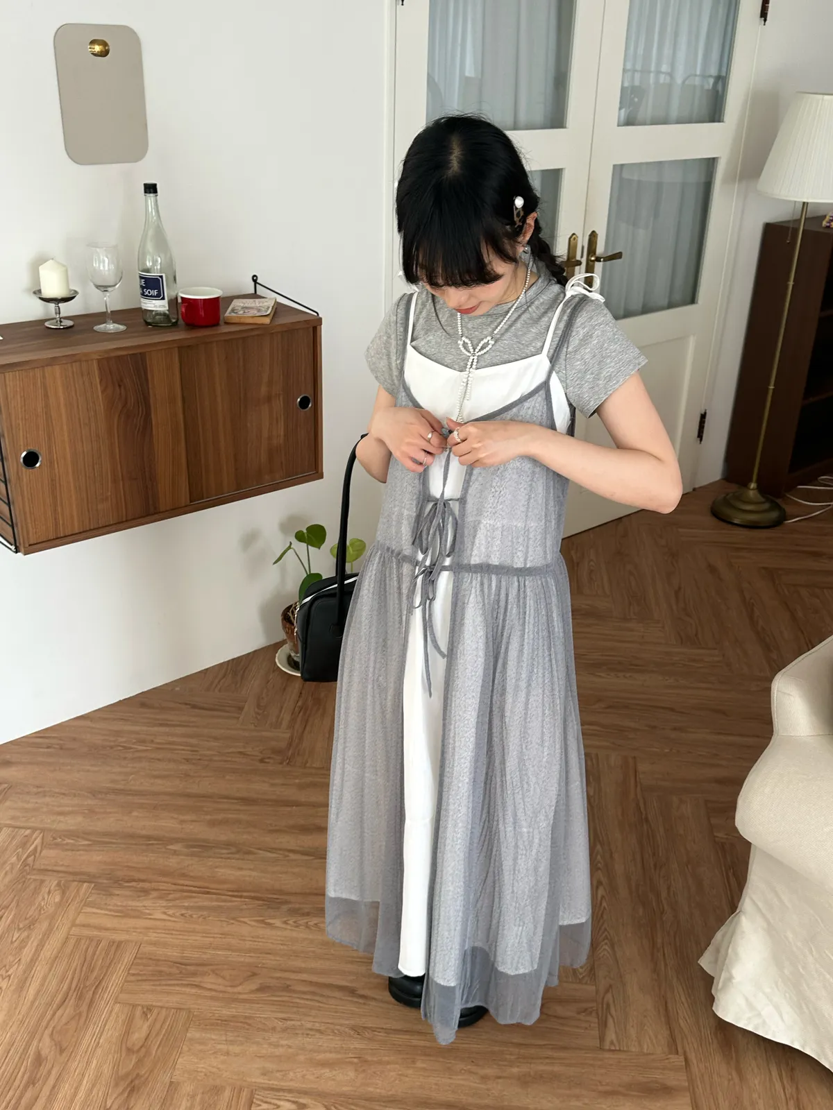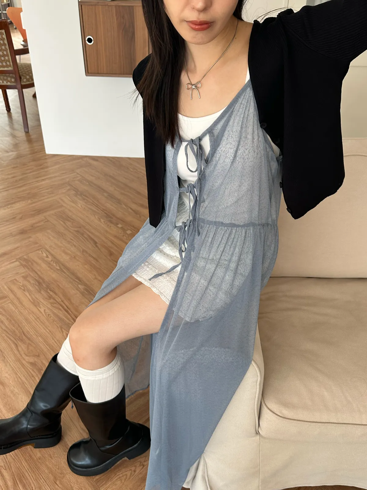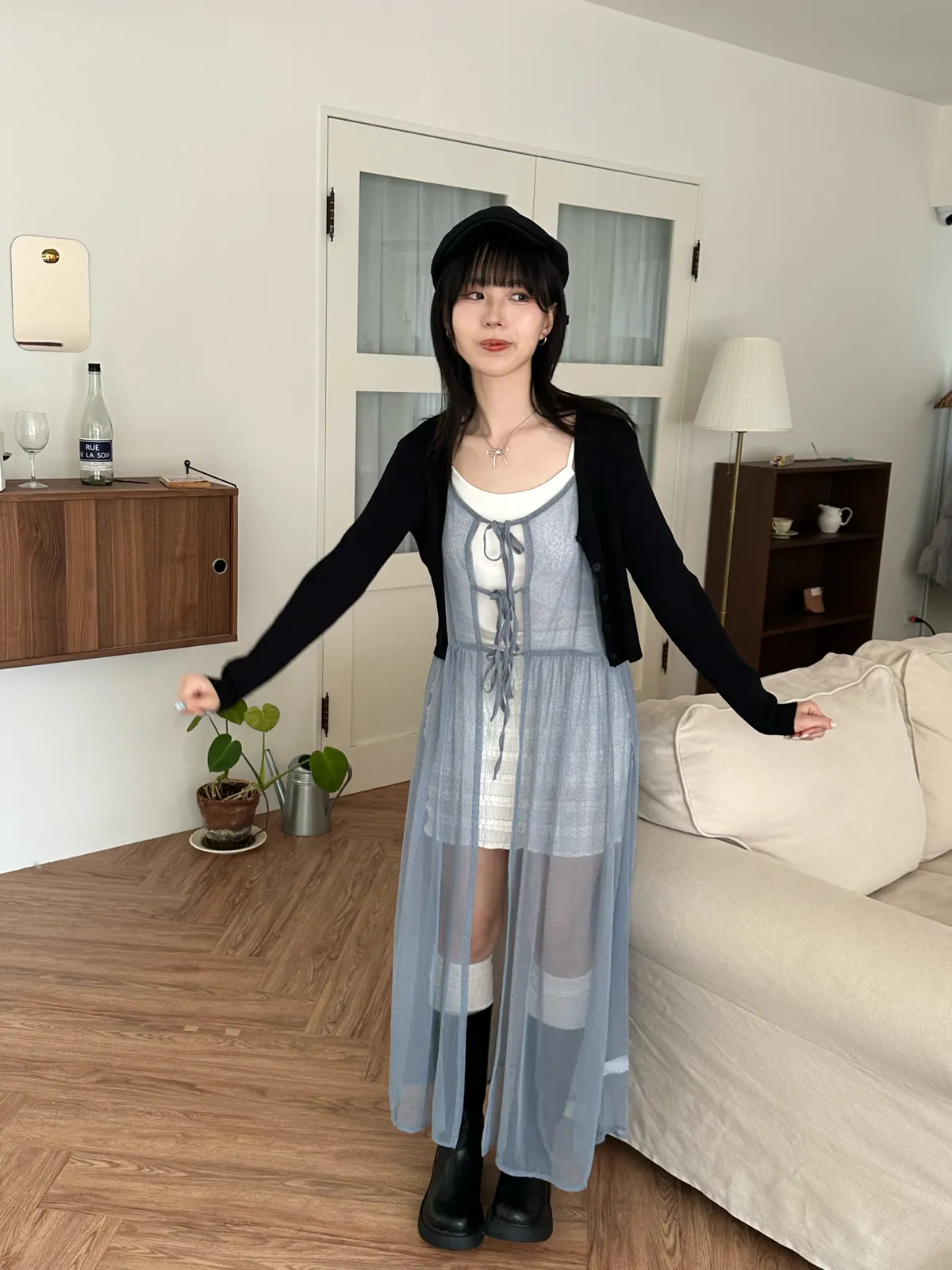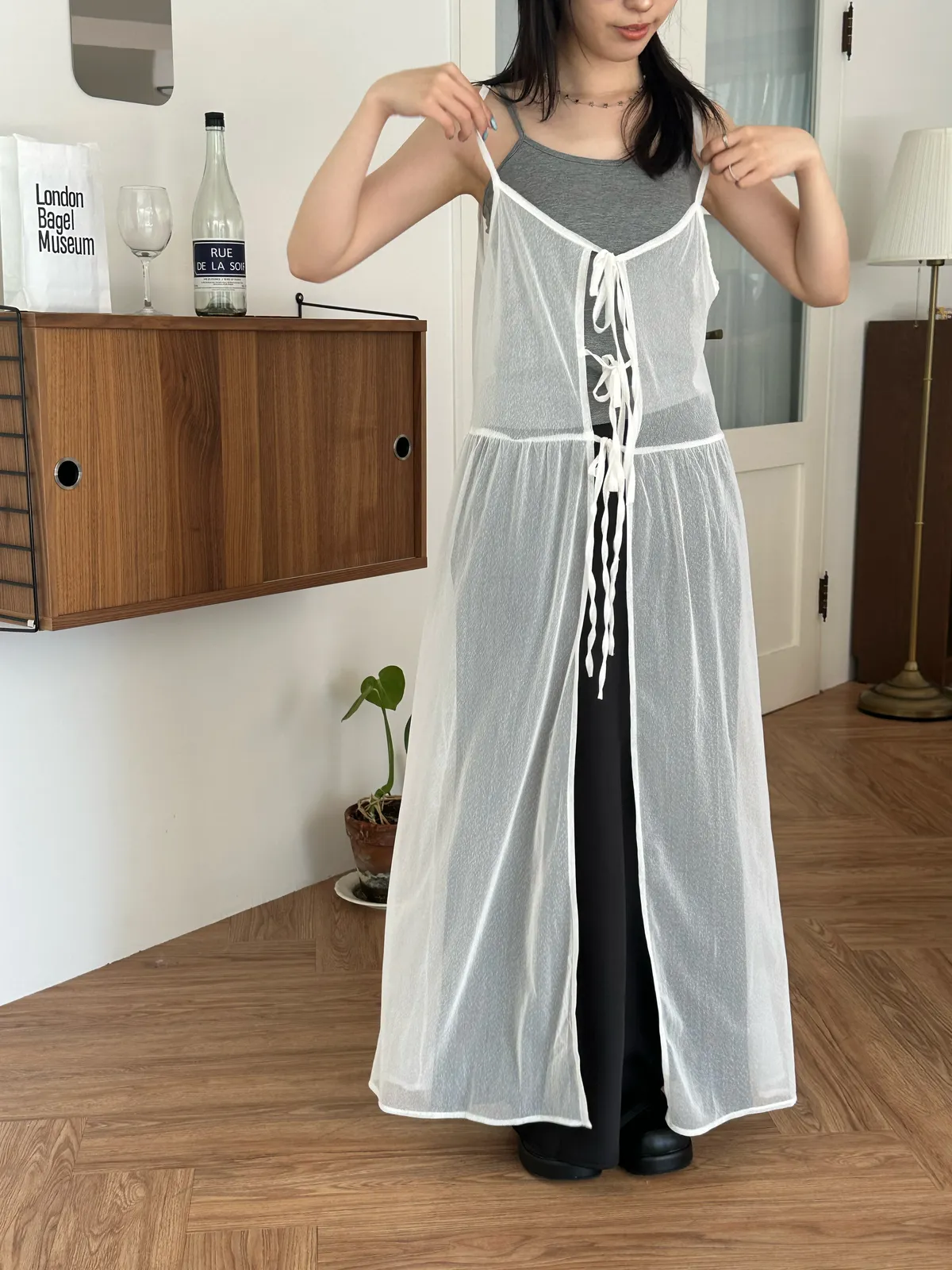 疊穿單品 透膚雪紡洋裝-4col