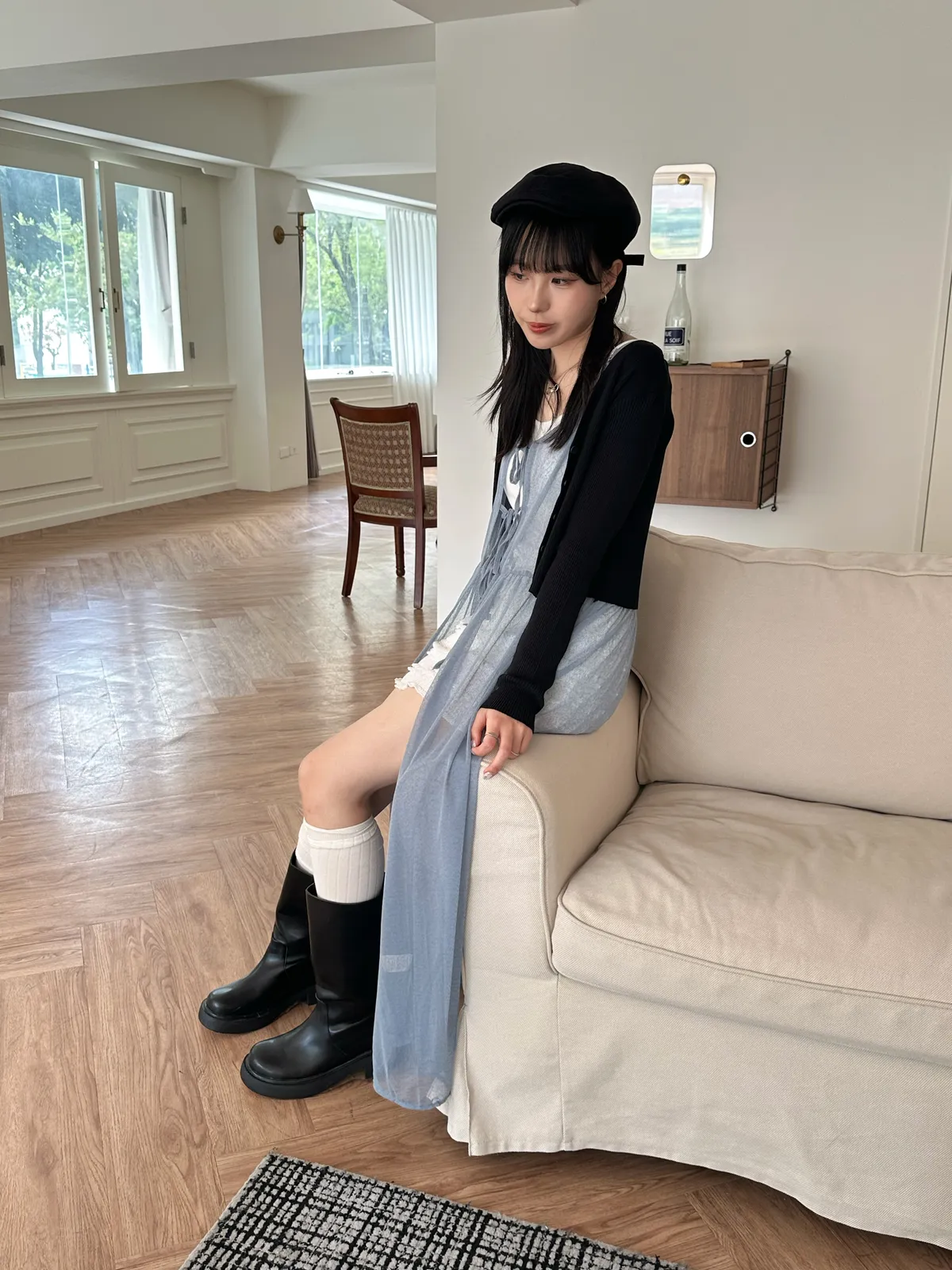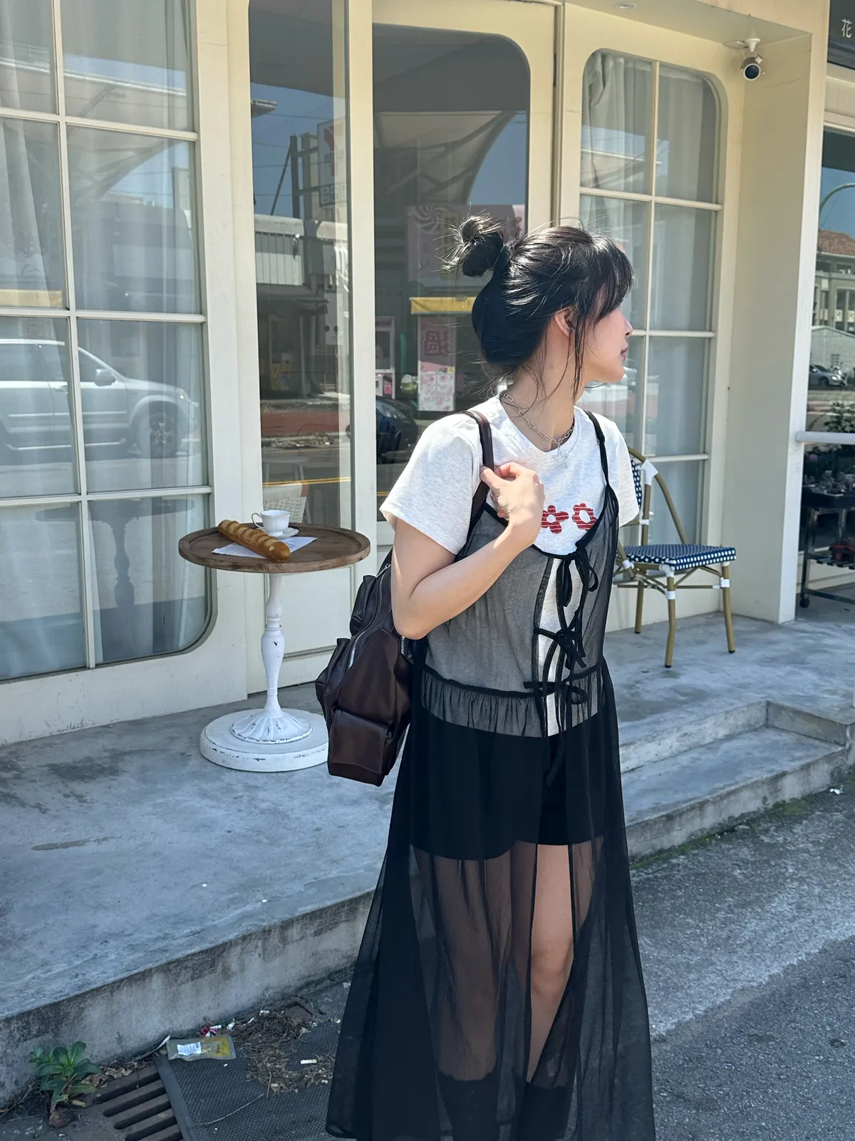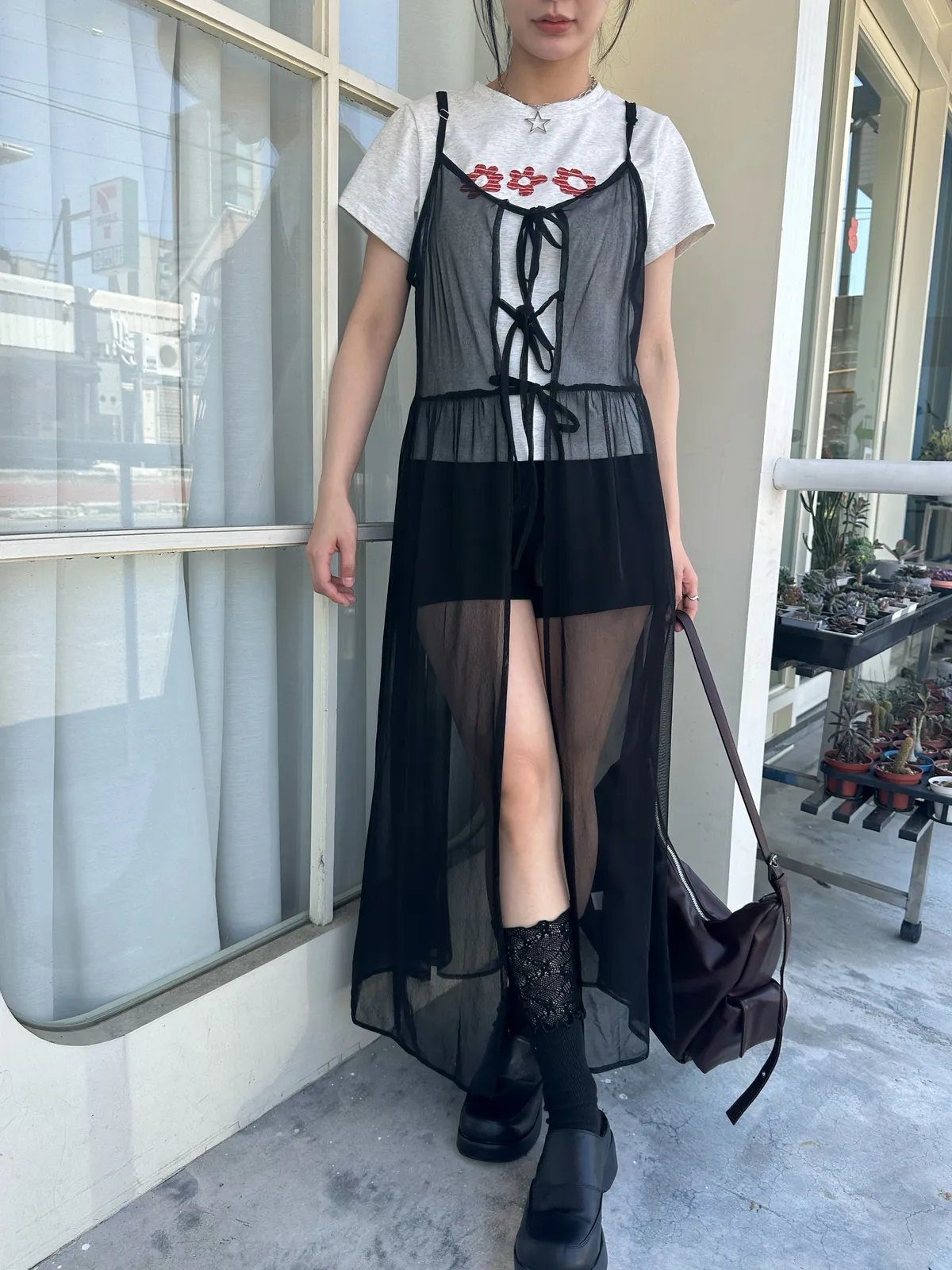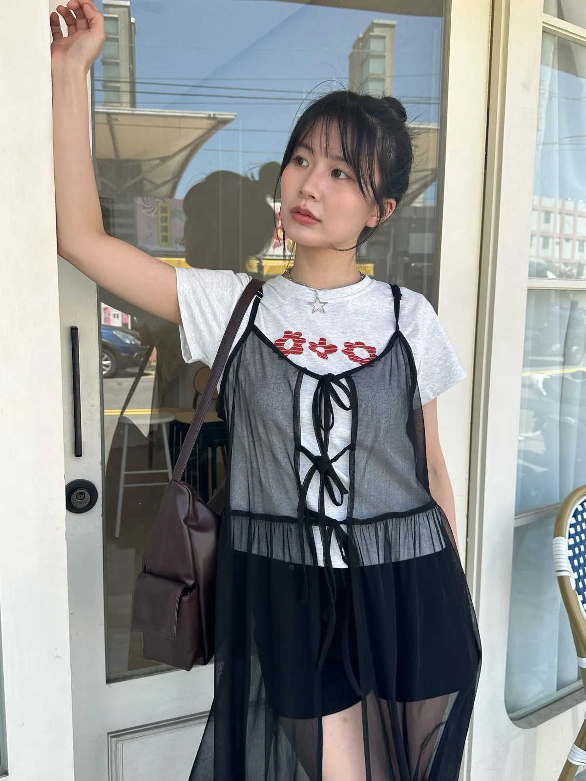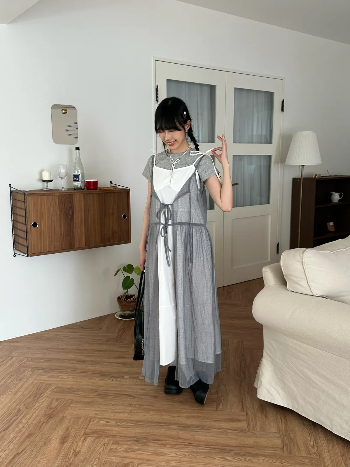 疊穿單品 透膚雪紡洋裝-4col