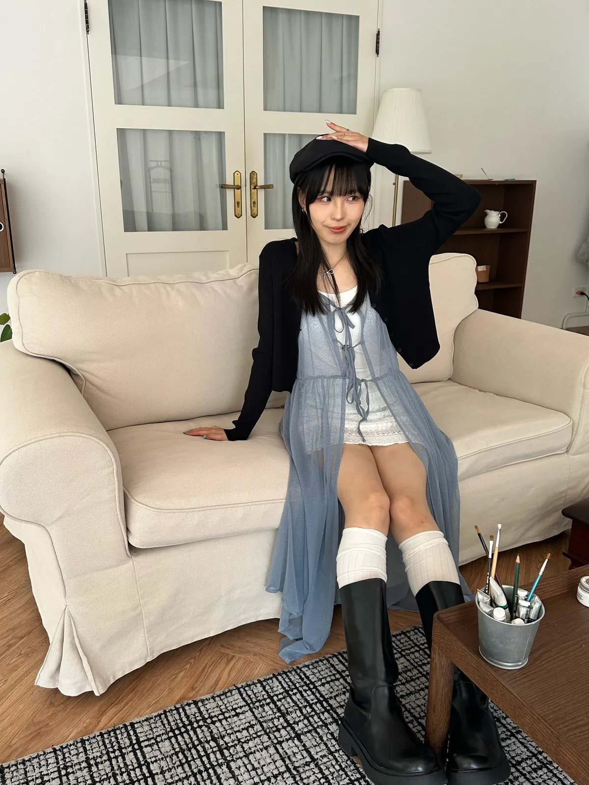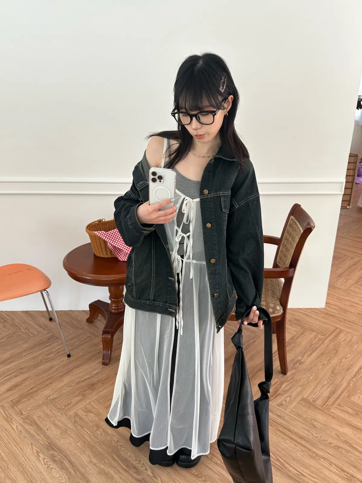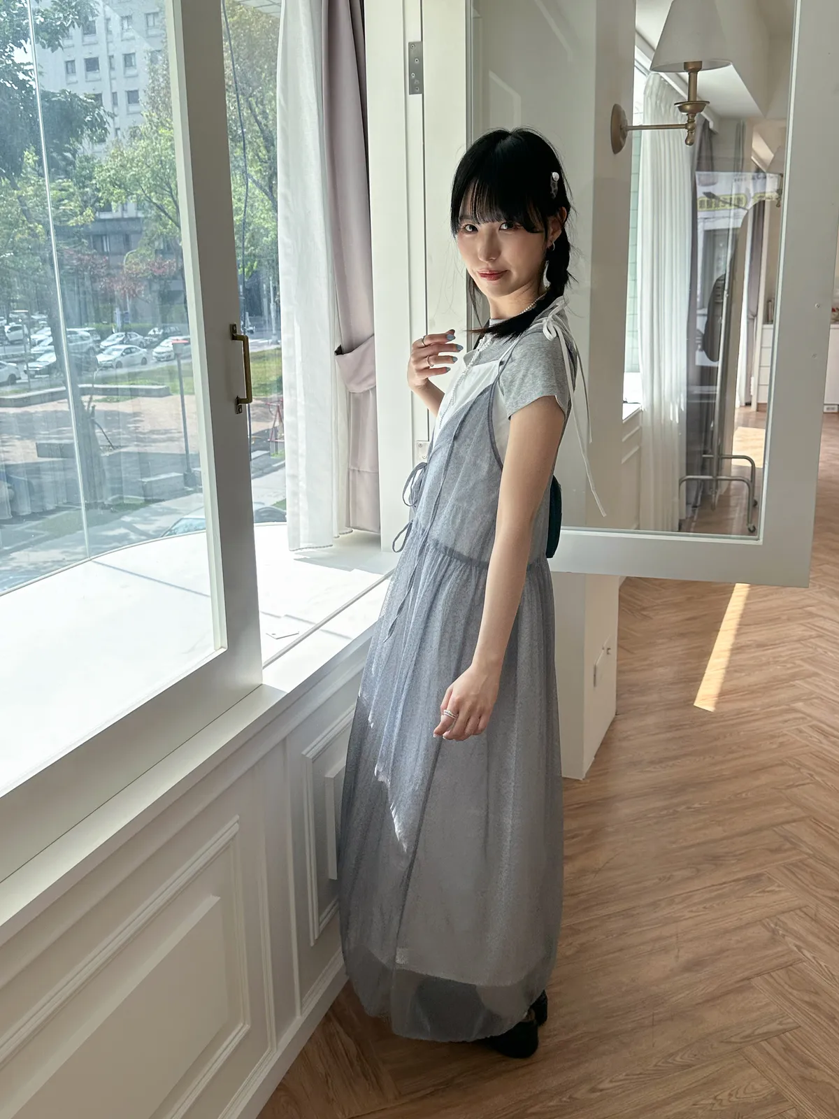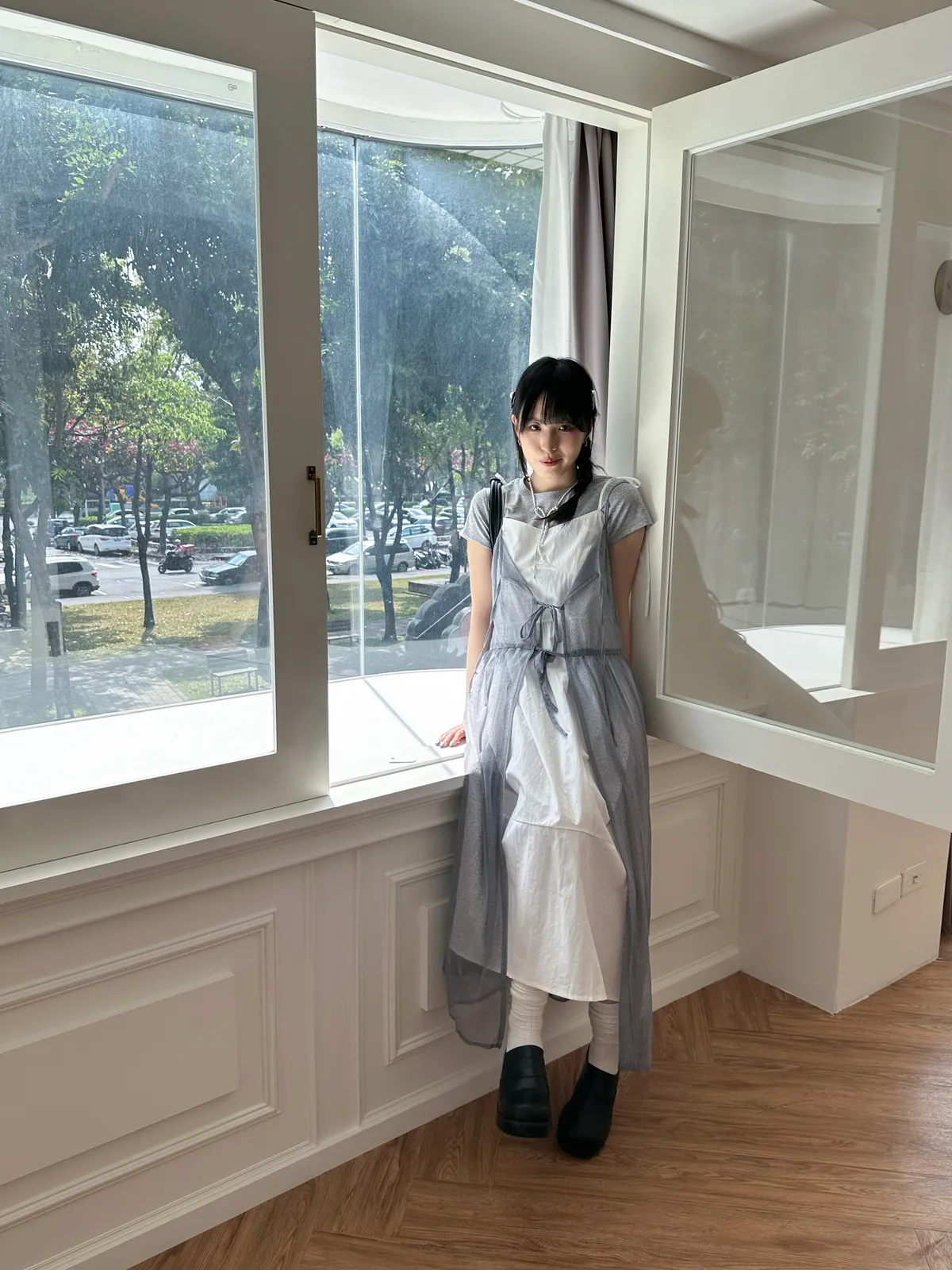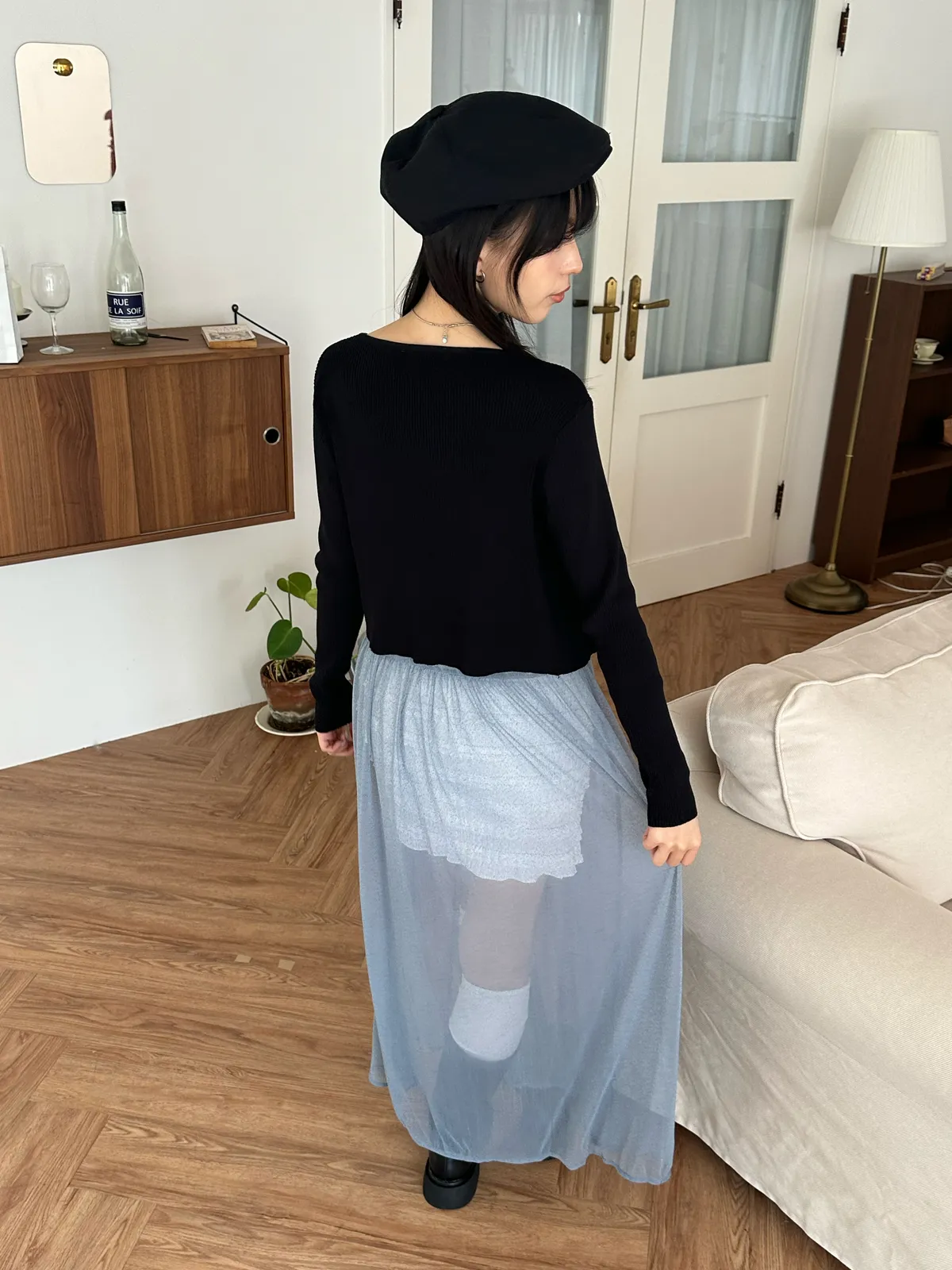 疊穿單品 透膚雪紡洋裝-4col