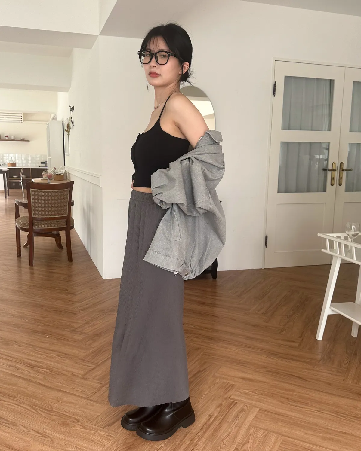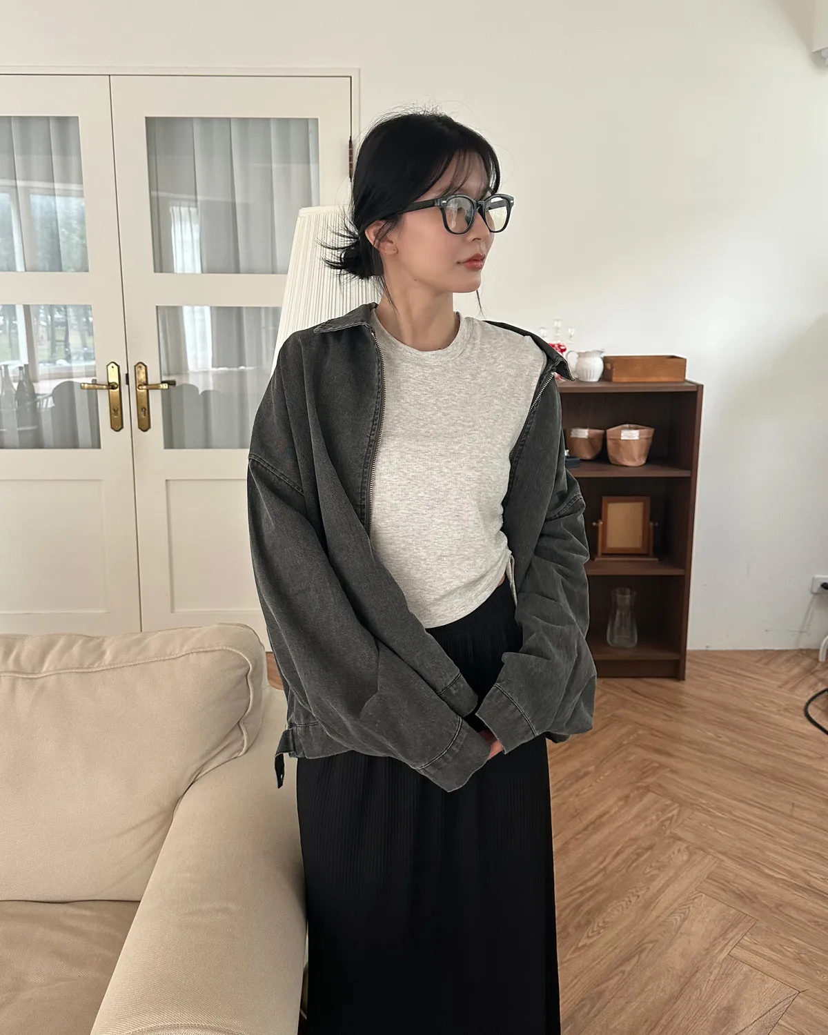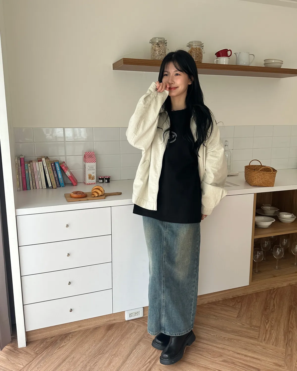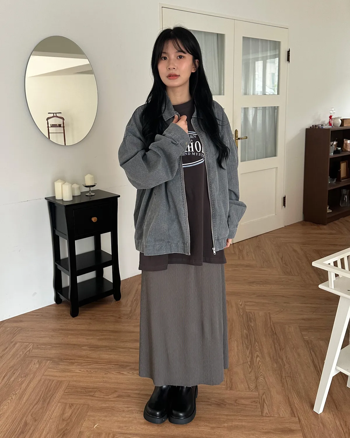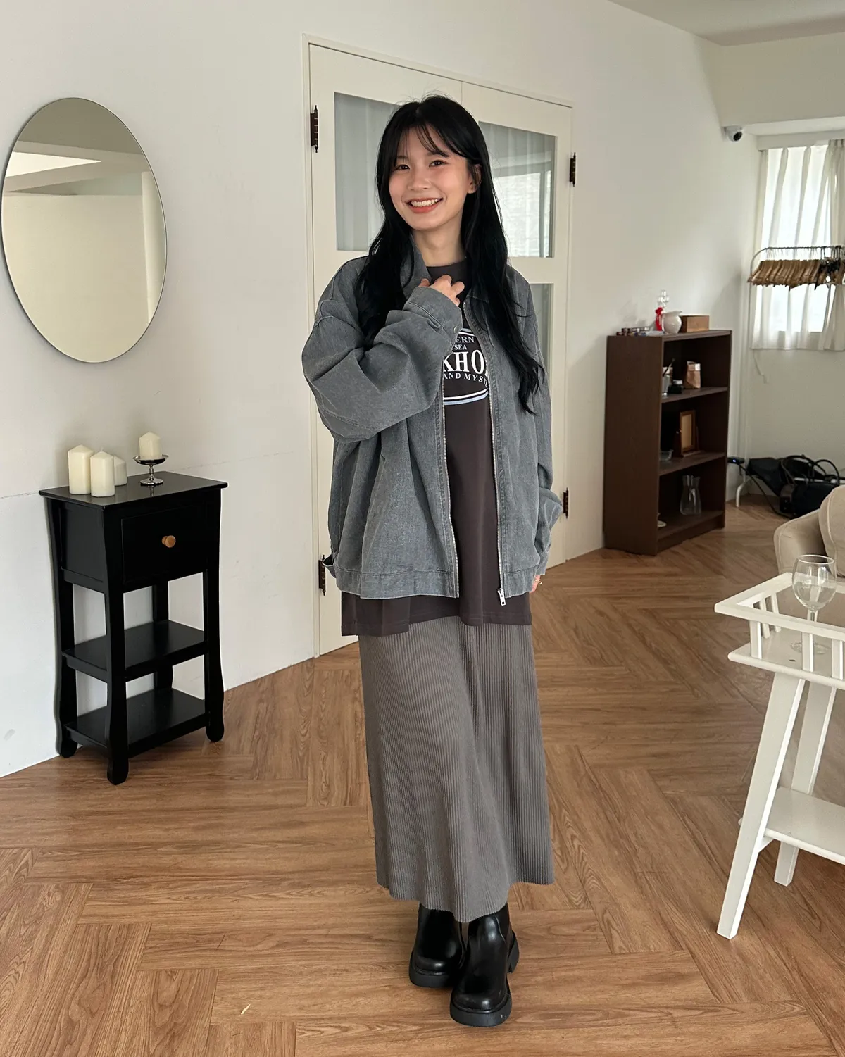 【REINA MADE】衣櫃必備復古刷色牛仔長裙(3col)