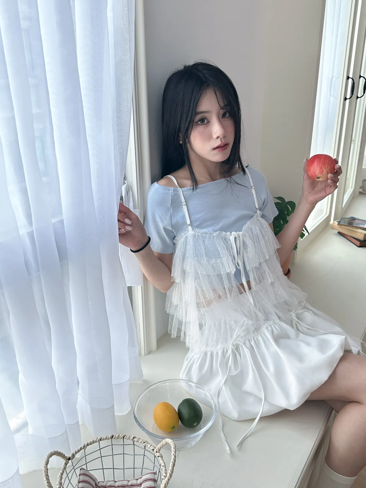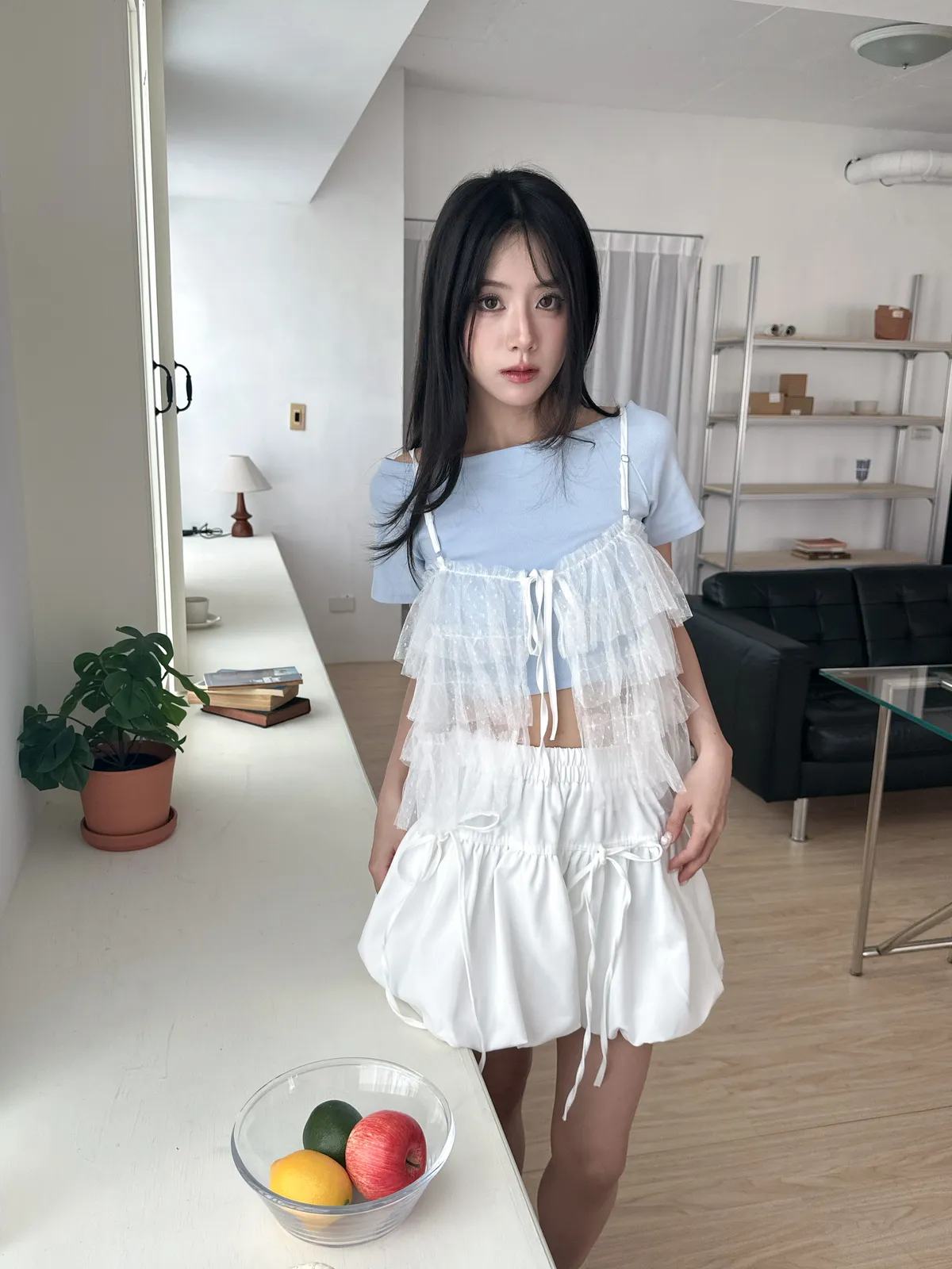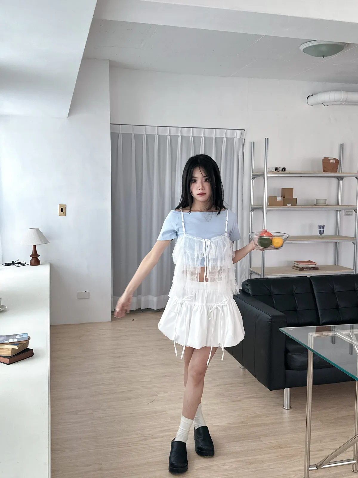 Model Size - F / 158cm, 42kg.- Crop top- Fenine silhoutte- Lace-trimmed neckline