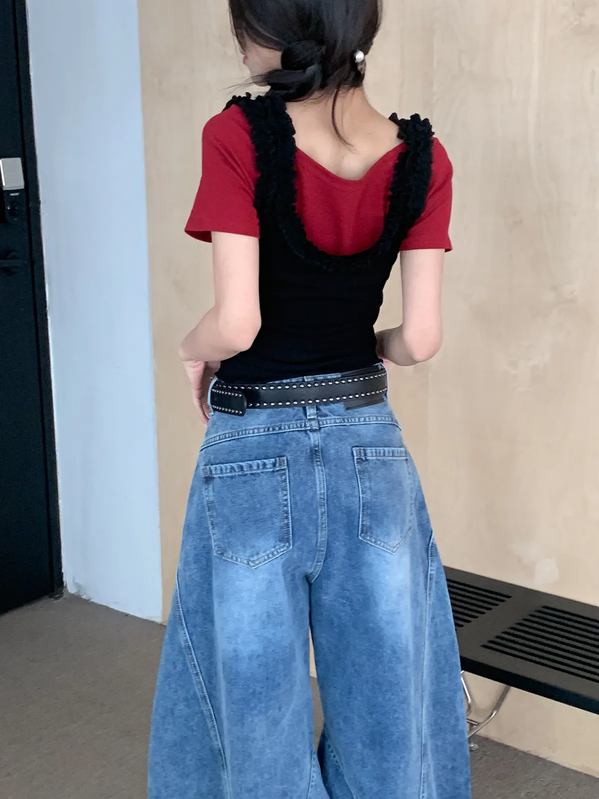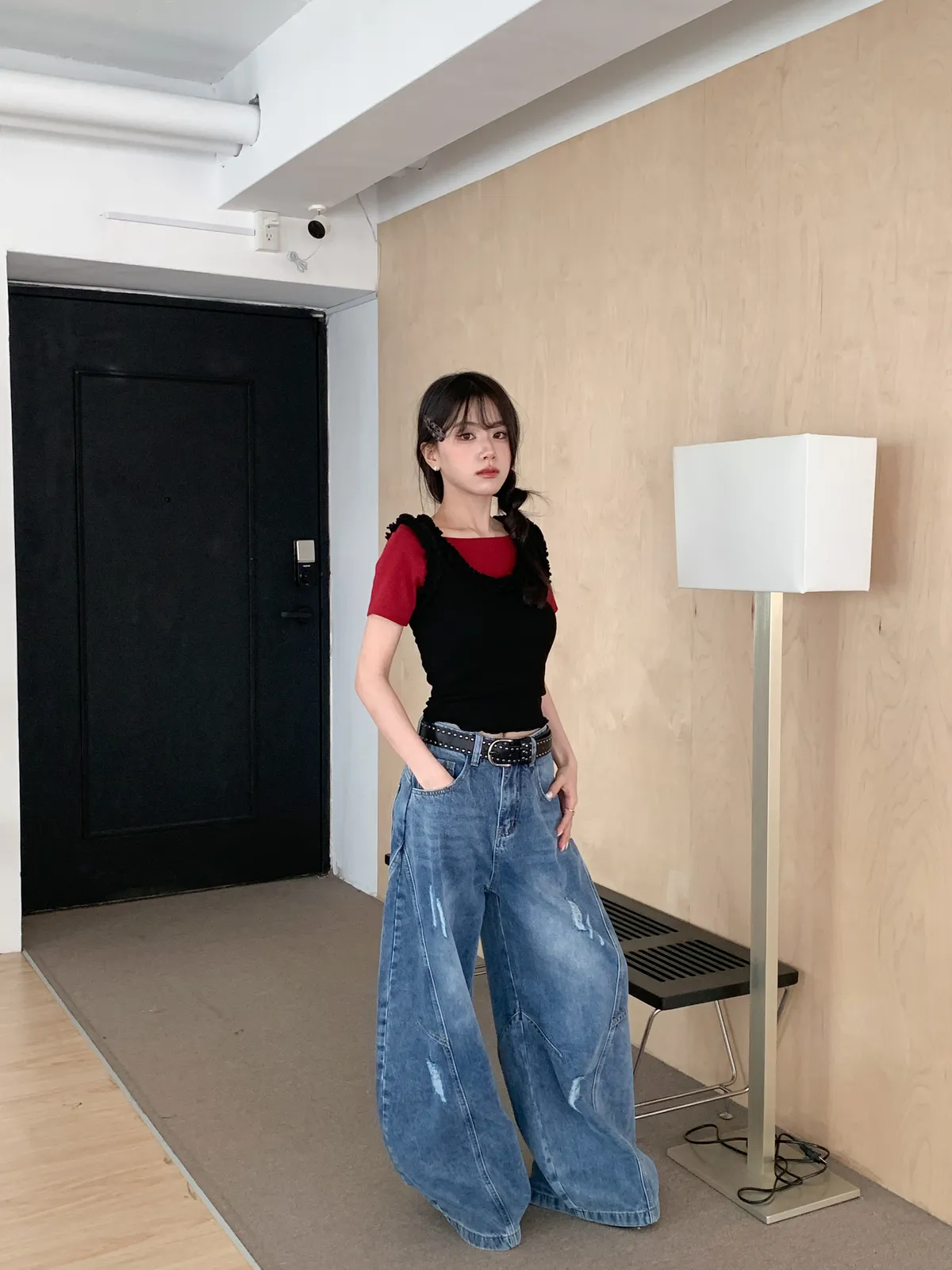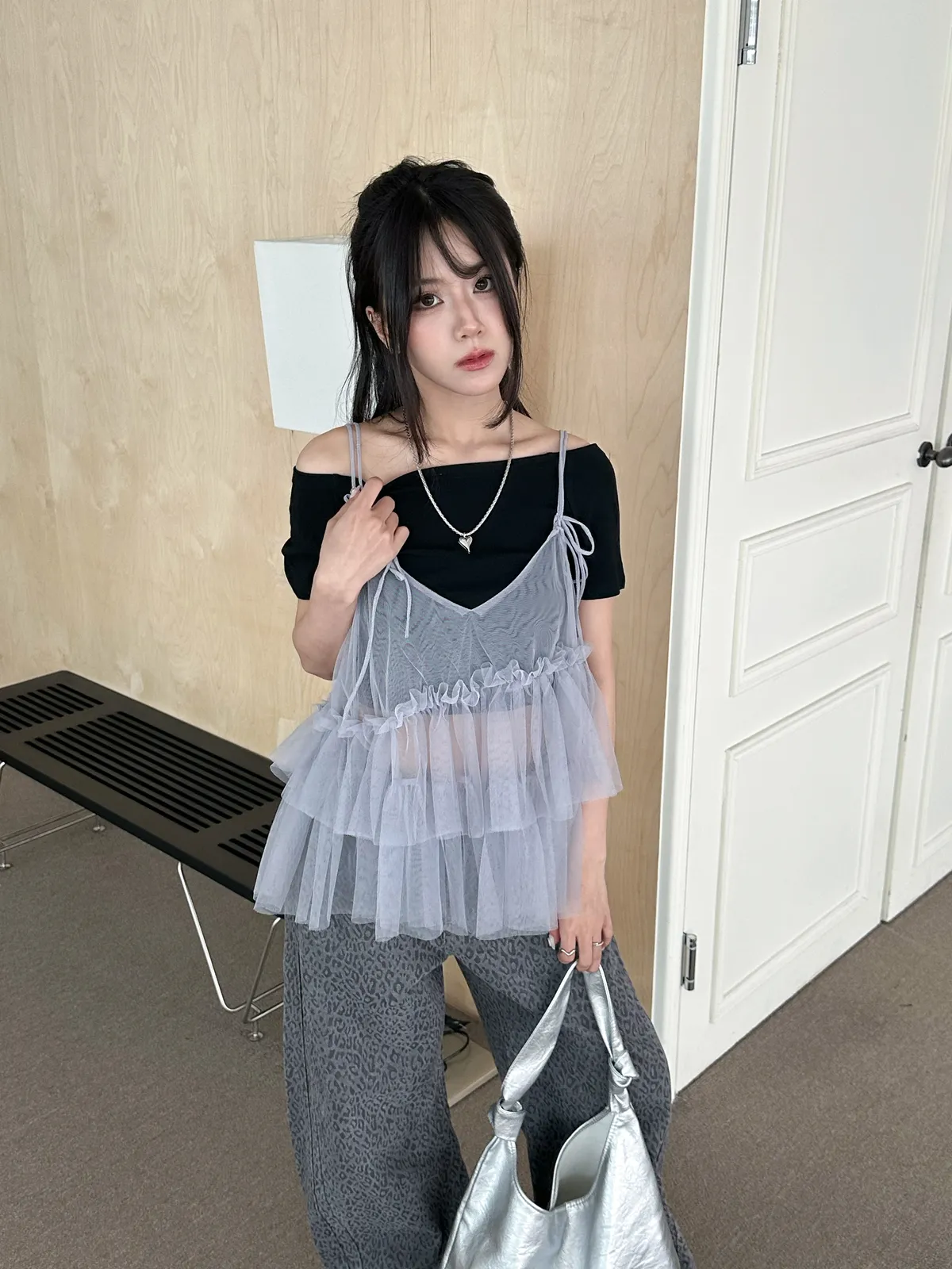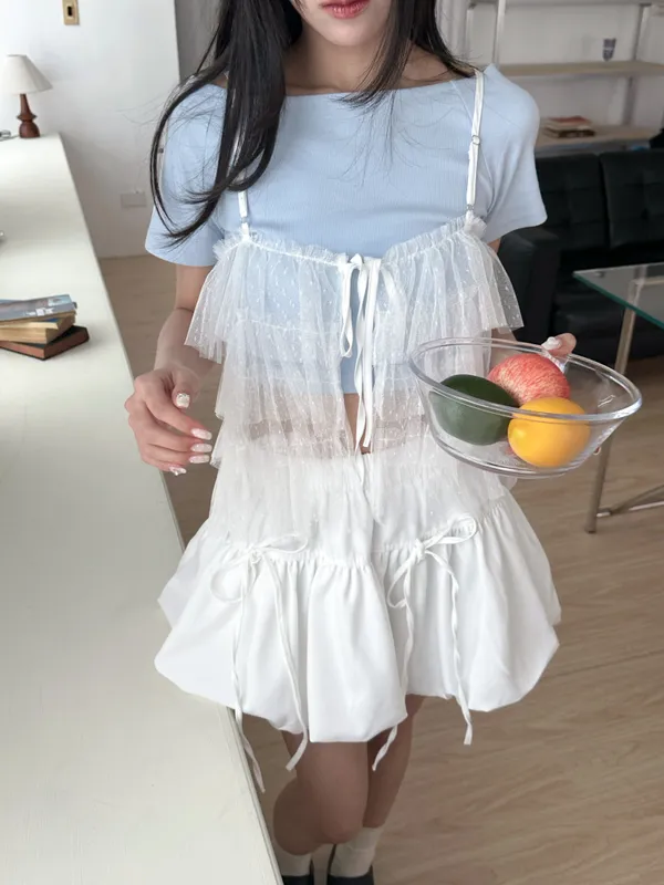 Model Size - F / 158cm, 42kg.- Crop top- Fenine silhoutte- Lace-trimmed neckline