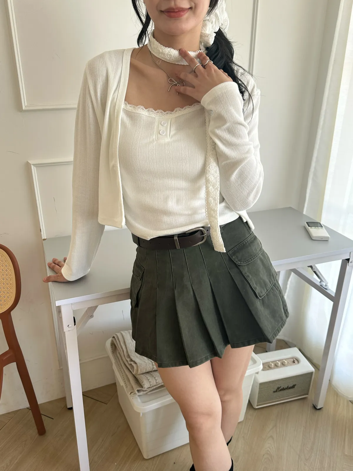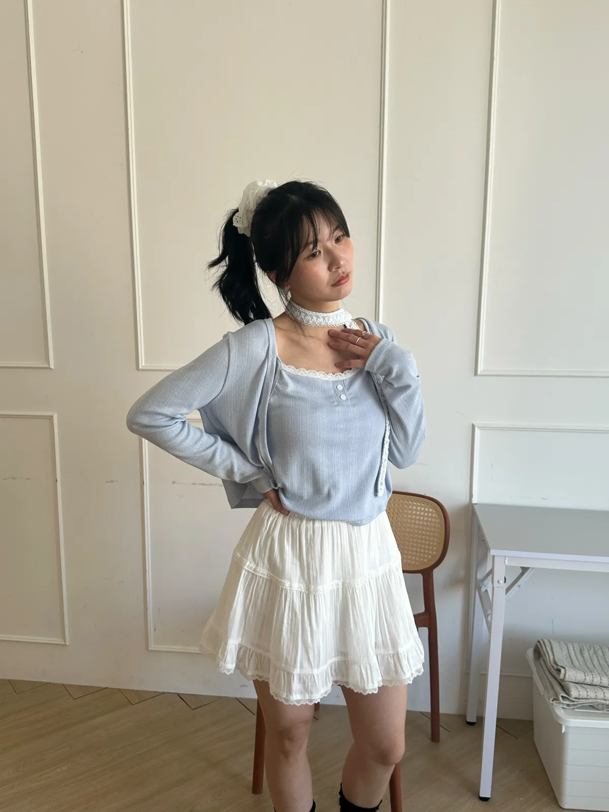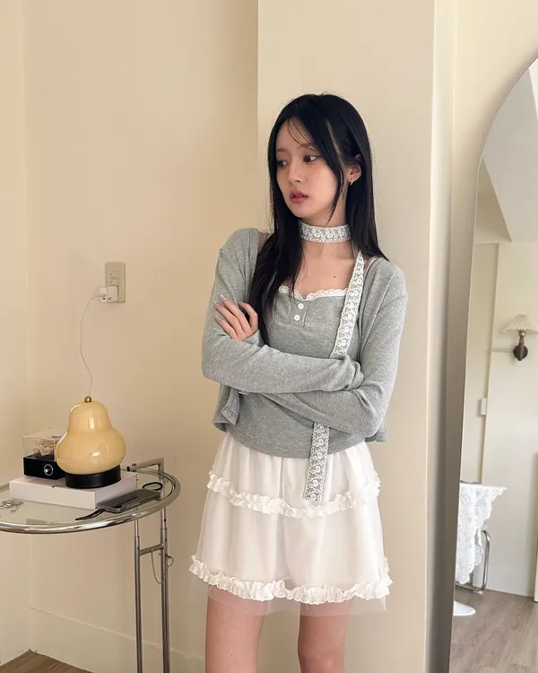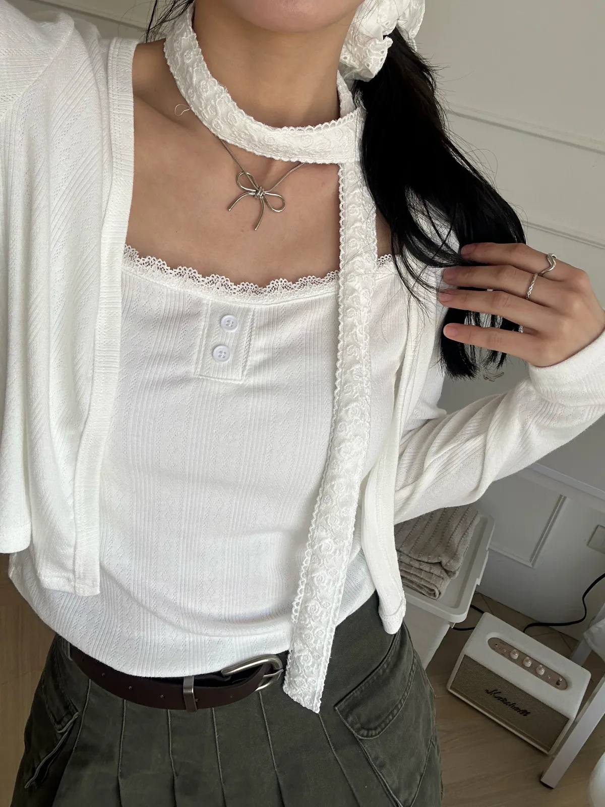 Laced up❁︎ 蕾絲針織套裝/附圍脖(3col)