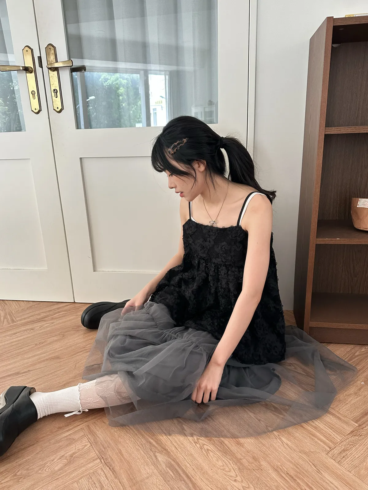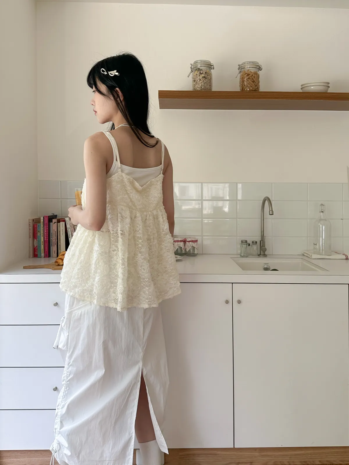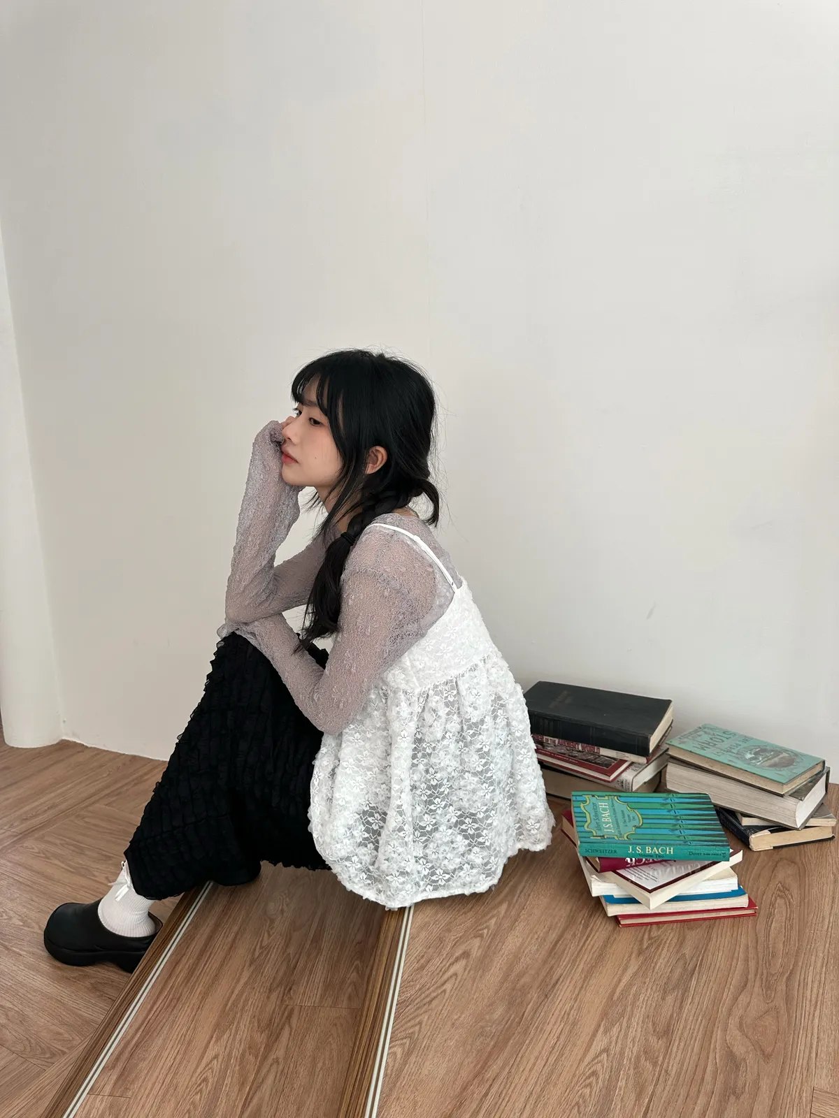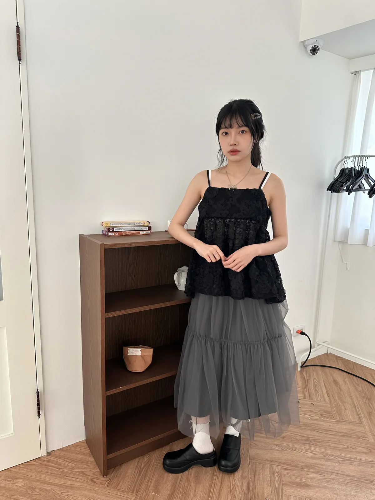 Model Size - F / 158cm, 42kg. / 161cm, 45kg.- Floral lace- Layering top- Airy doll cut