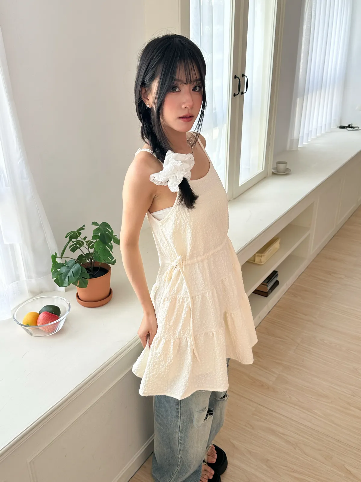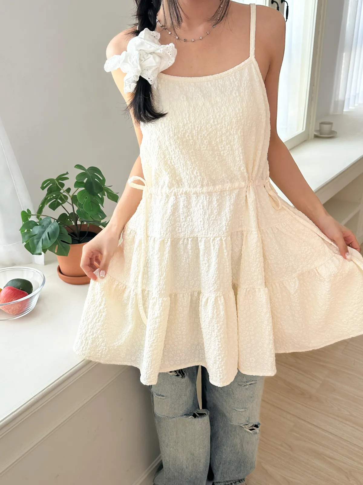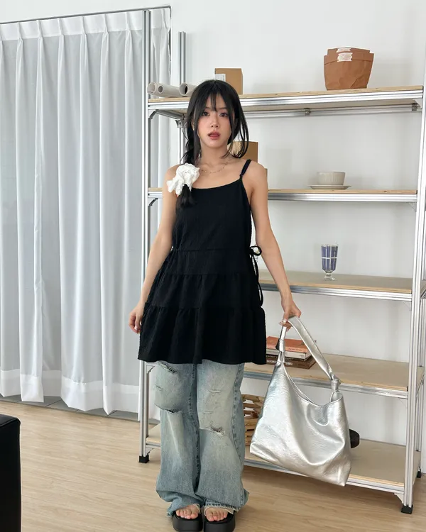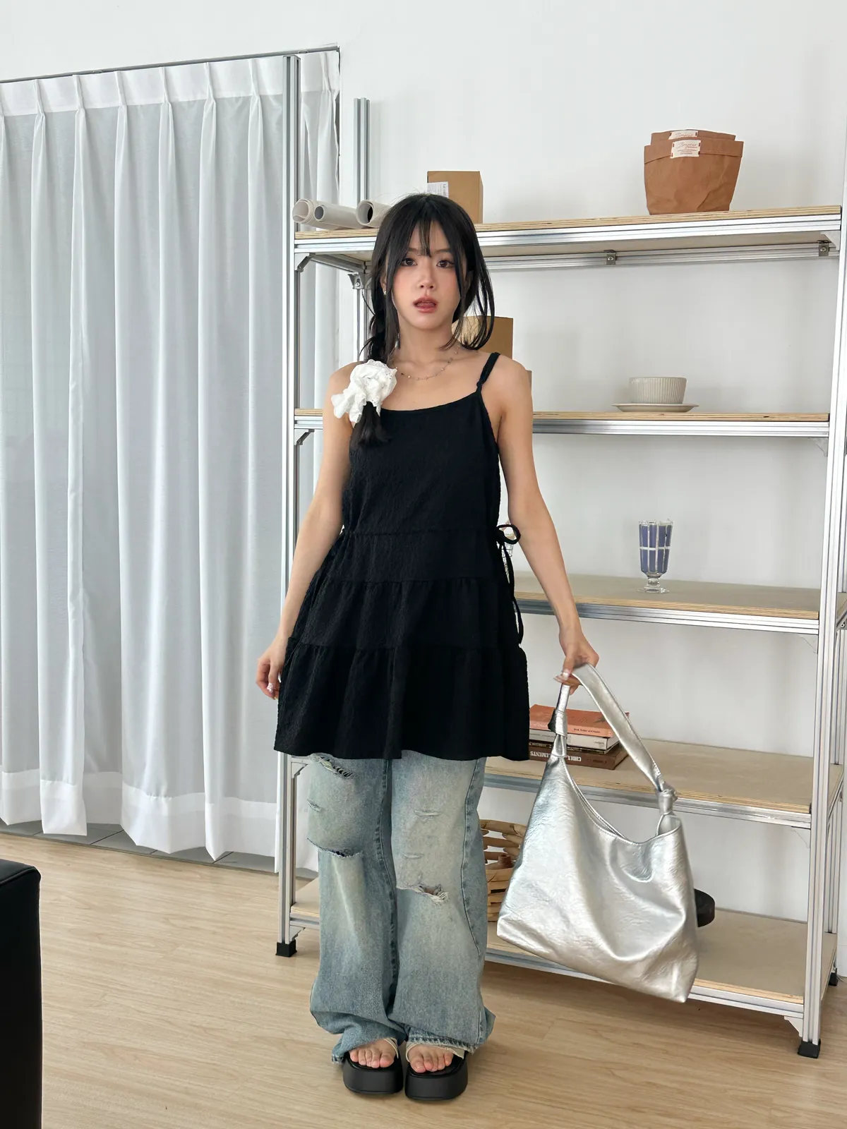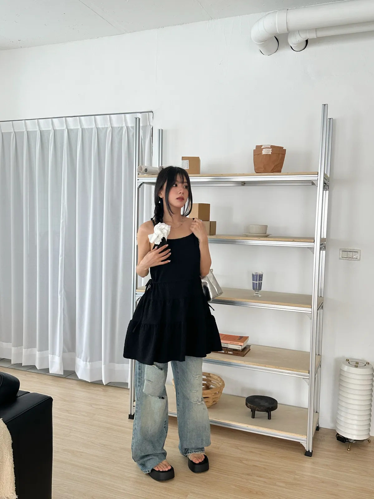 Model Size - F / 158cm, 42kg.- Side tie- Airy layers- Tiered volume dress