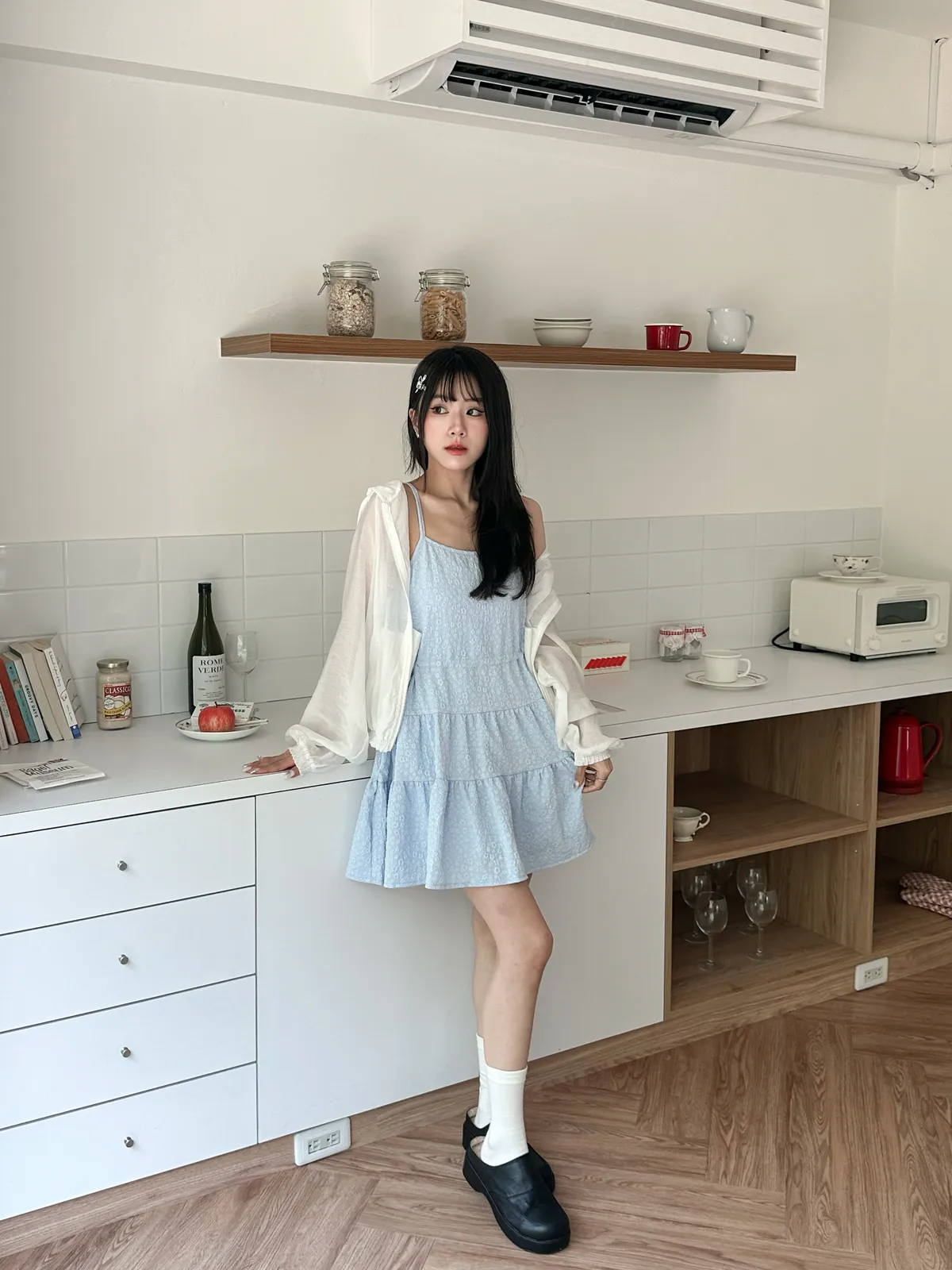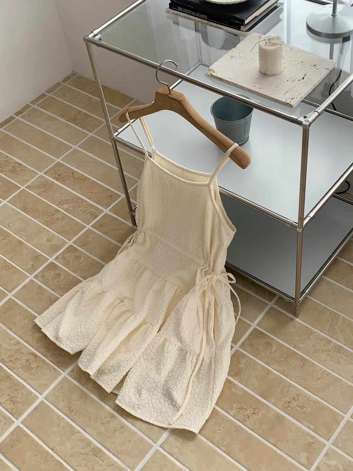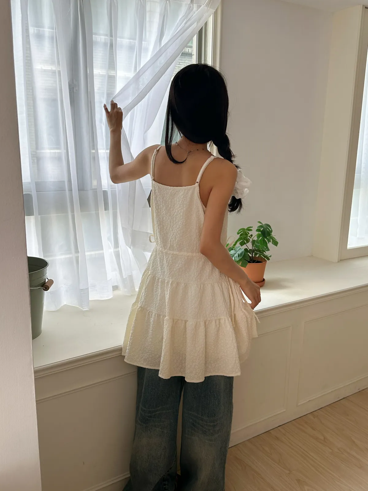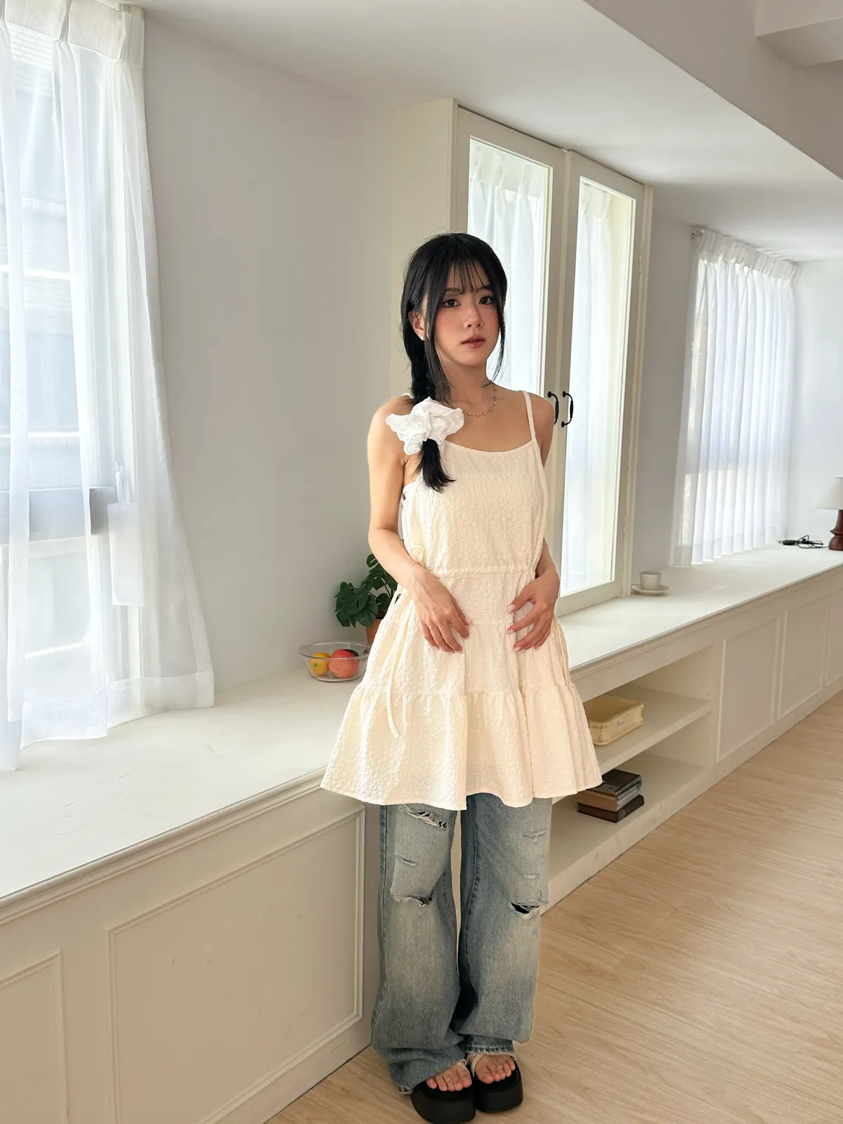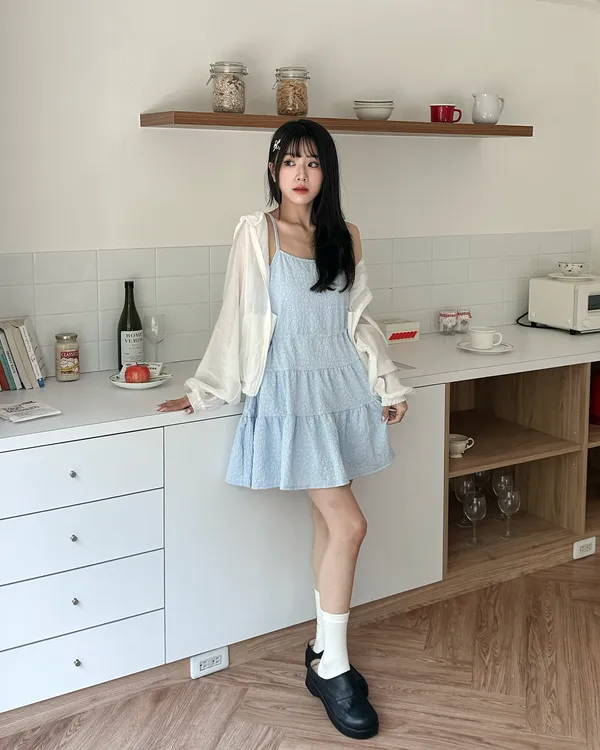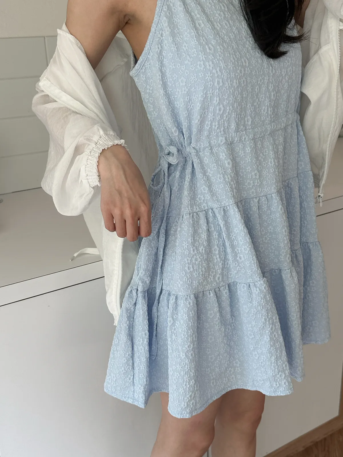 Model Size - F / 158cm, 42kg.- Side tie- Airy layers- Tiered volume dress