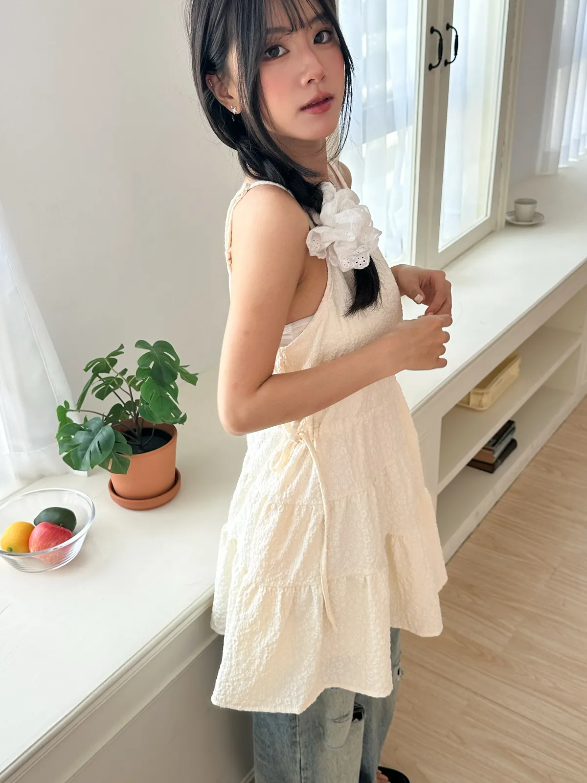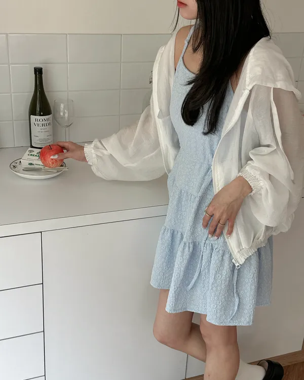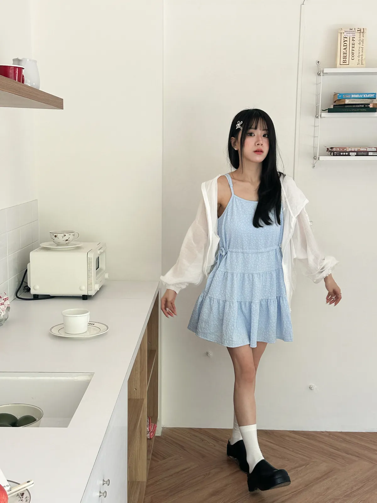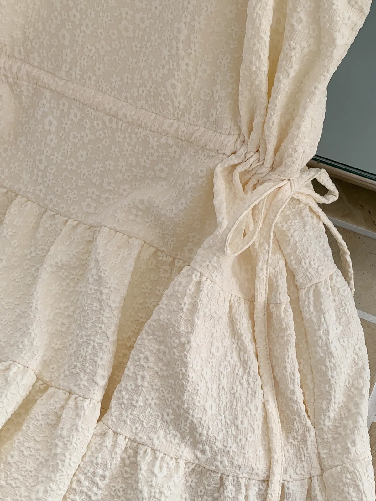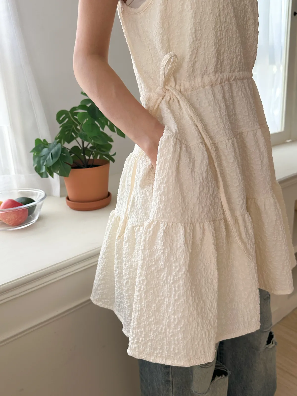 Model Size - F / 158cm, 42kg.- Side tie- Airy layers- Tiered volume dress