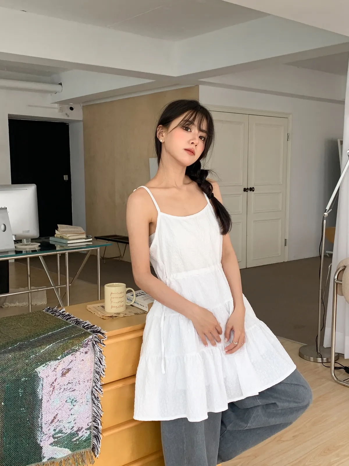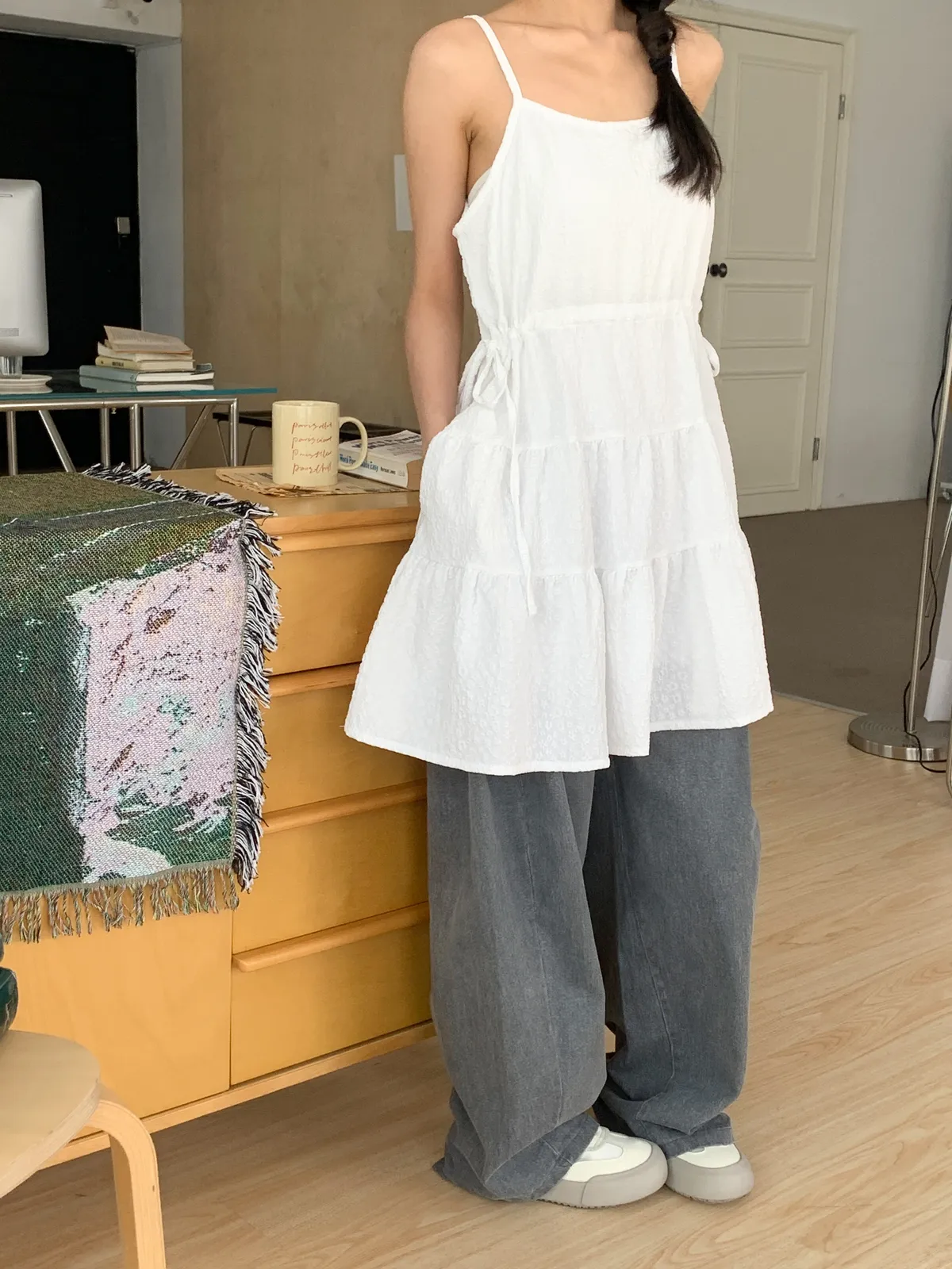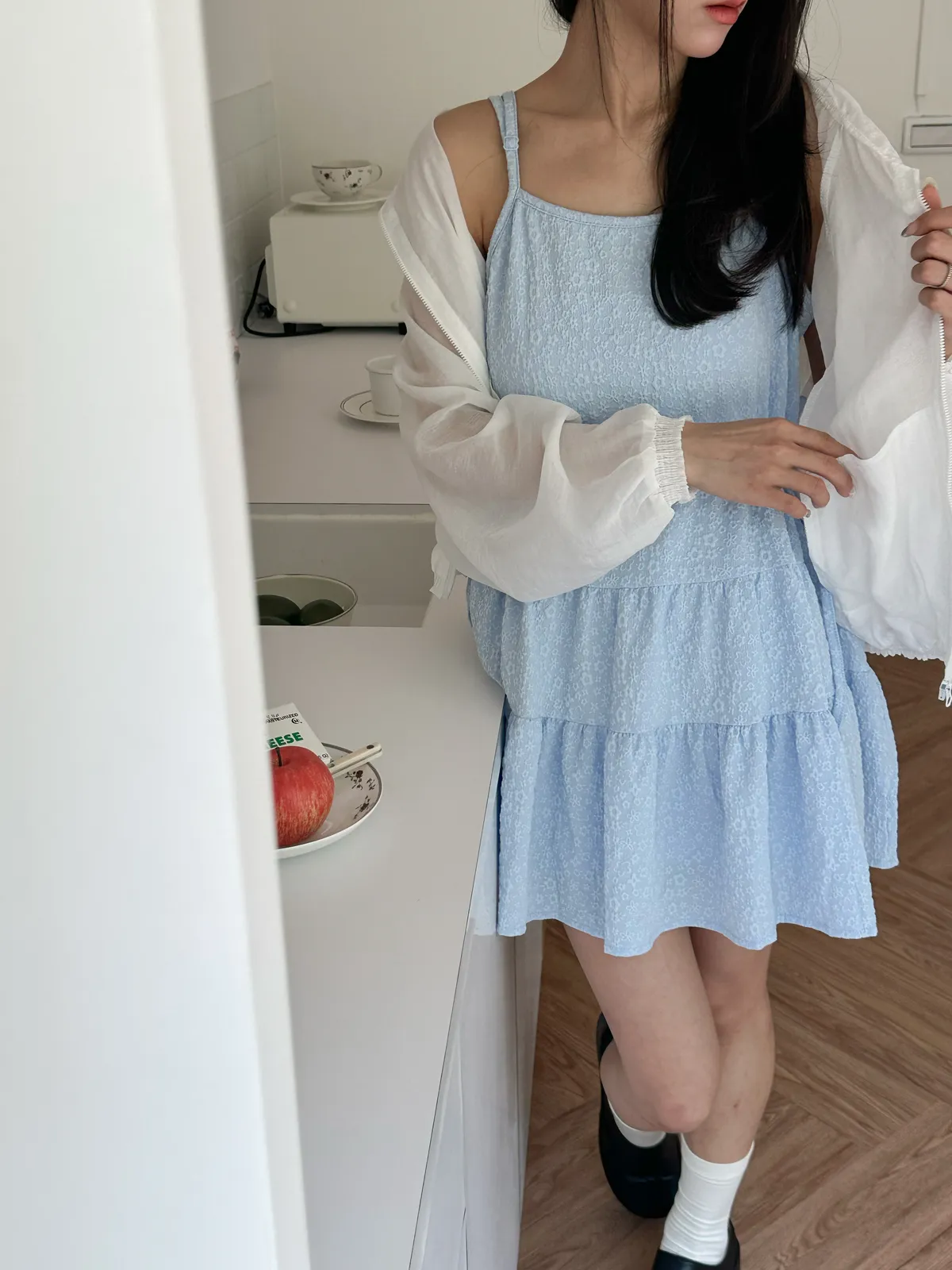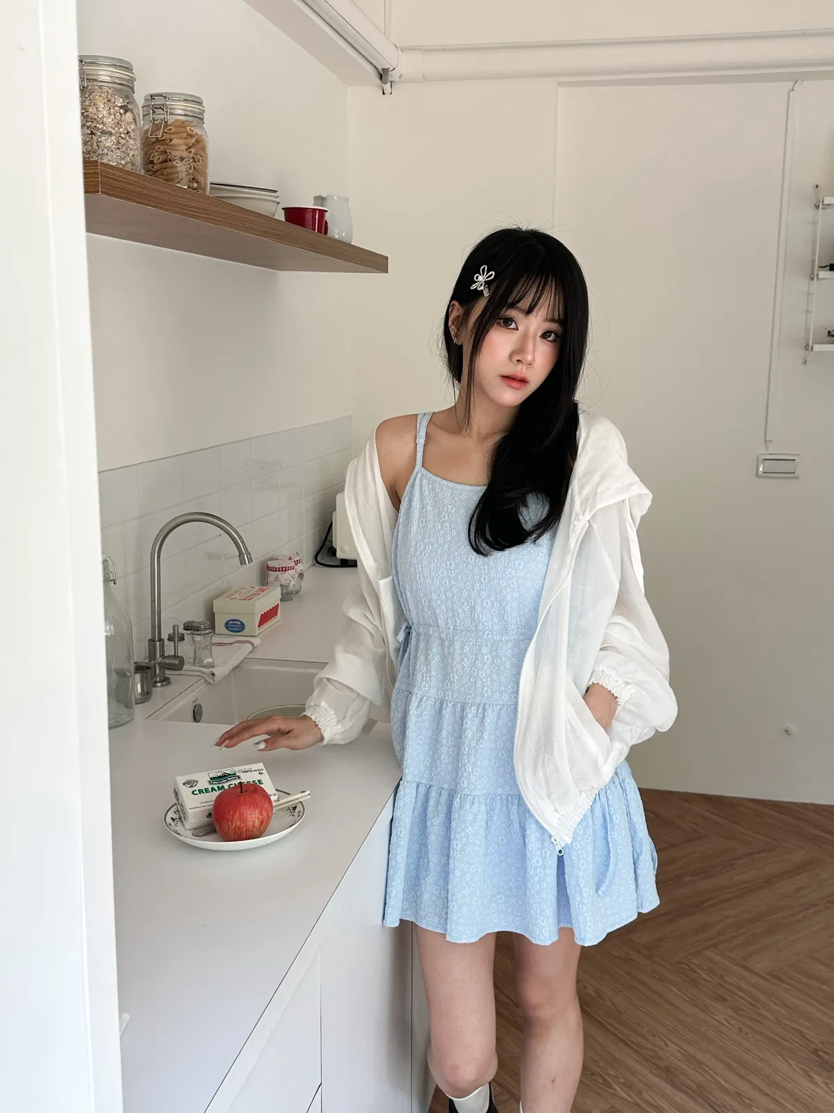 Model Size - F / 158cm, 42kg.- Side tie- Airy layers- Tiered volume dress