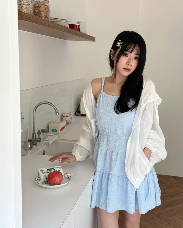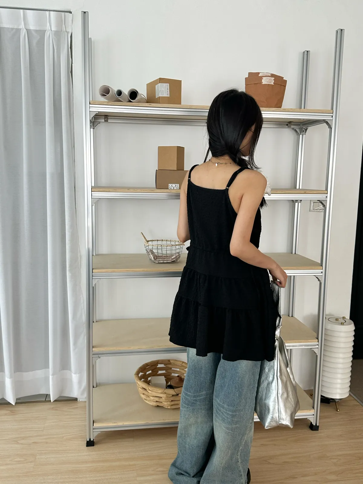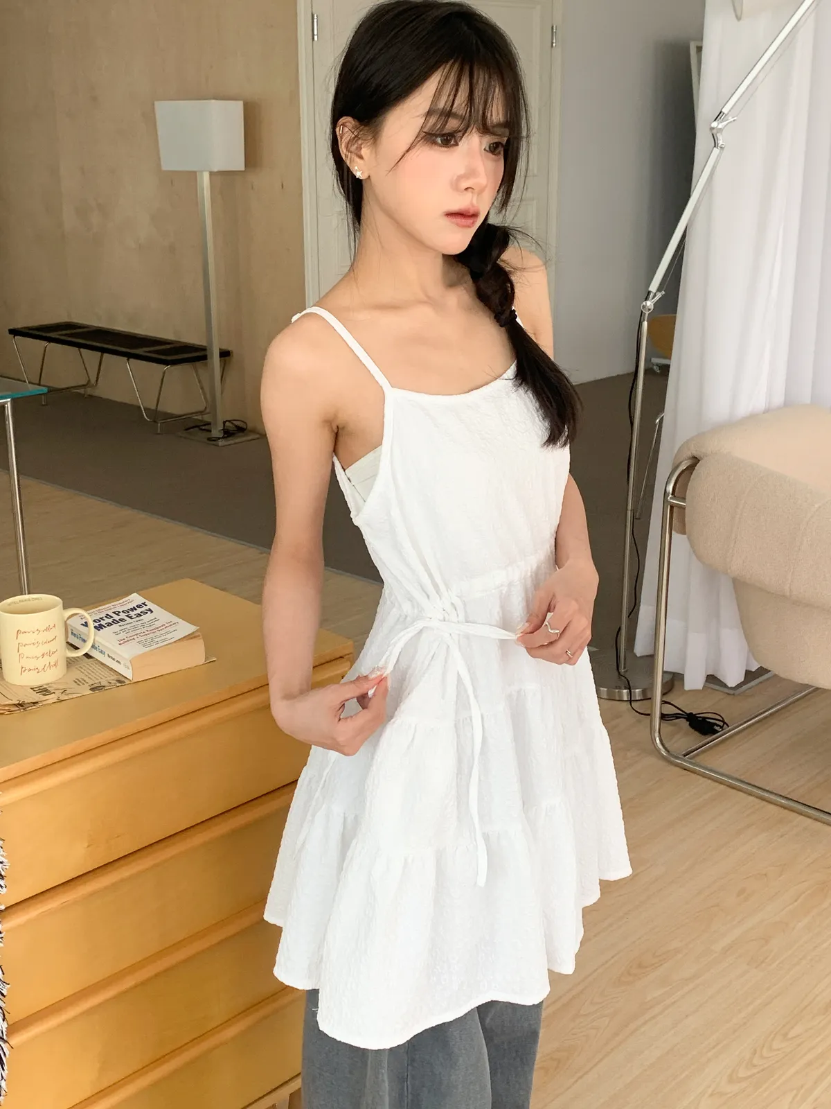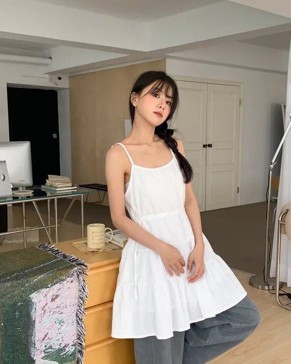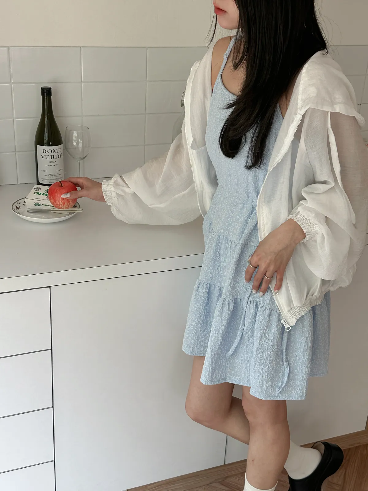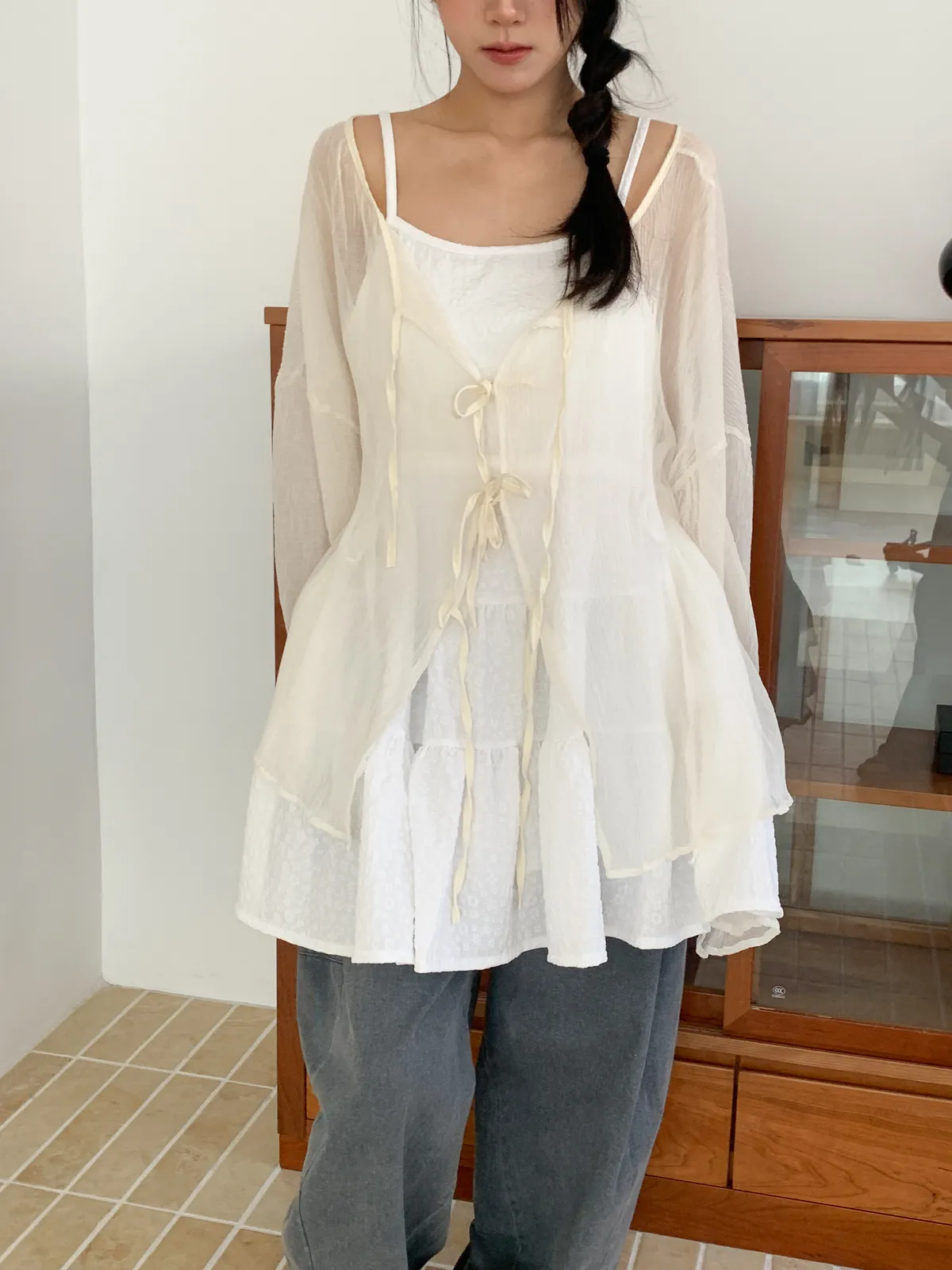 Model Size - F / 158cm, 42kg.- Side tie- Airy layers- Tiered volume dress
