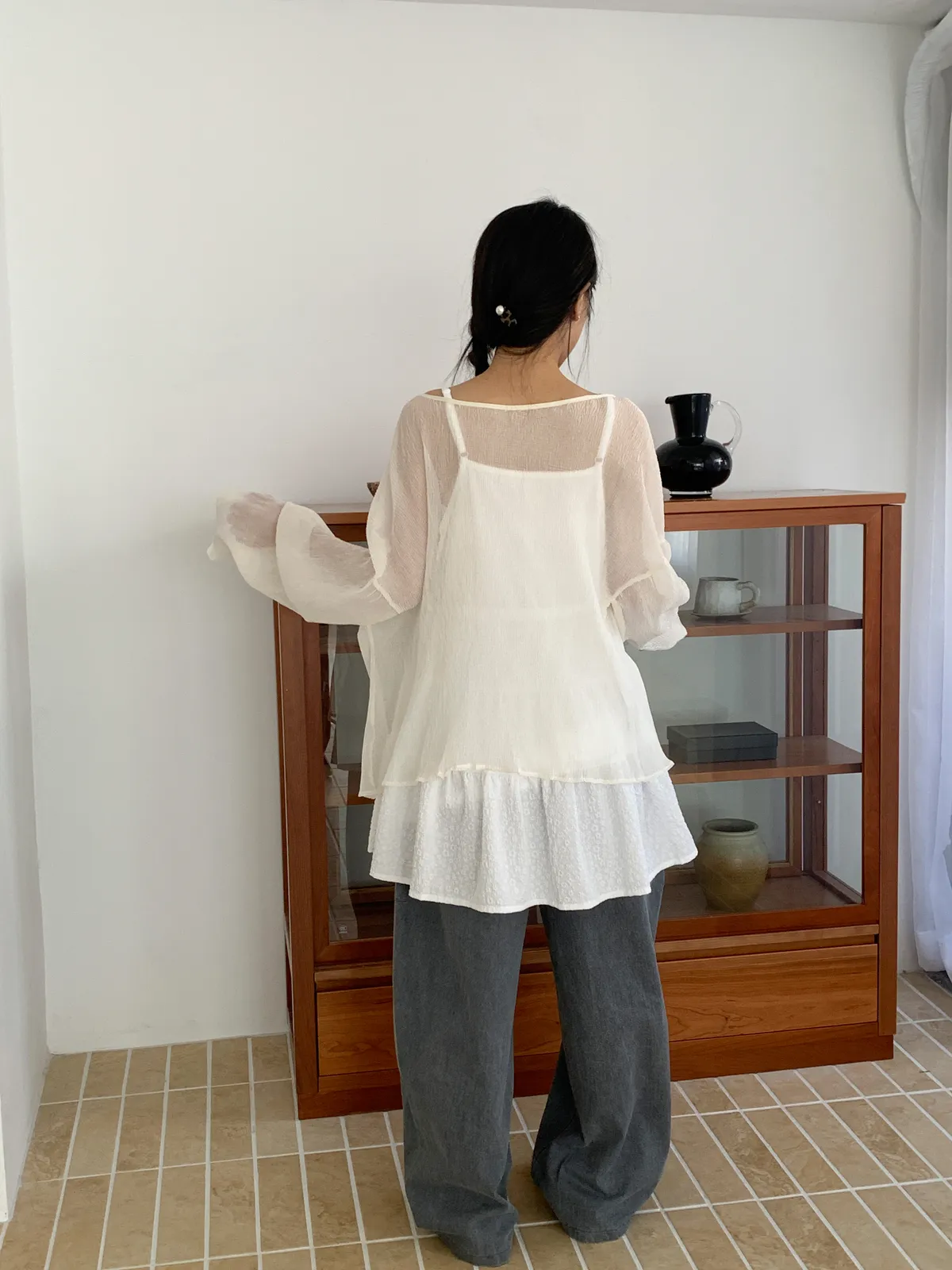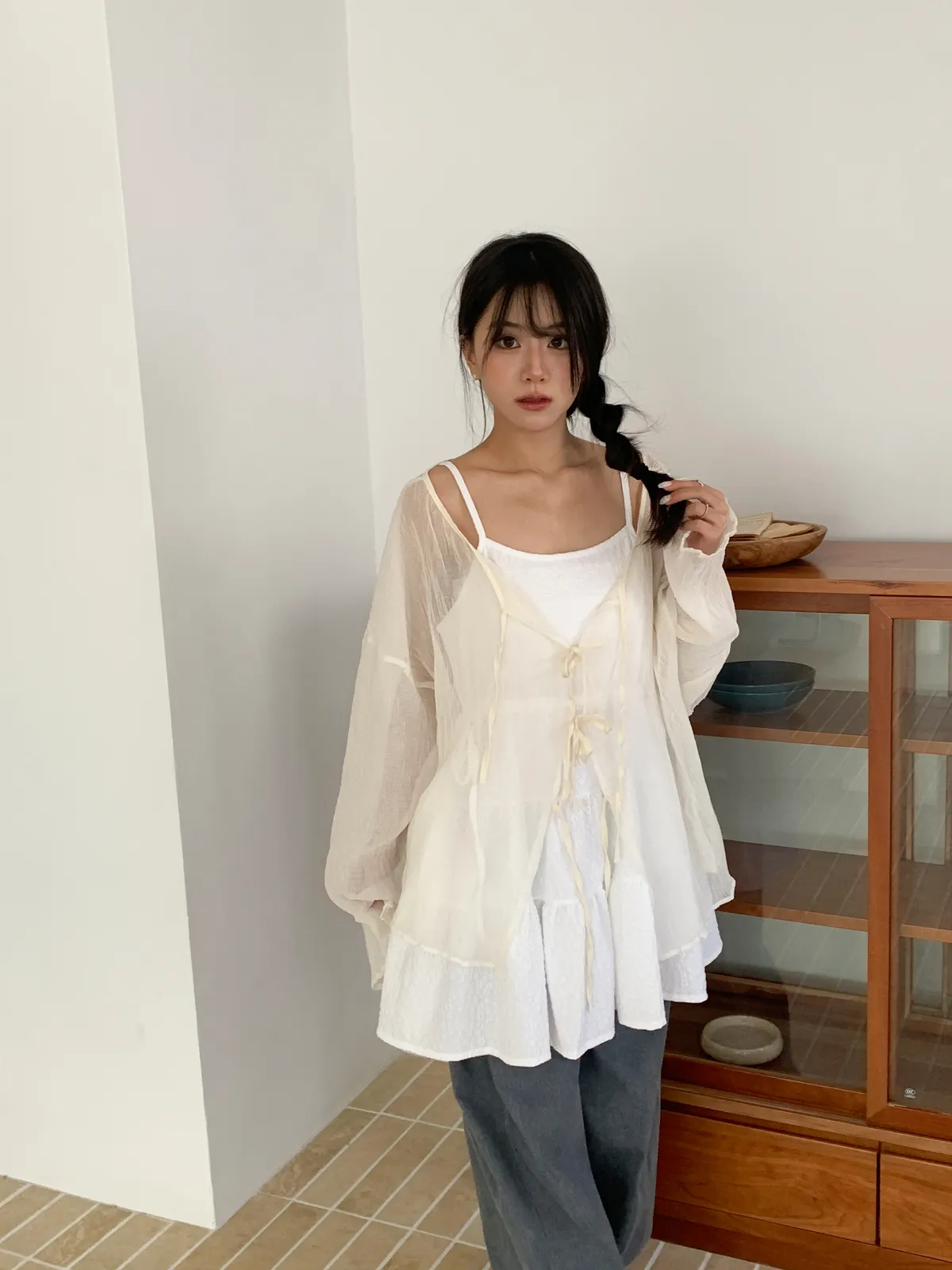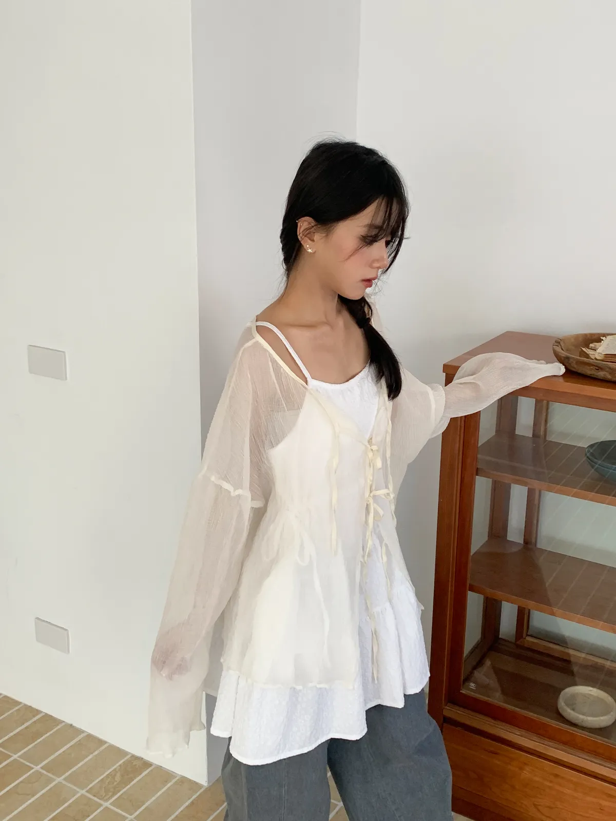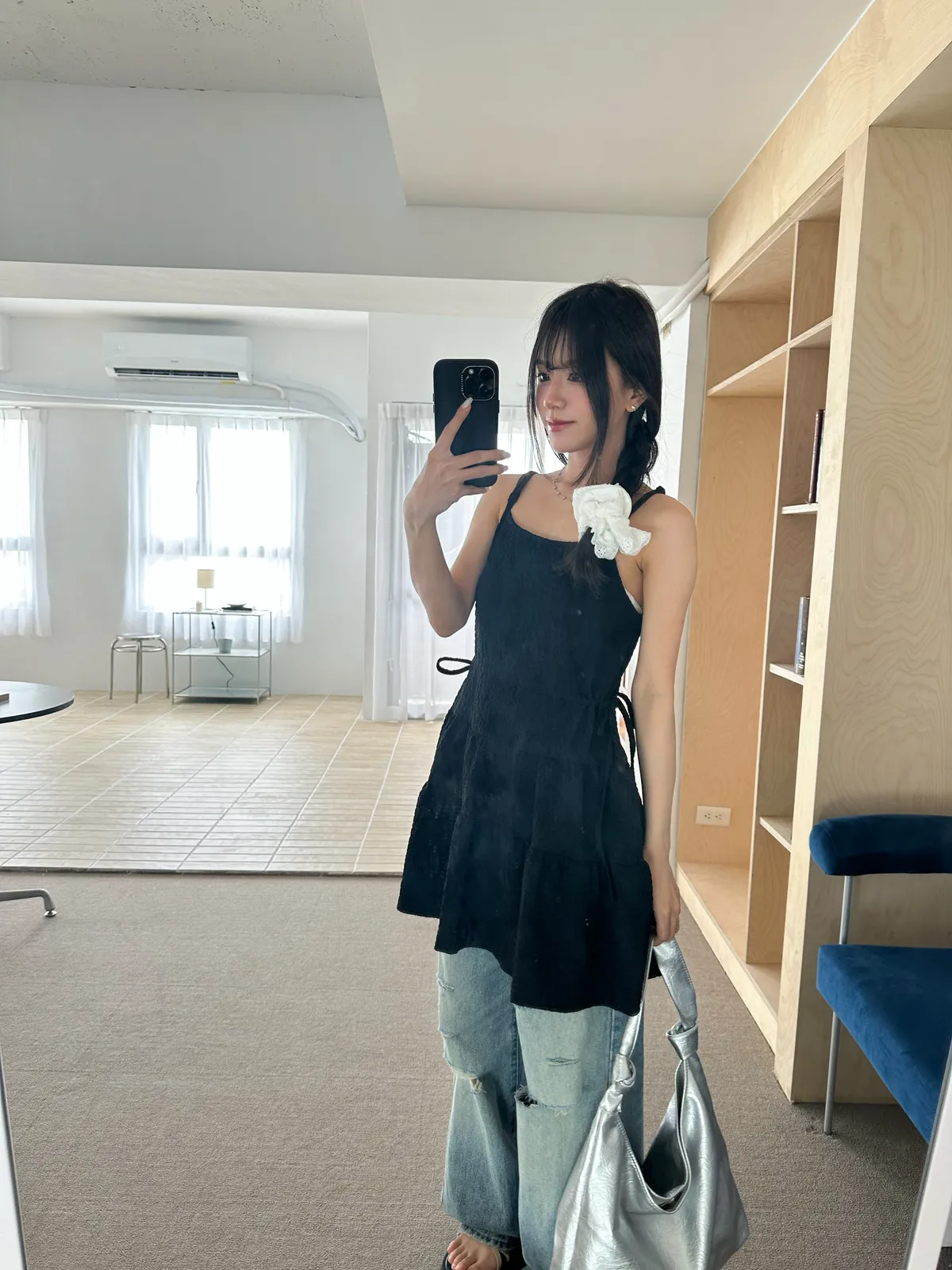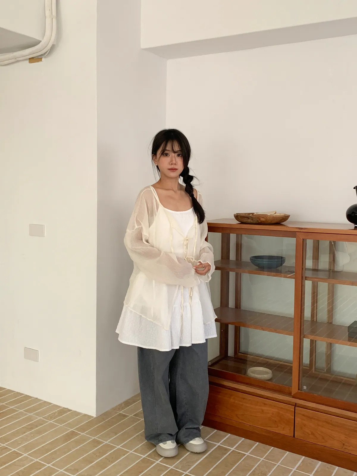 Model Size - F / 158cm, 42kg.- Side tie- Airy layers- Tiered volume dress