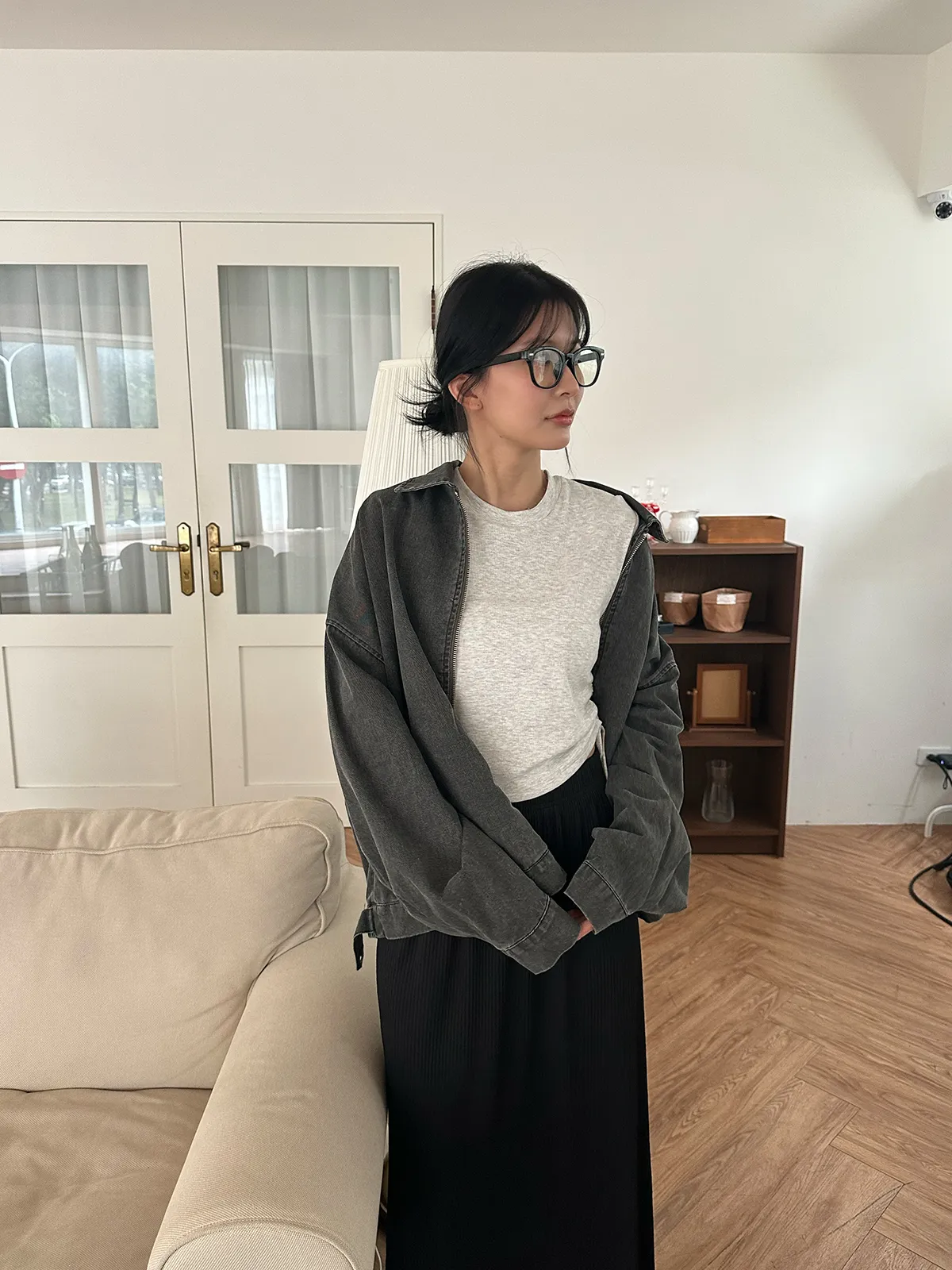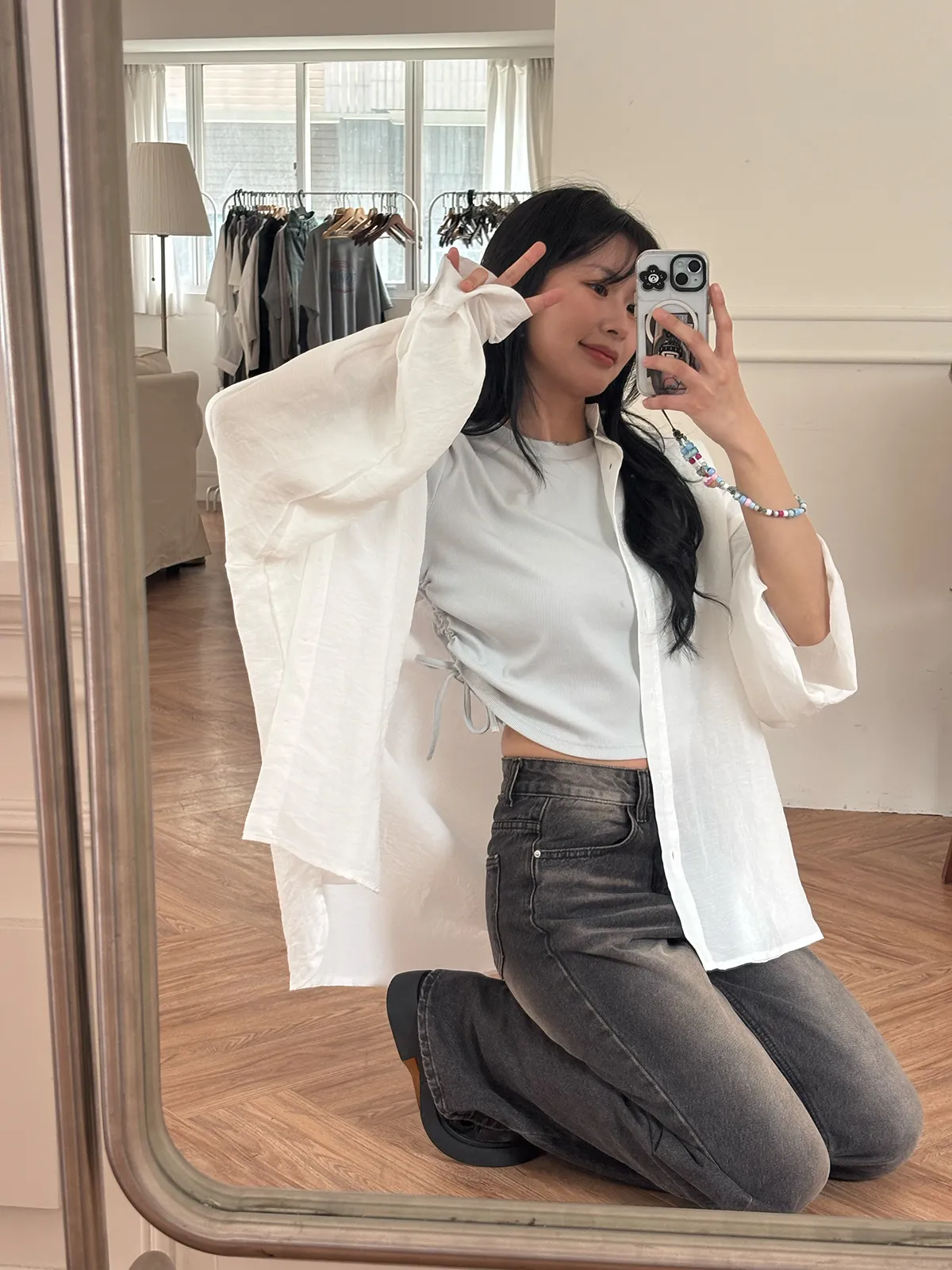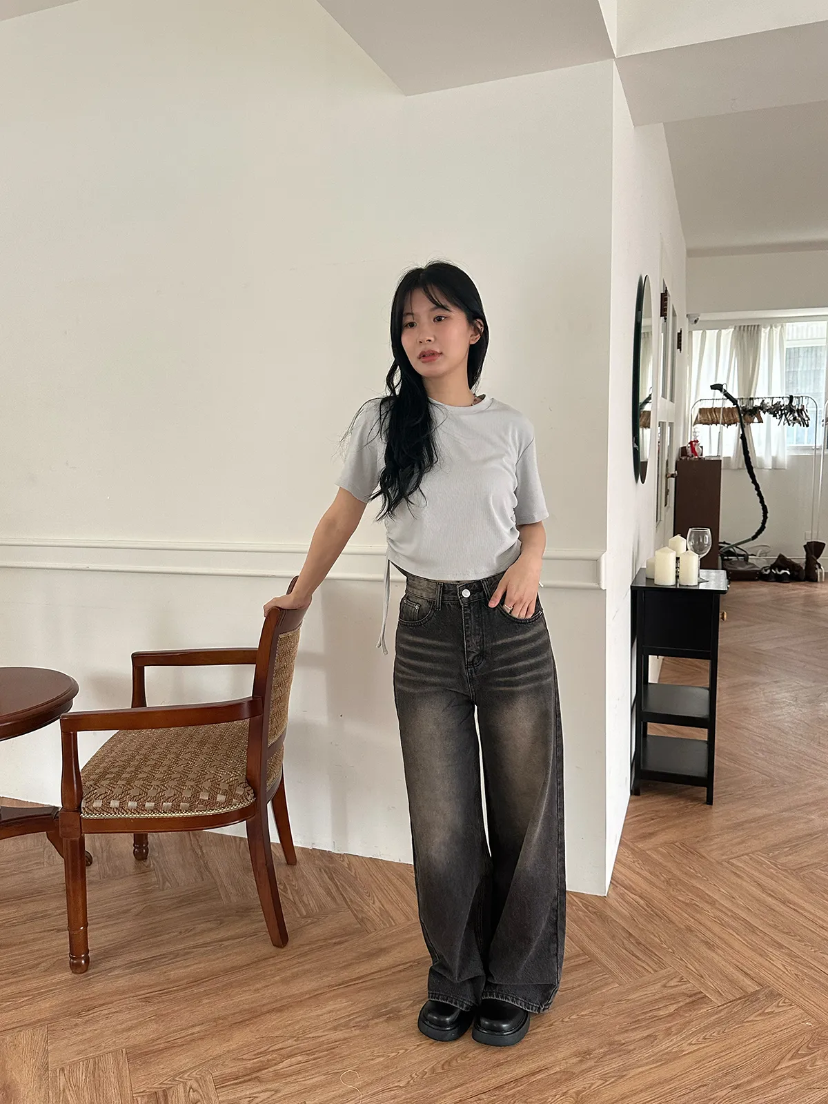 復古浪漫刷舊感寬鬆牛仔褲(2col)