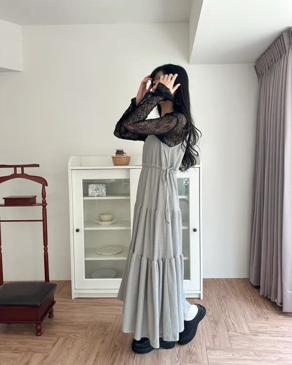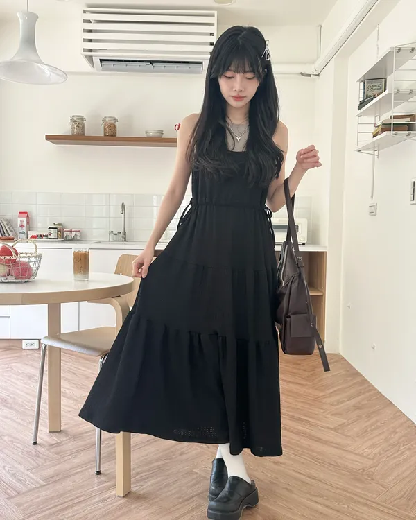 可抽繩收腰設計.ᐟ.ᐟ蛋糕長洋裝-5col