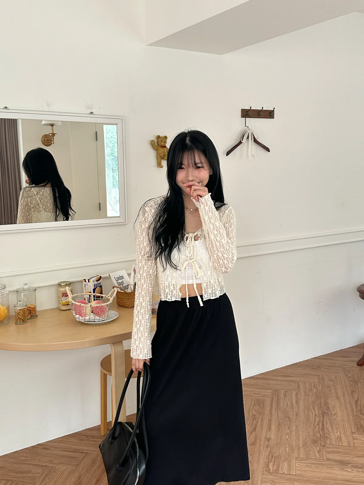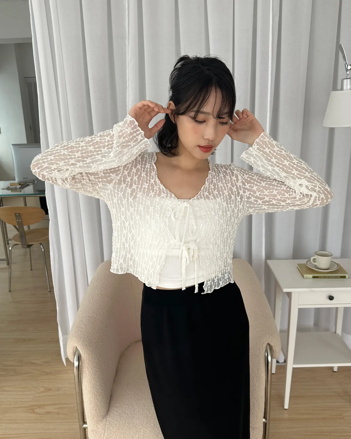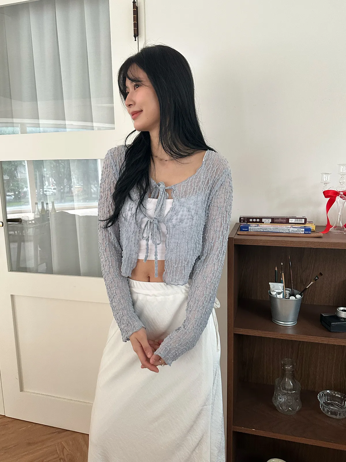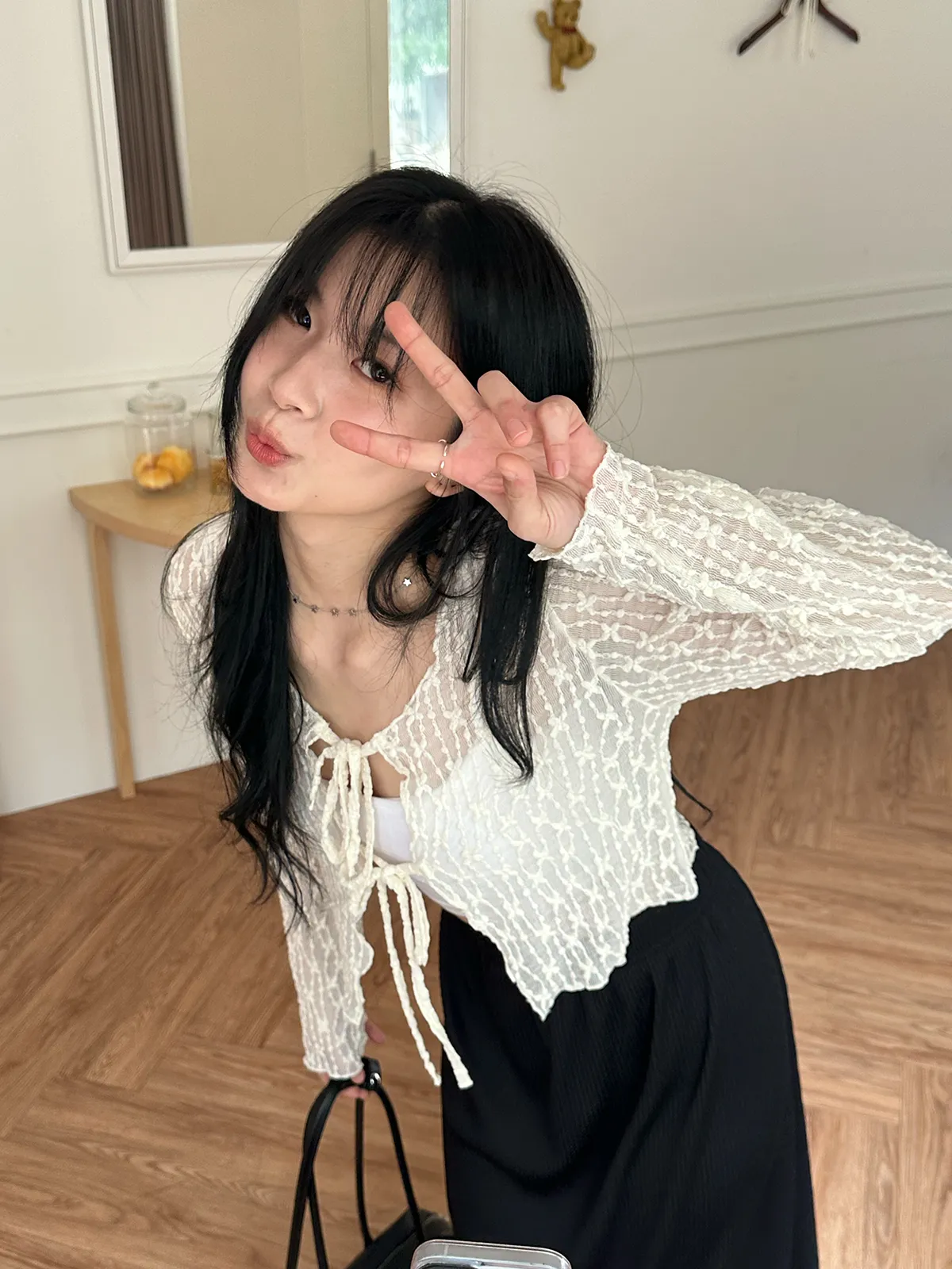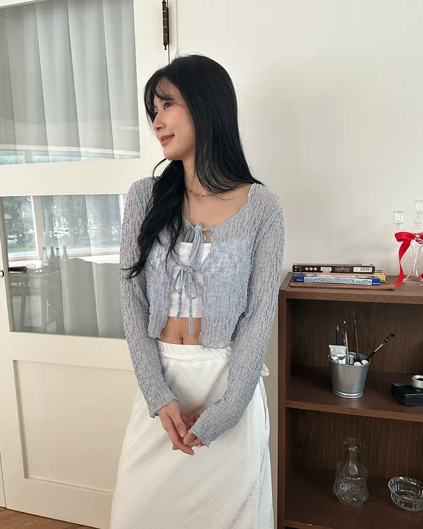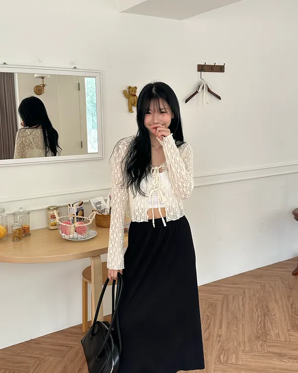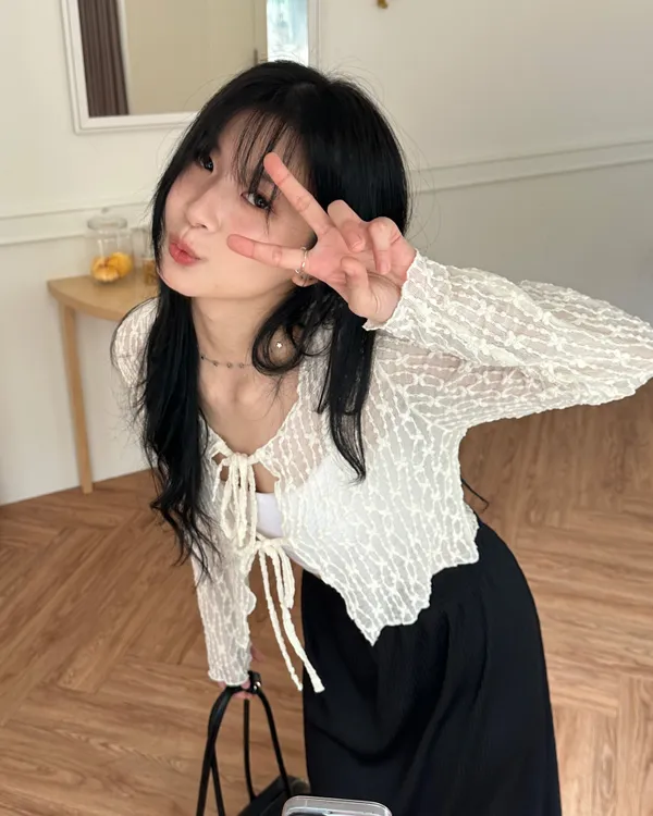 漫步在巴黎/蕾絲小花綁帶罩衫(3col)