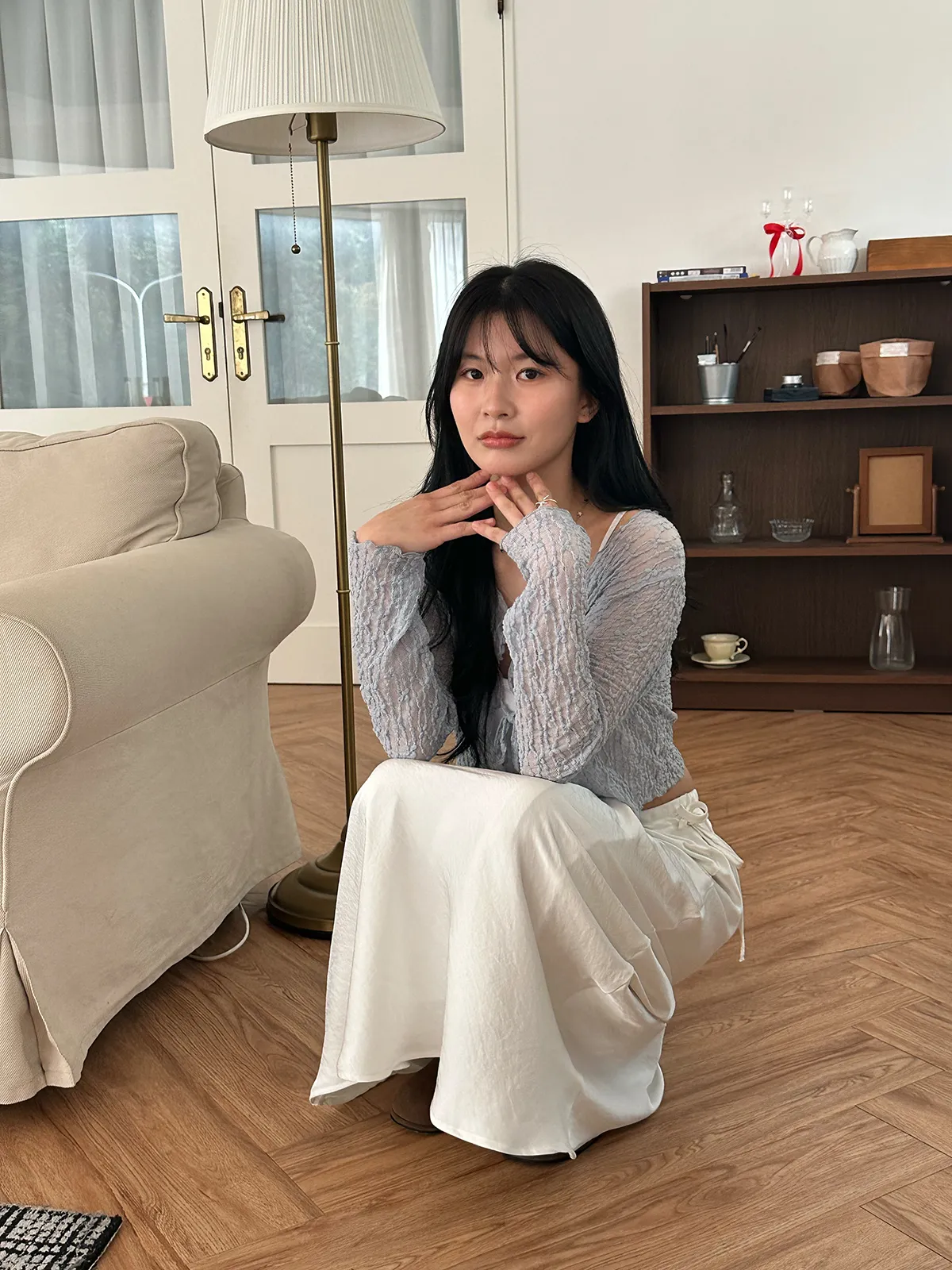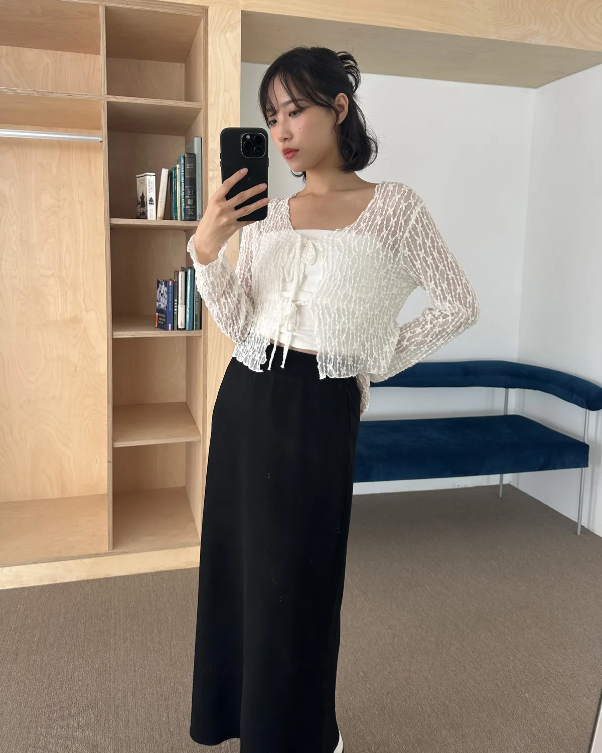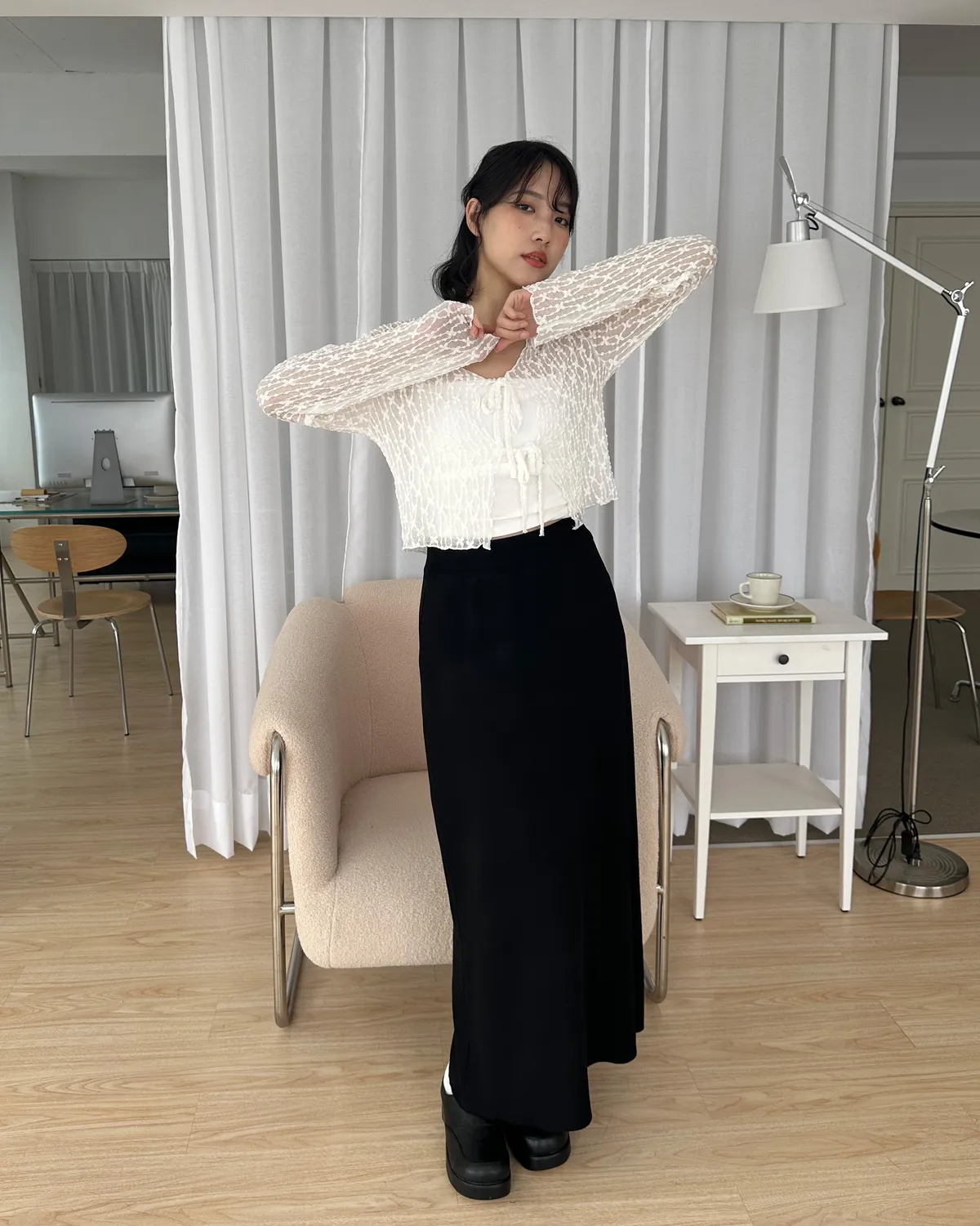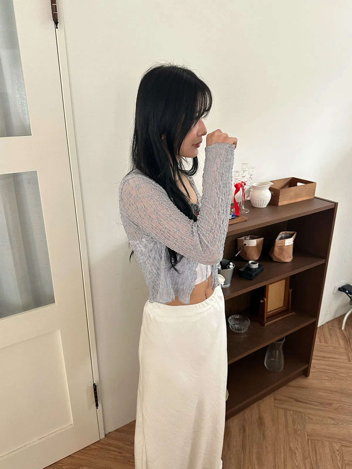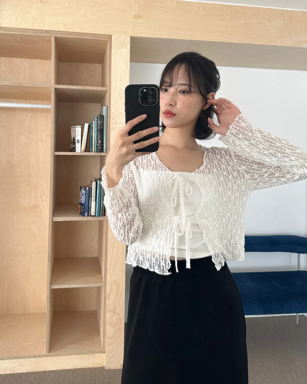 漫步在巴黎/蕾絲小花綁帶罩衫(3col)