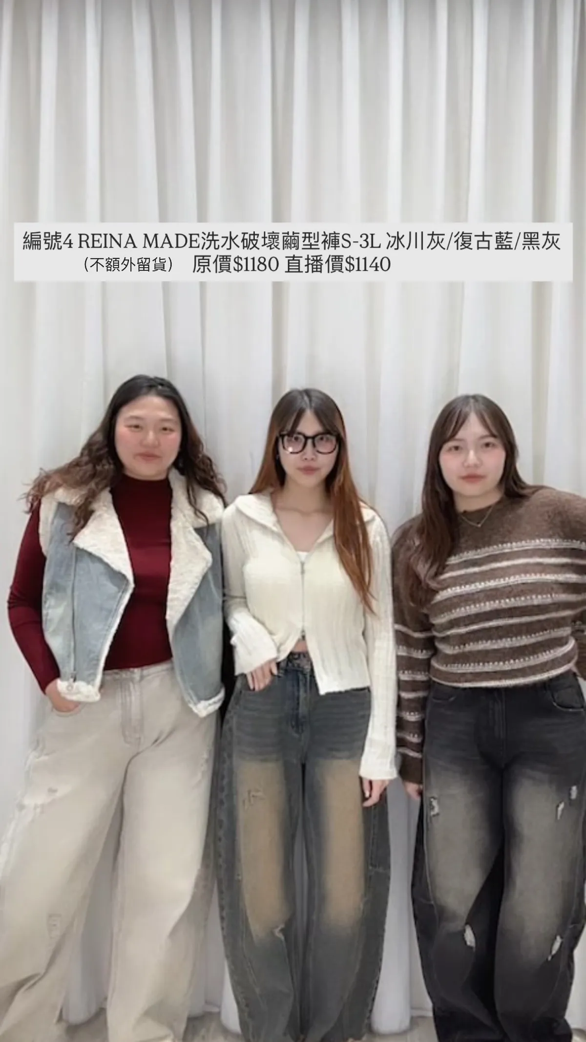編號4 REINA MADE洗水破壞繭型褲S-3L 冰川灰/黑灰 尺寸表