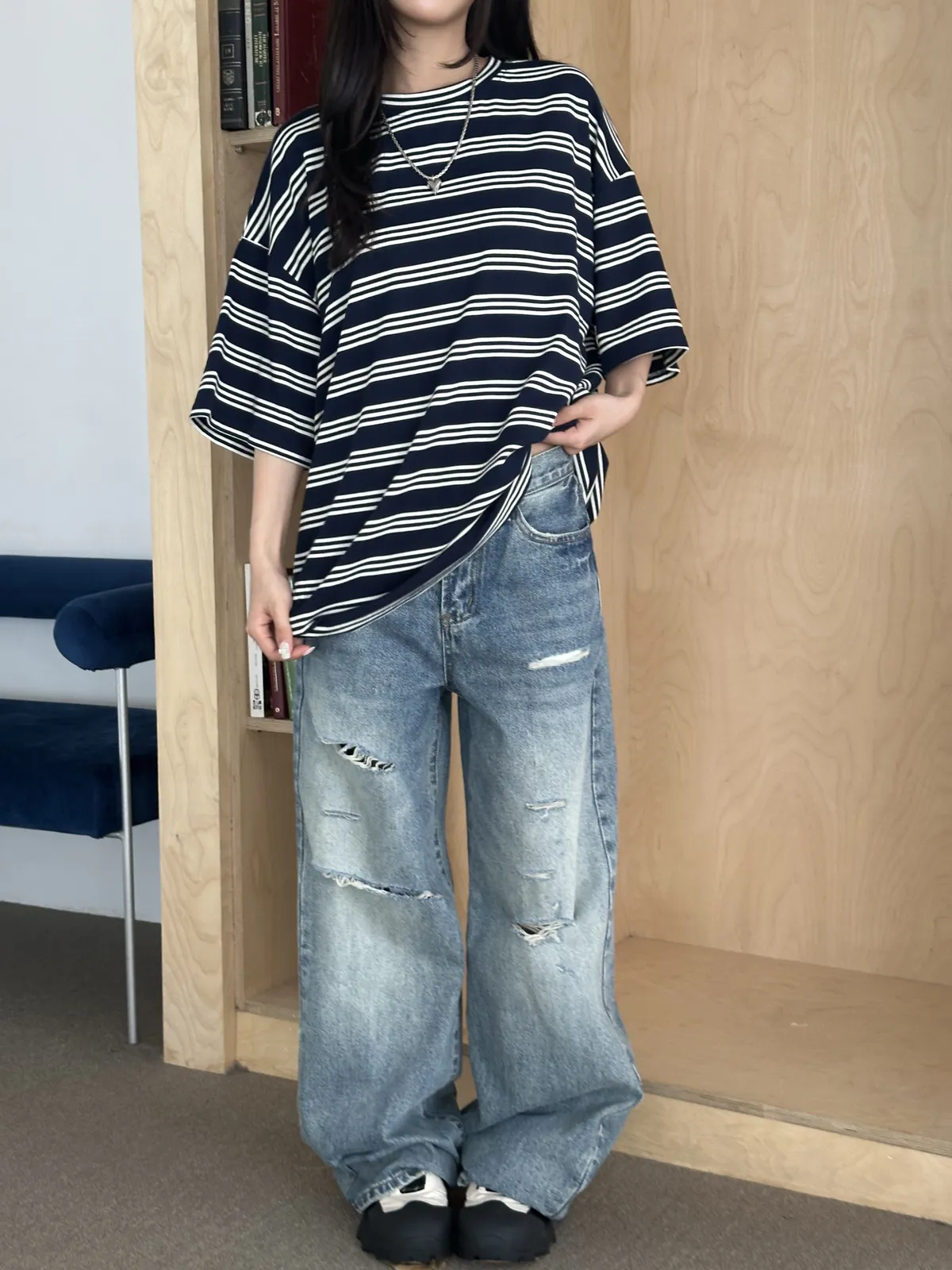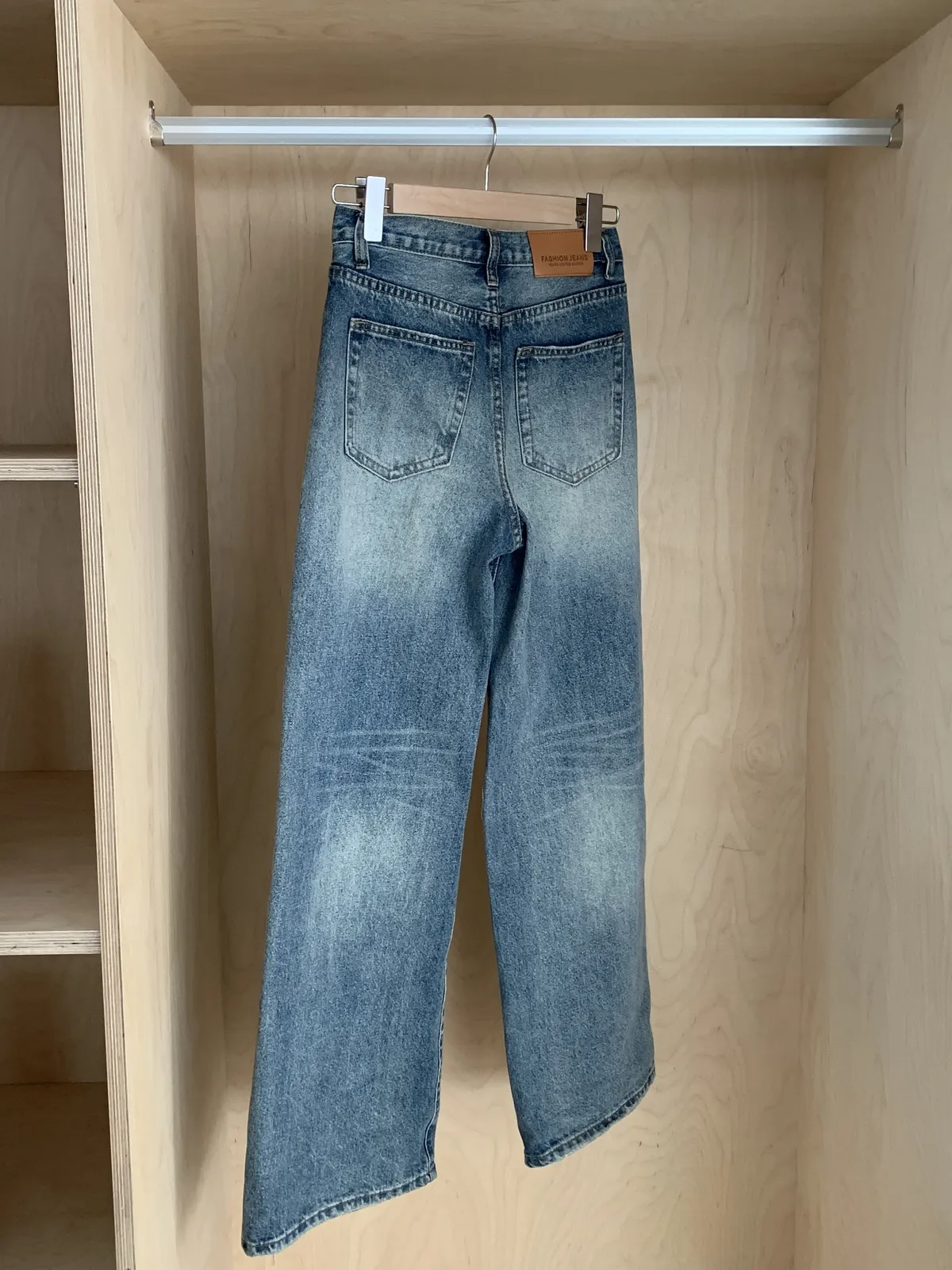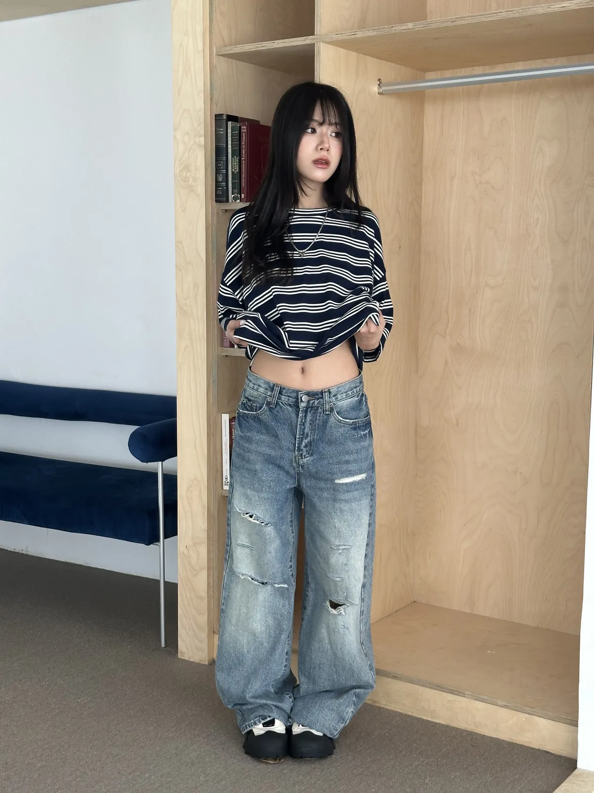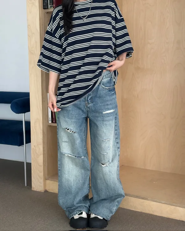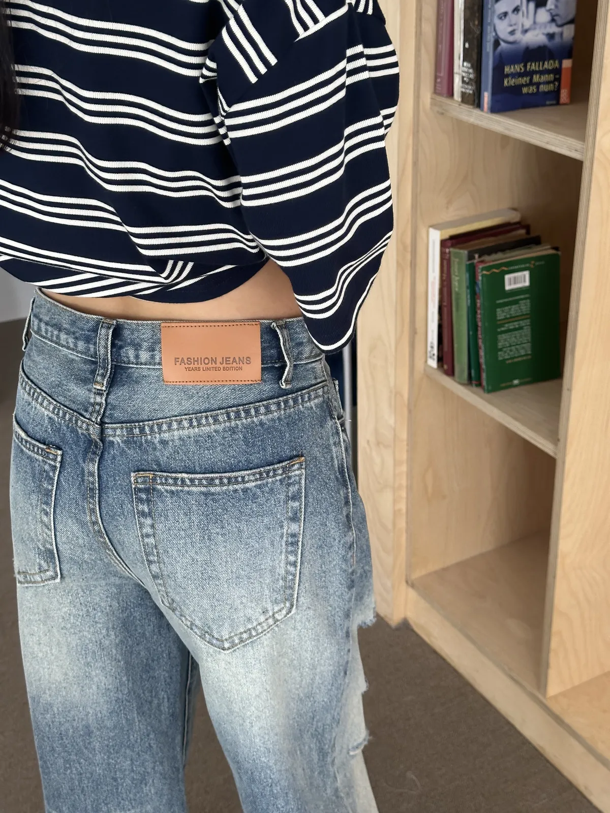 Seoul vibes刷破設計 復古直筒牛仔褲-1col