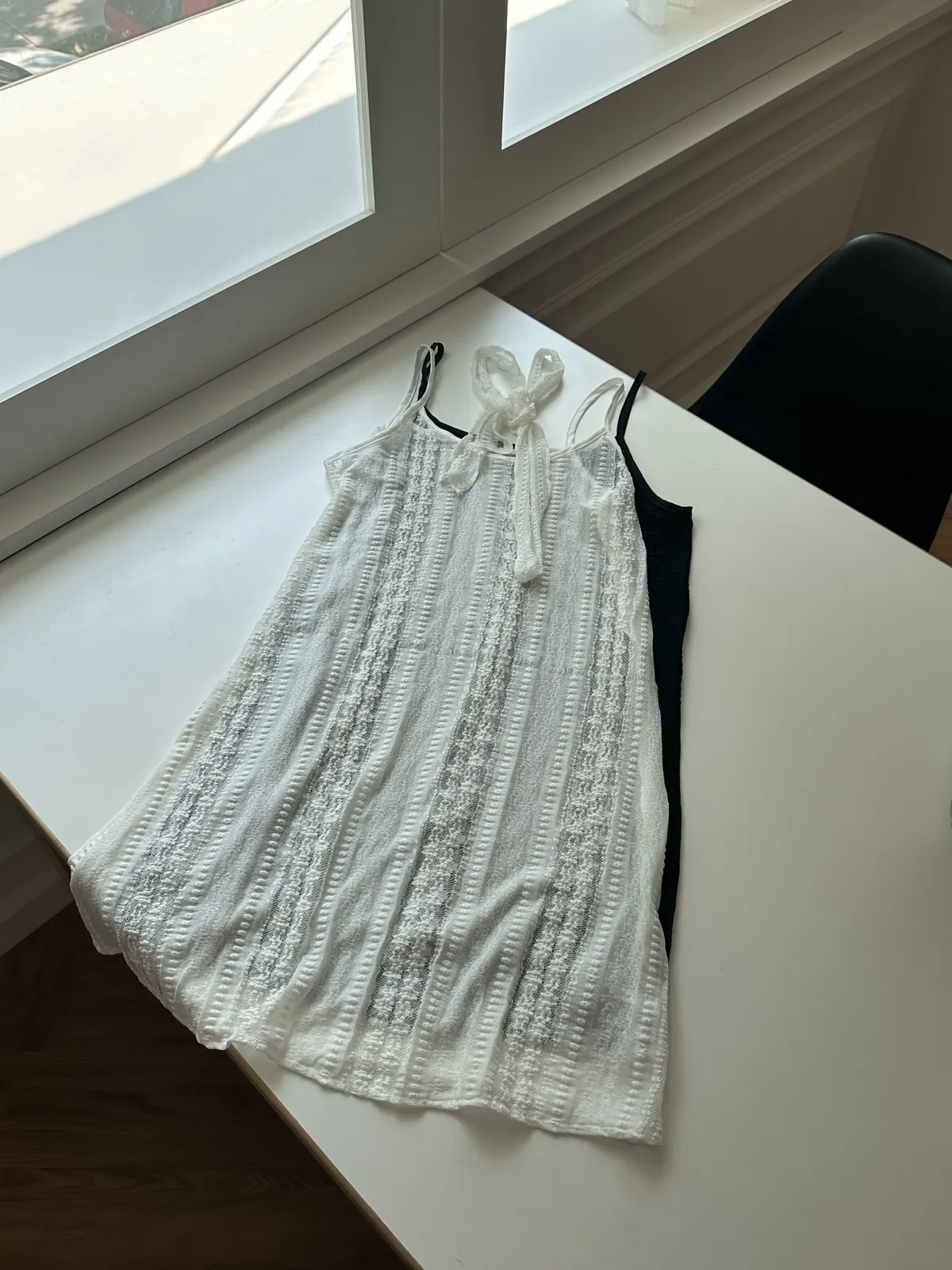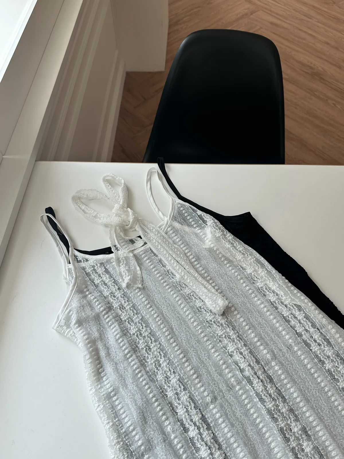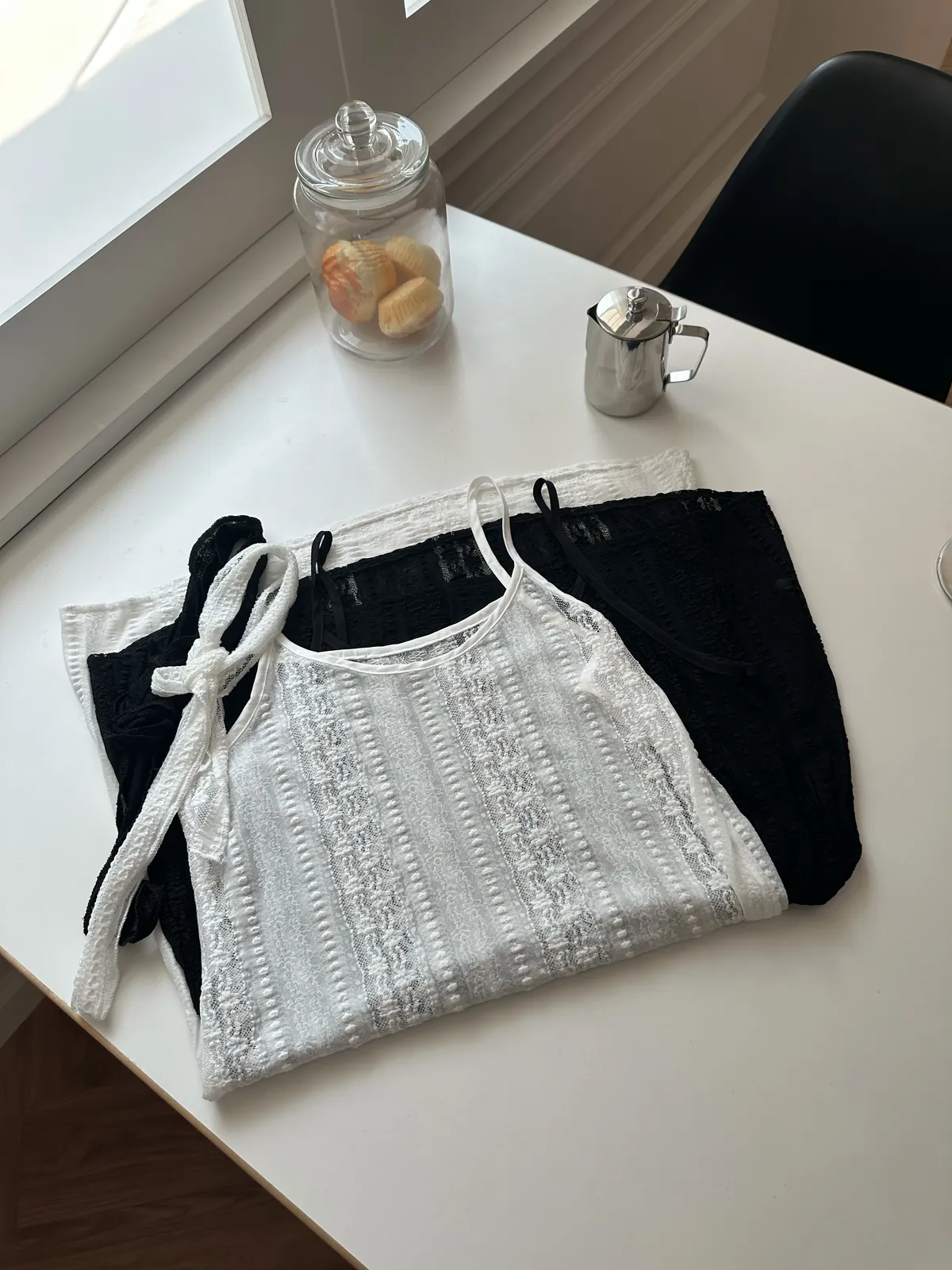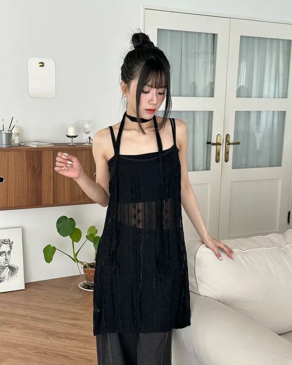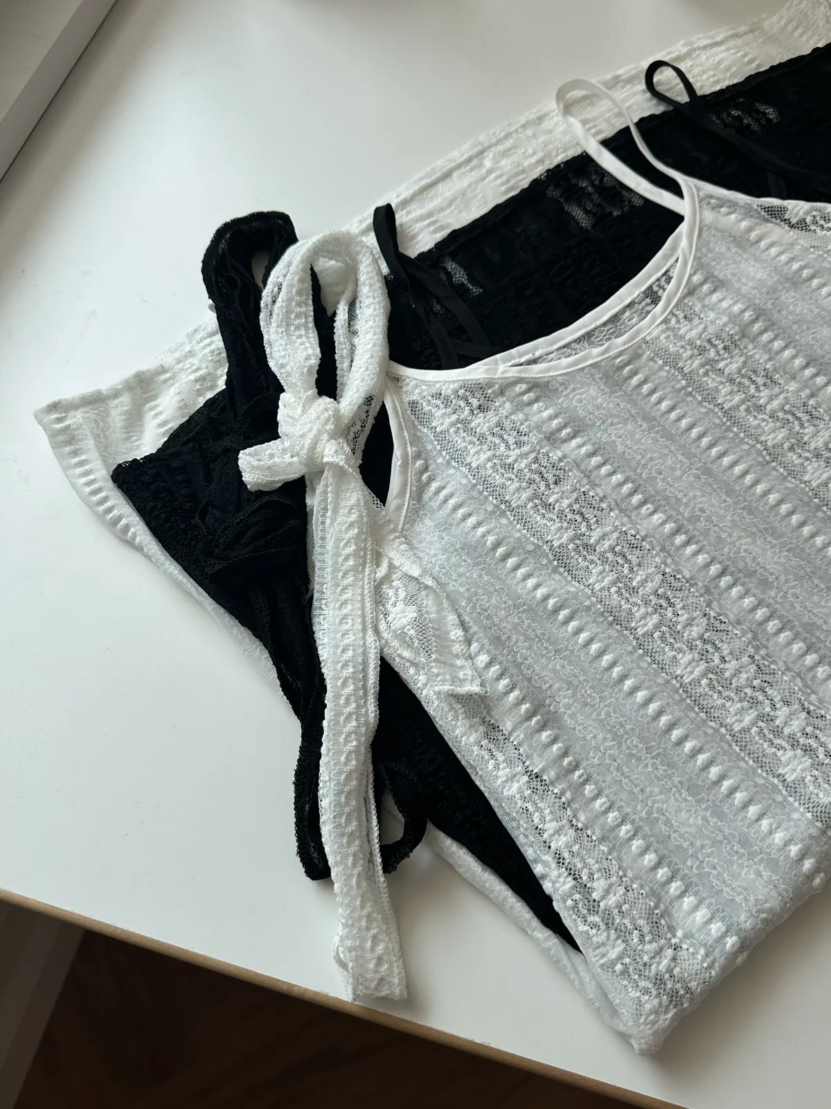 Model Size - F / 158cm, 42kg.- Lace texture- Soft sheer lines- Ribbon tie strap