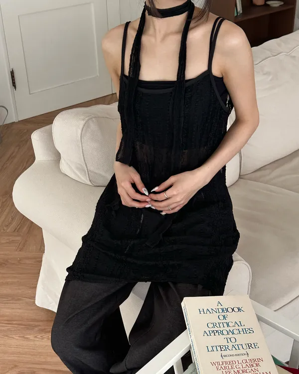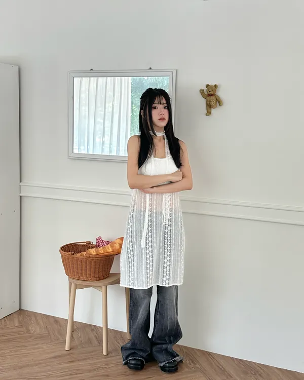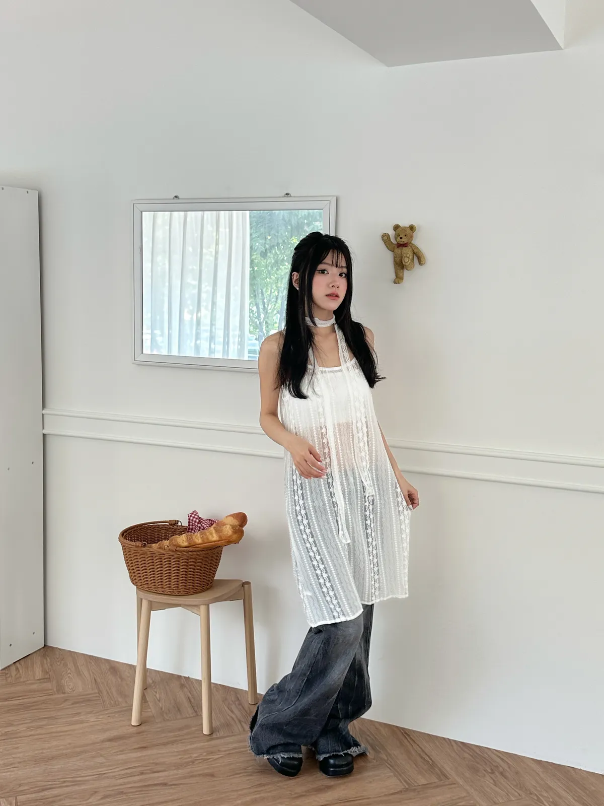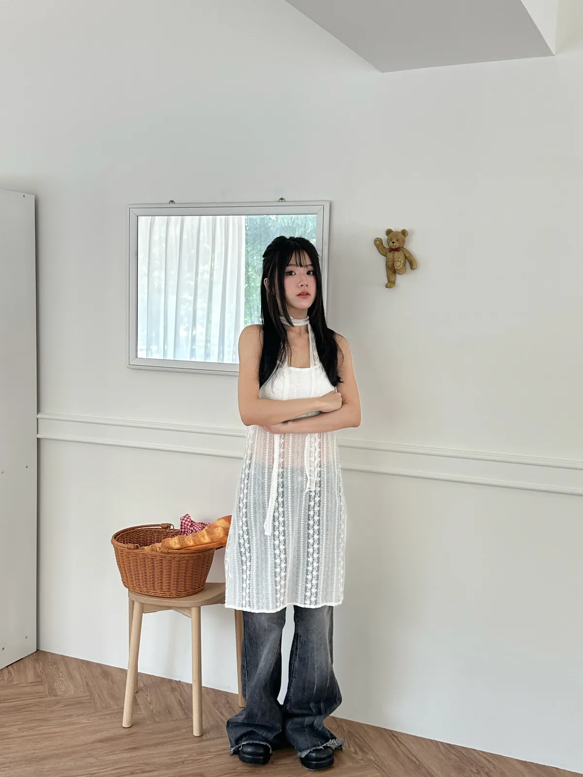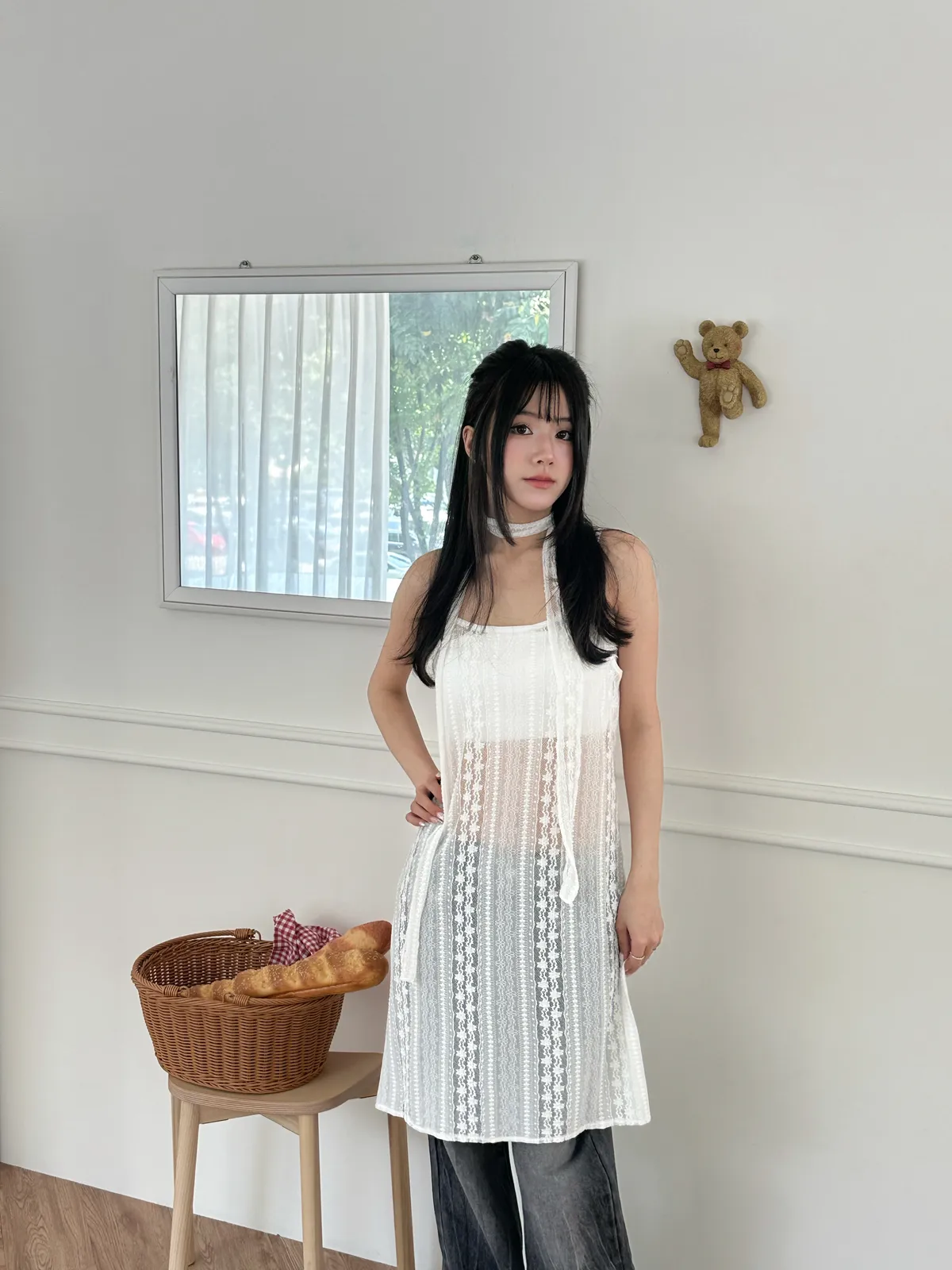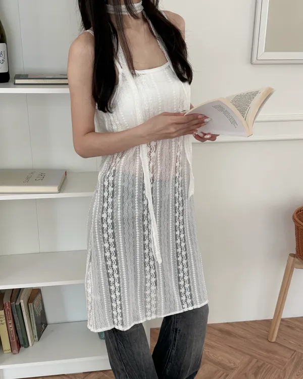 Model Size - F / 158cm, 42kg.- Lace texture- Soft sheer lines- Ribbon tie strap