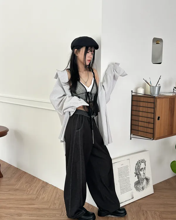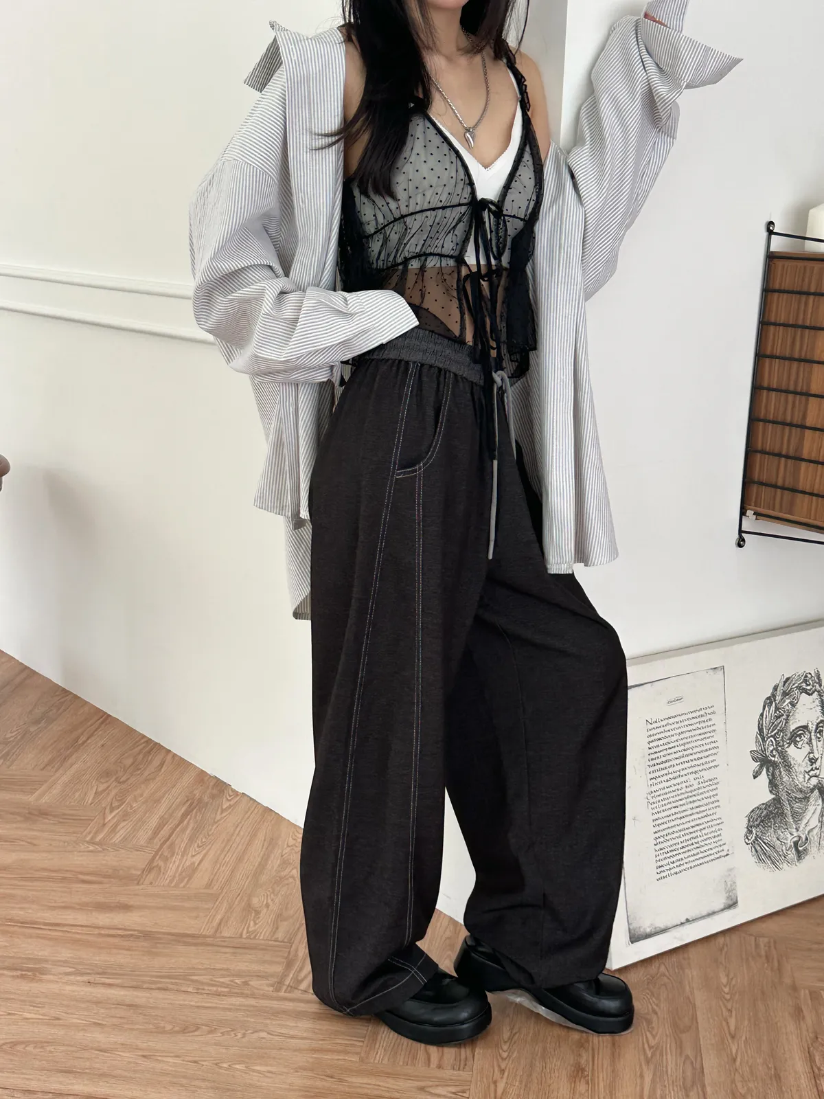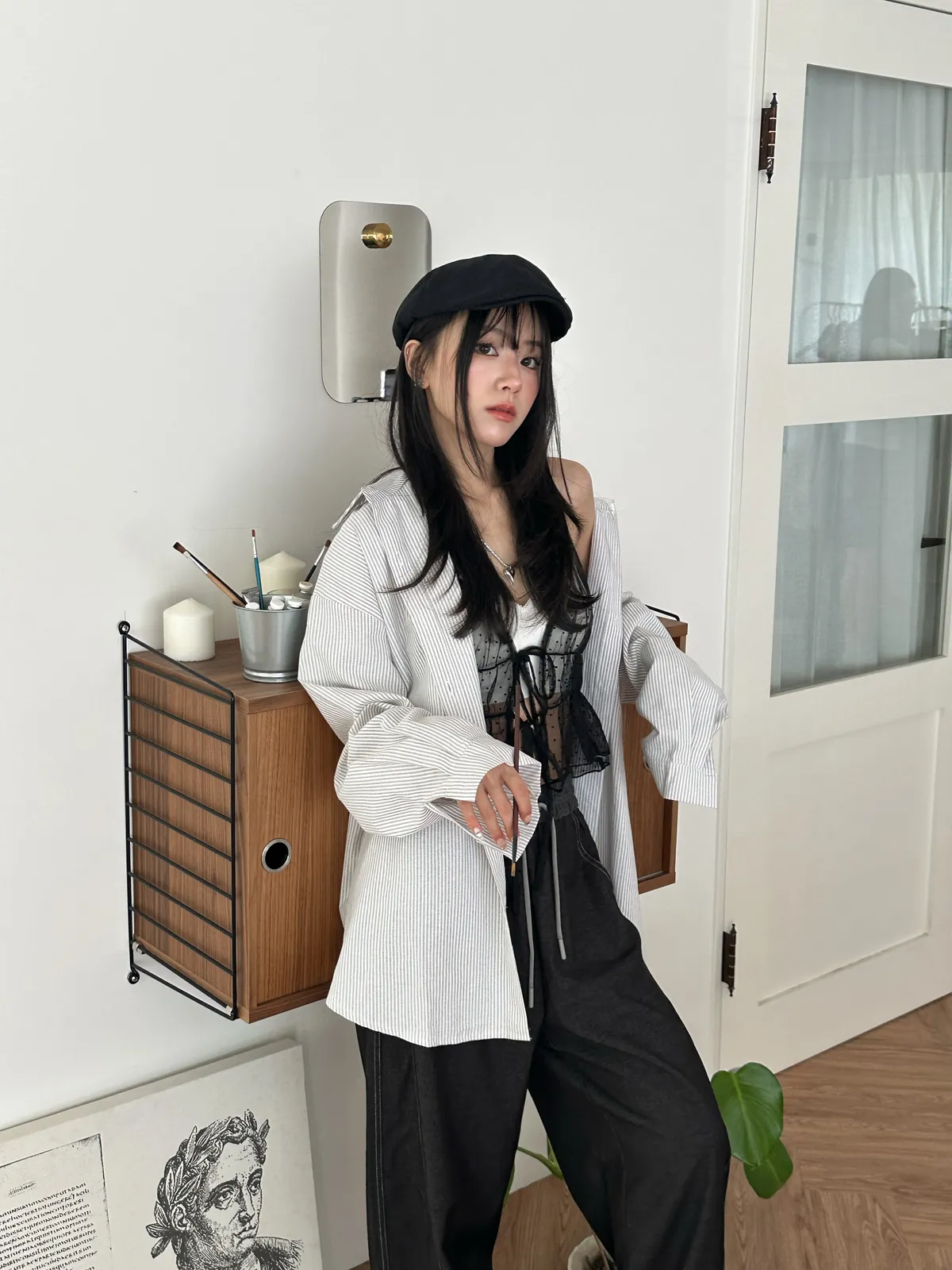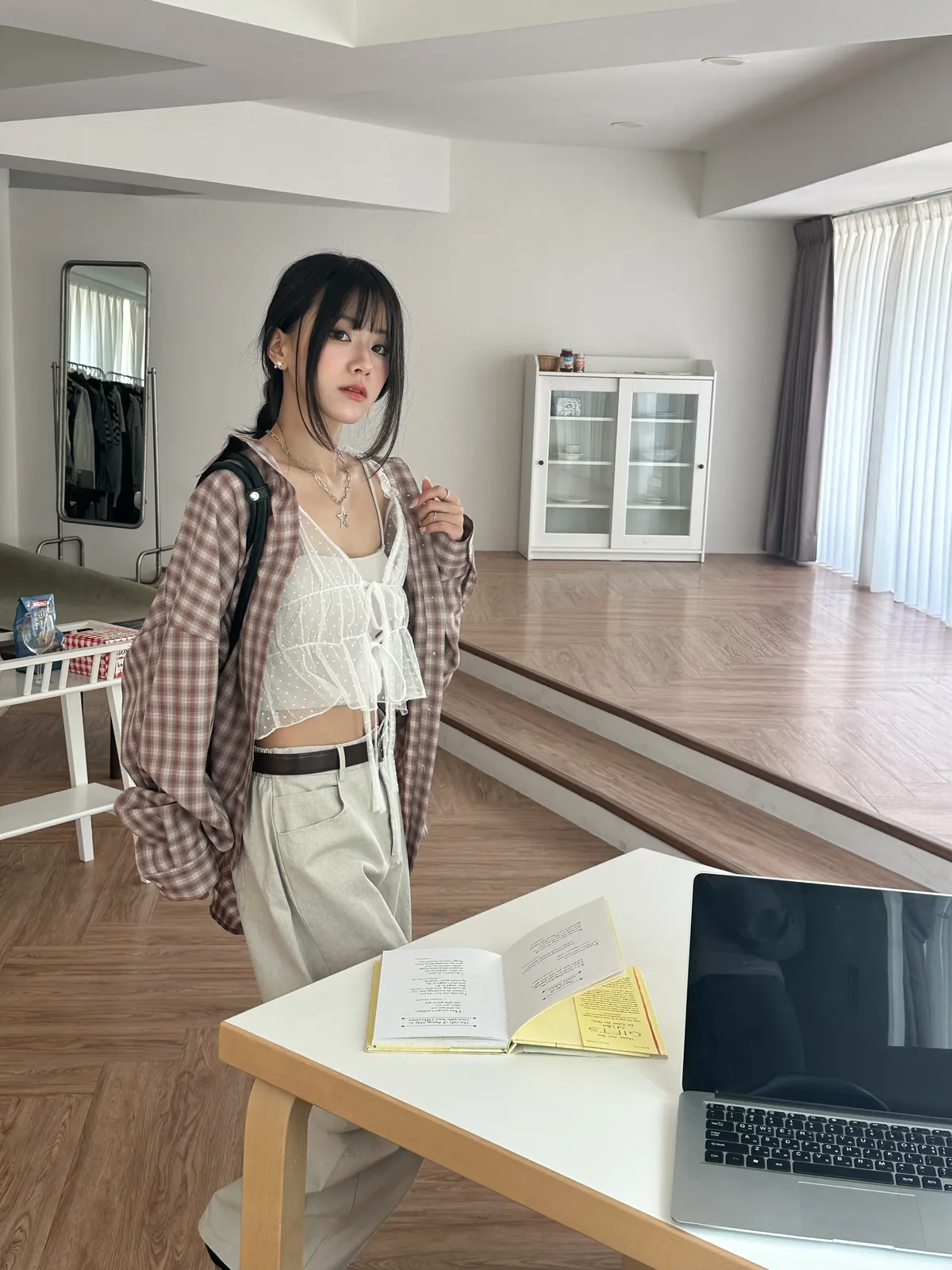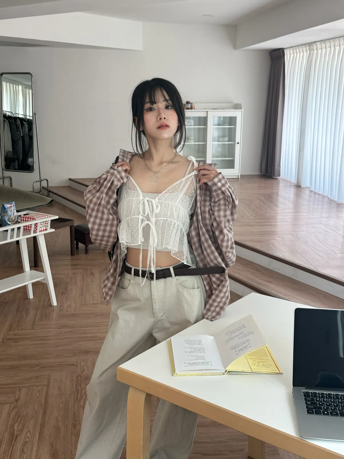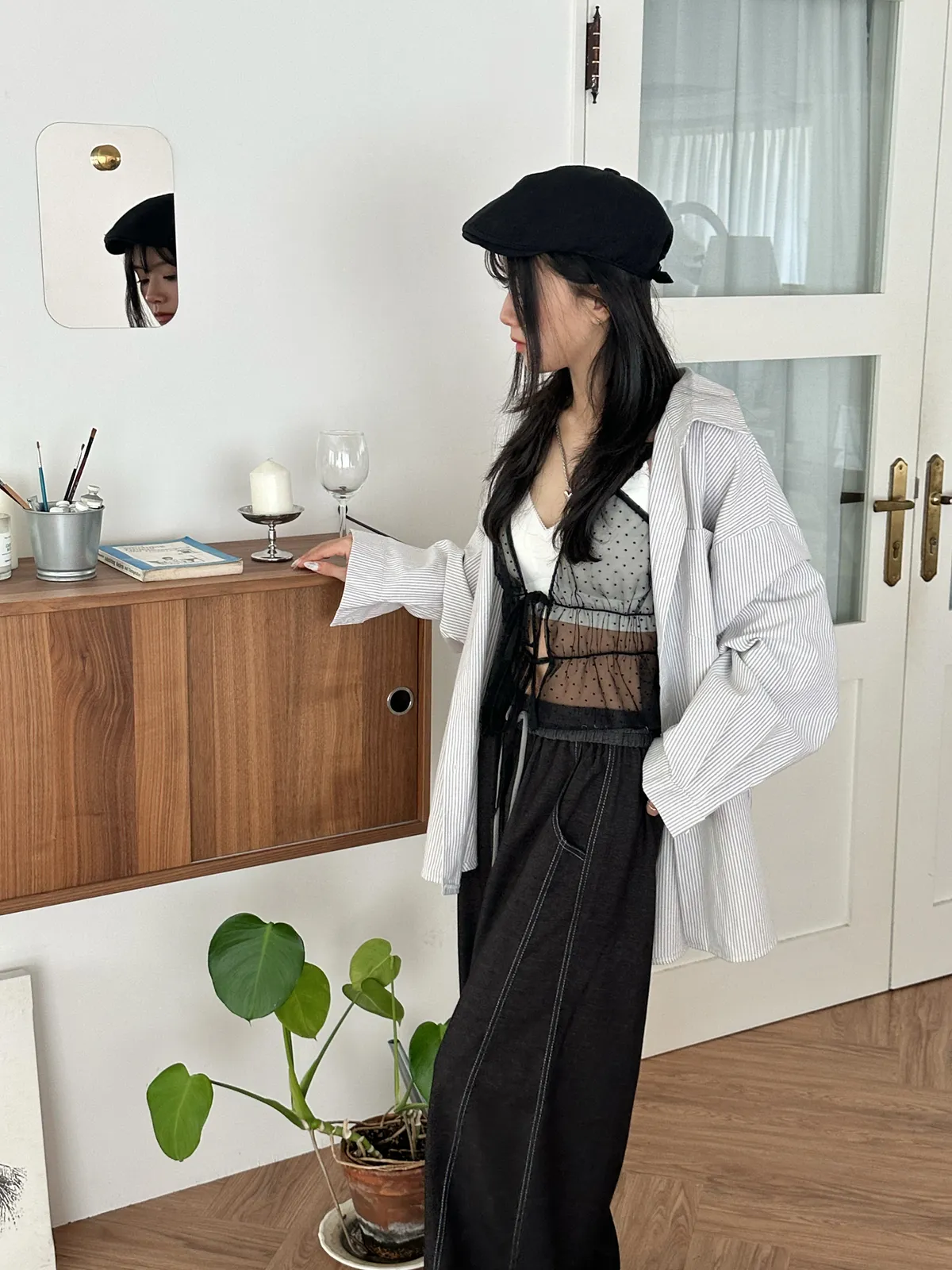 Model Size - F / 158cm, 42kg.- Ribbon tie- Mesh babydoll- See-through camisole