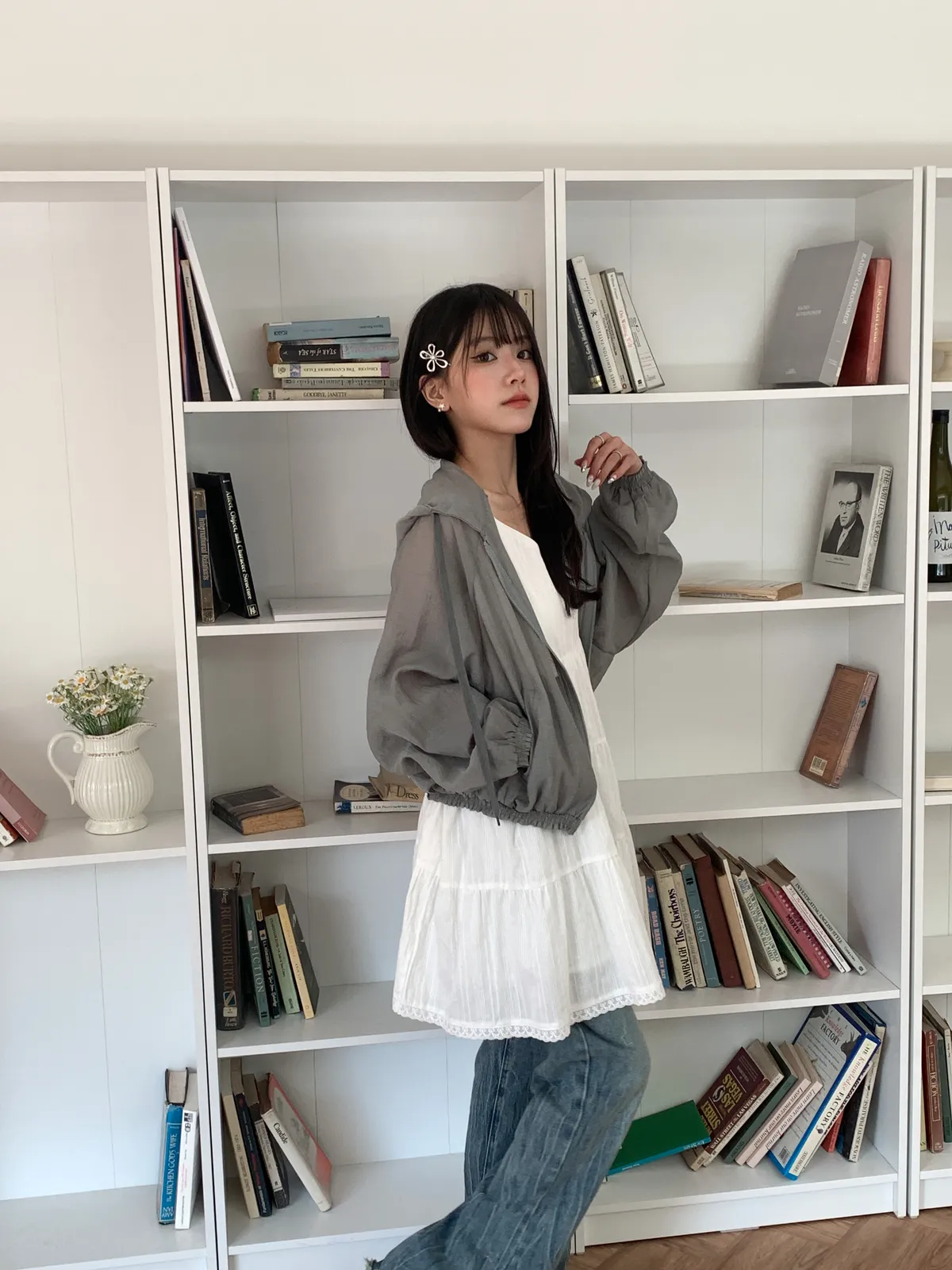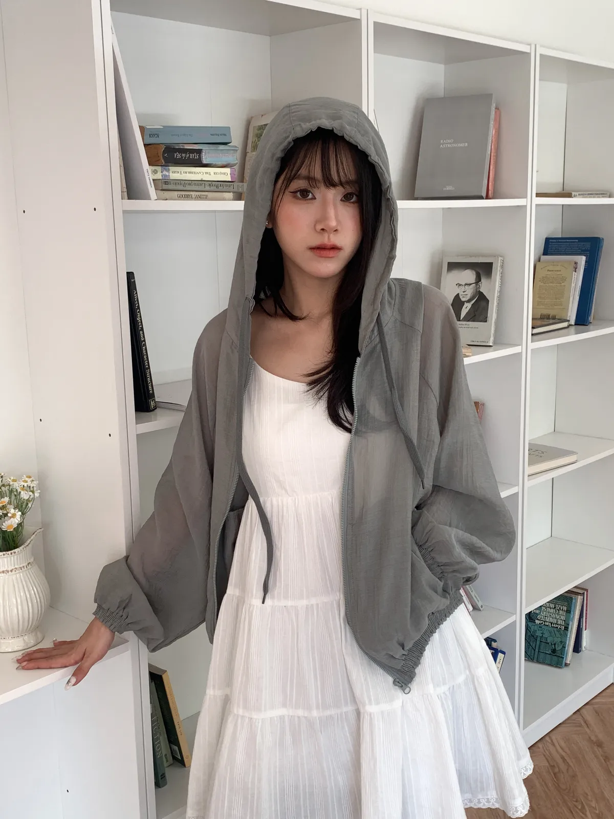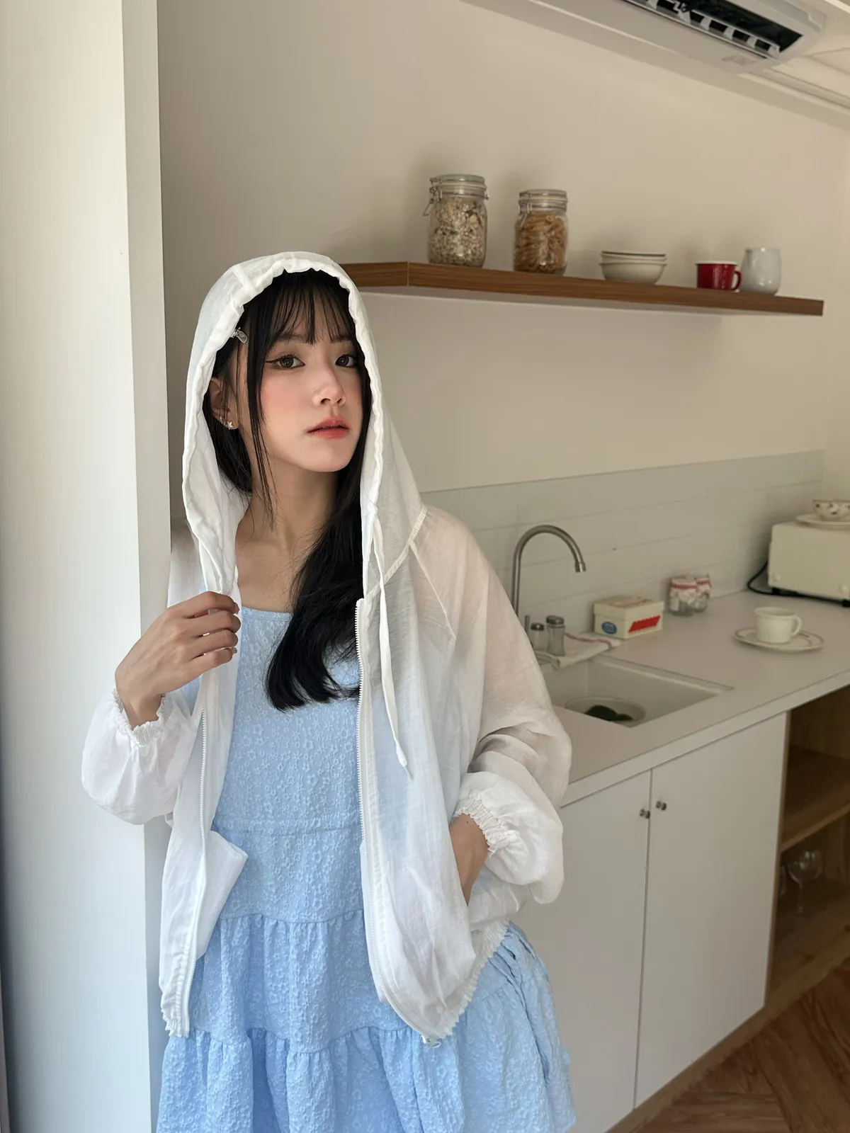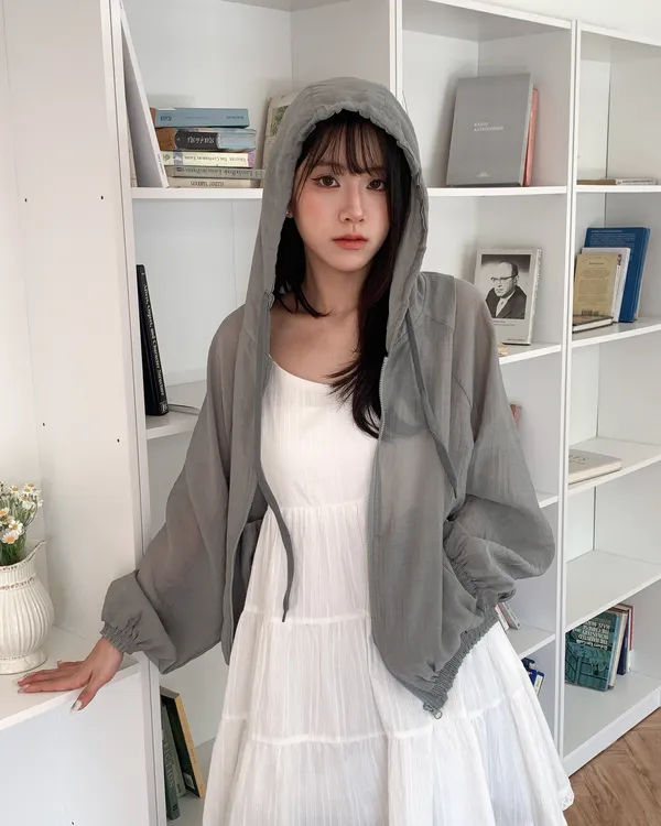 Model Size - F / 158cm, 42kg.- Airy layer- Sun cover hoodie- Lightweight & breathable