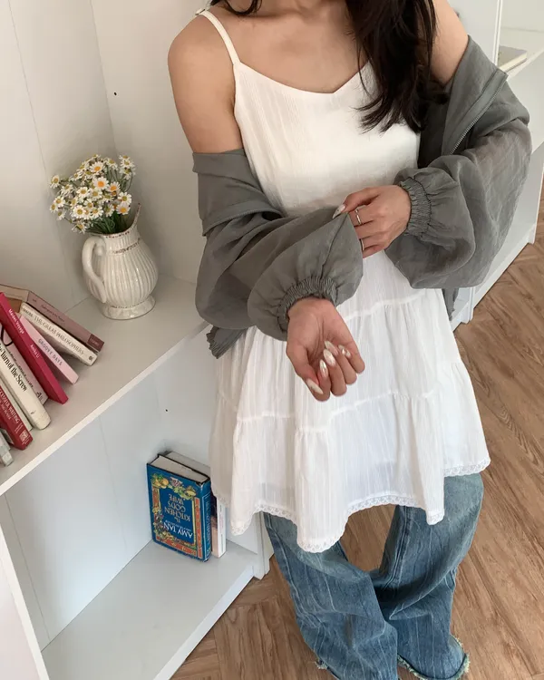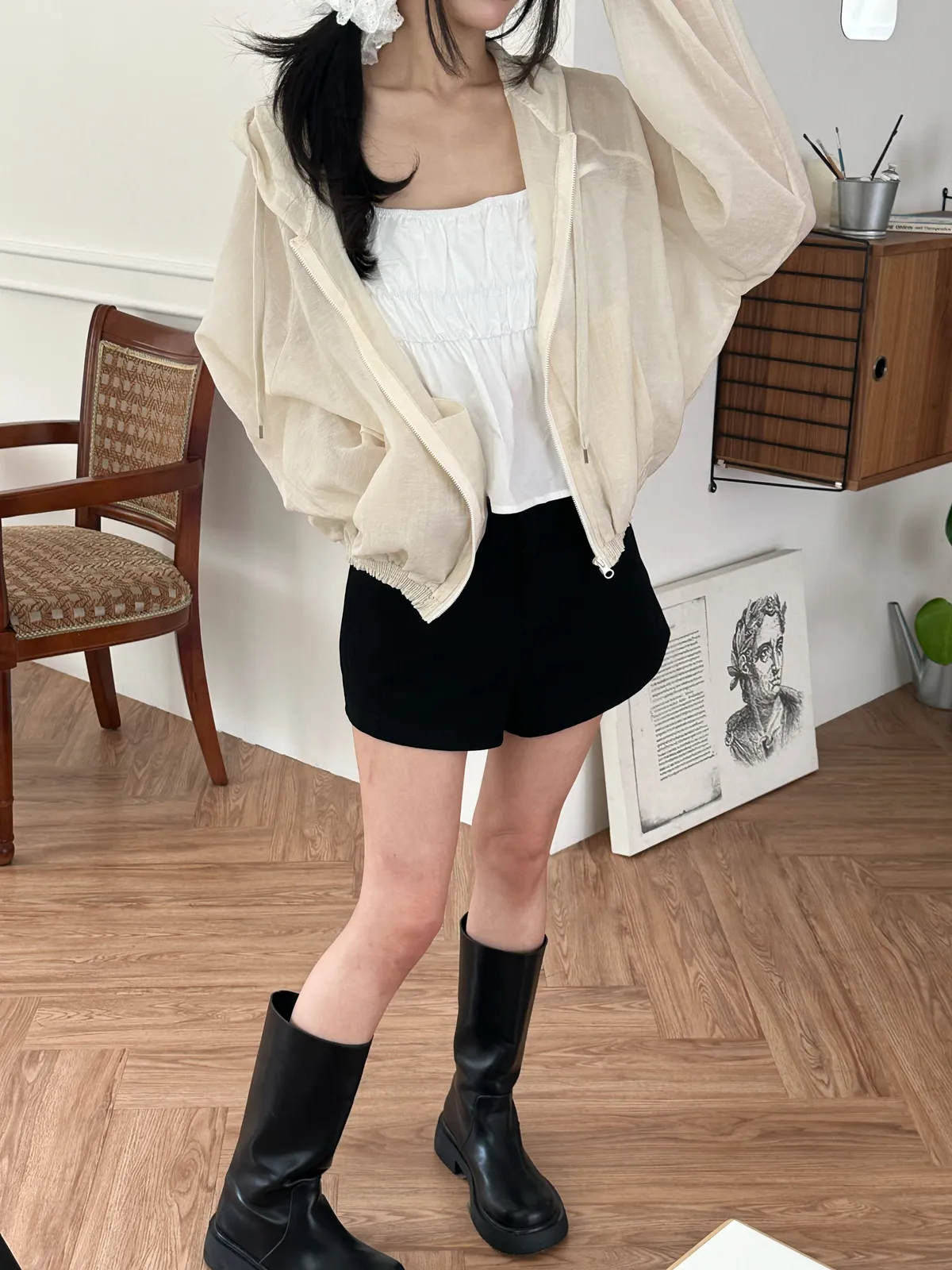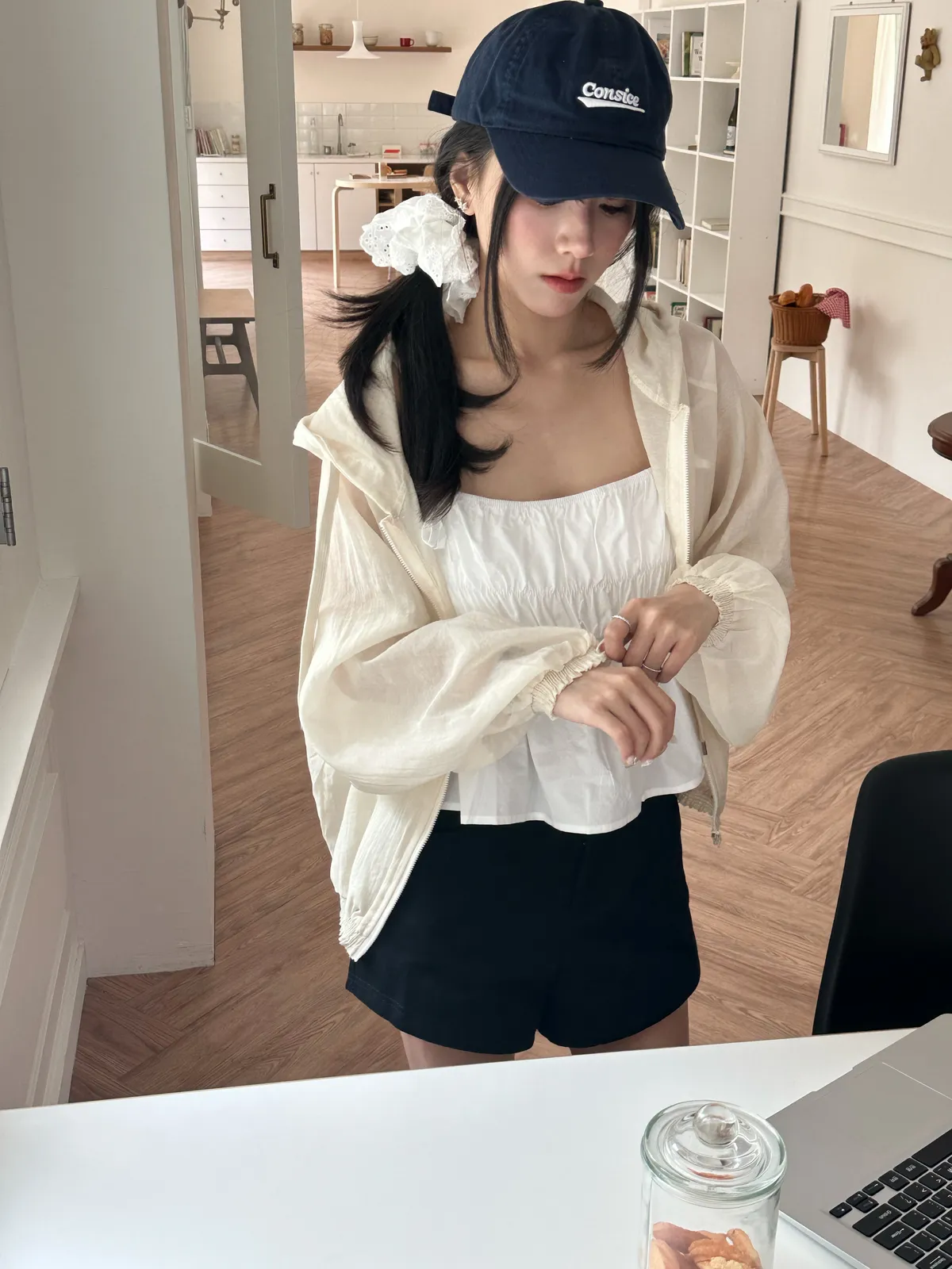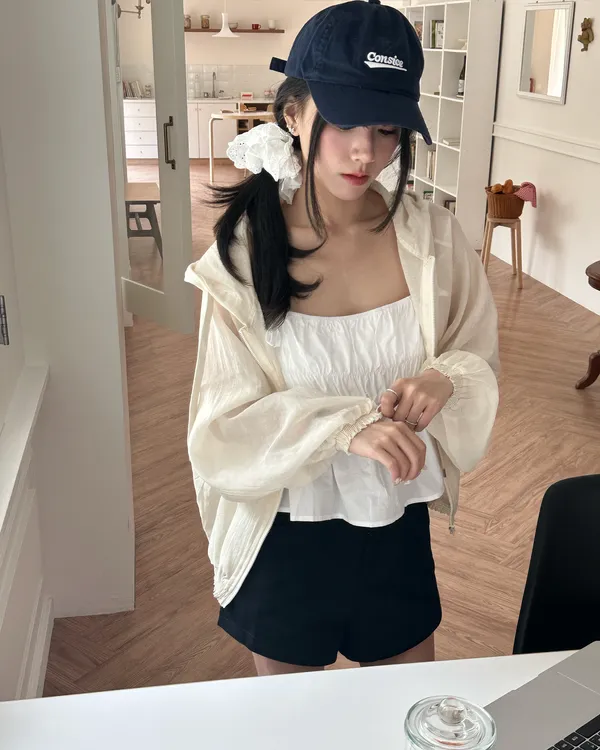 Model Size - F / 158cm, 42kg.- Airy layer- Sun cover hoodie- Lightweight & breathable