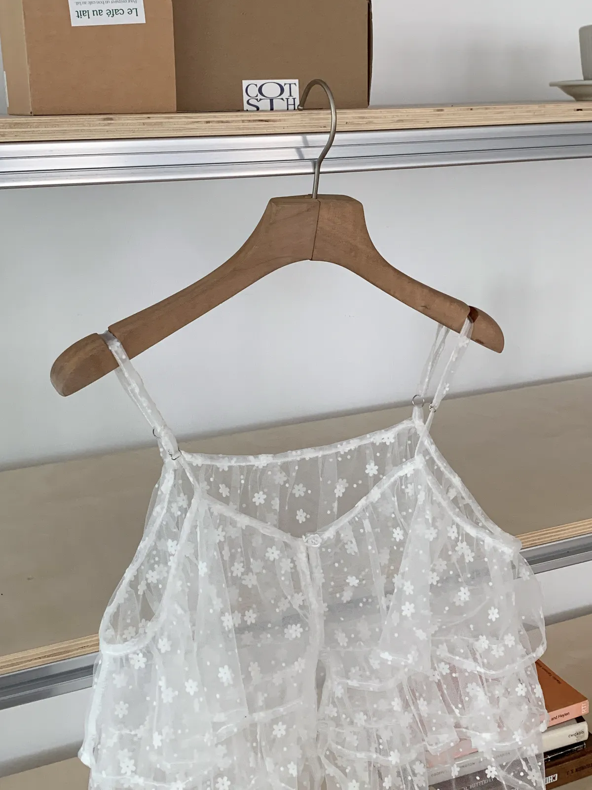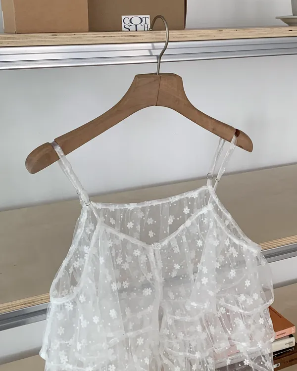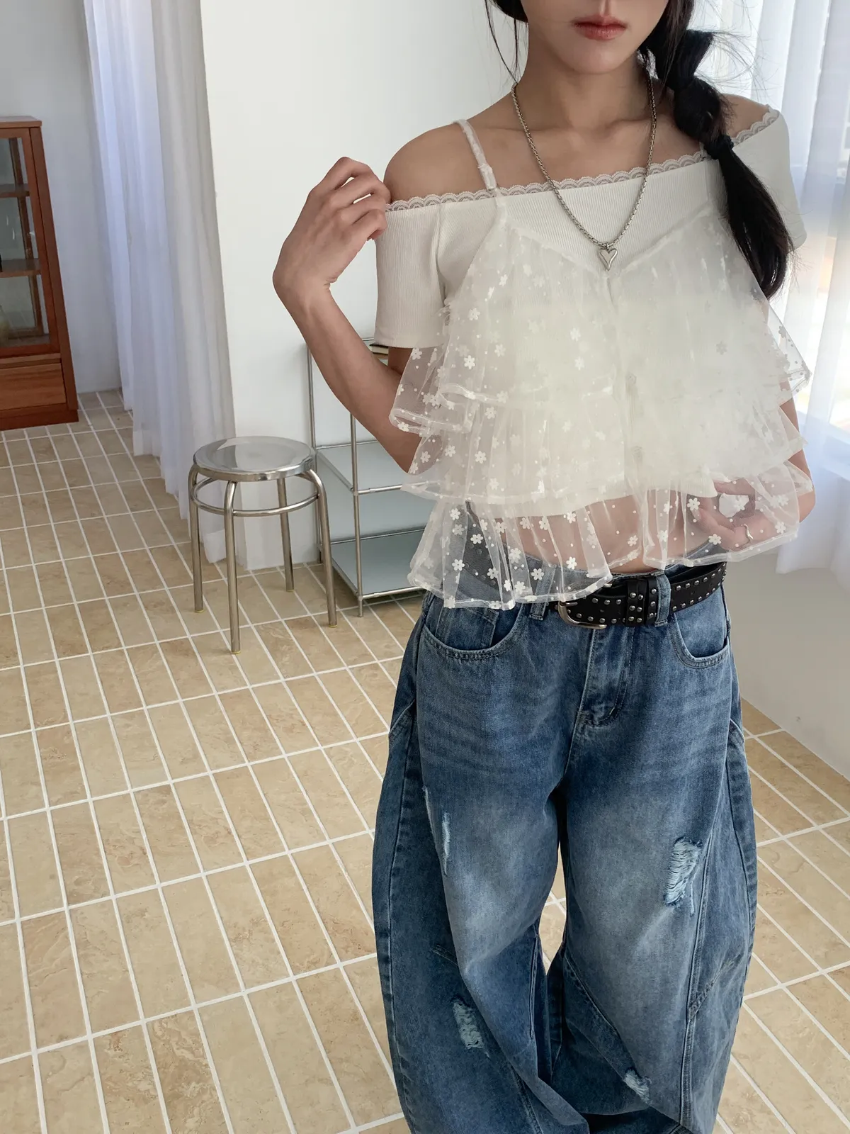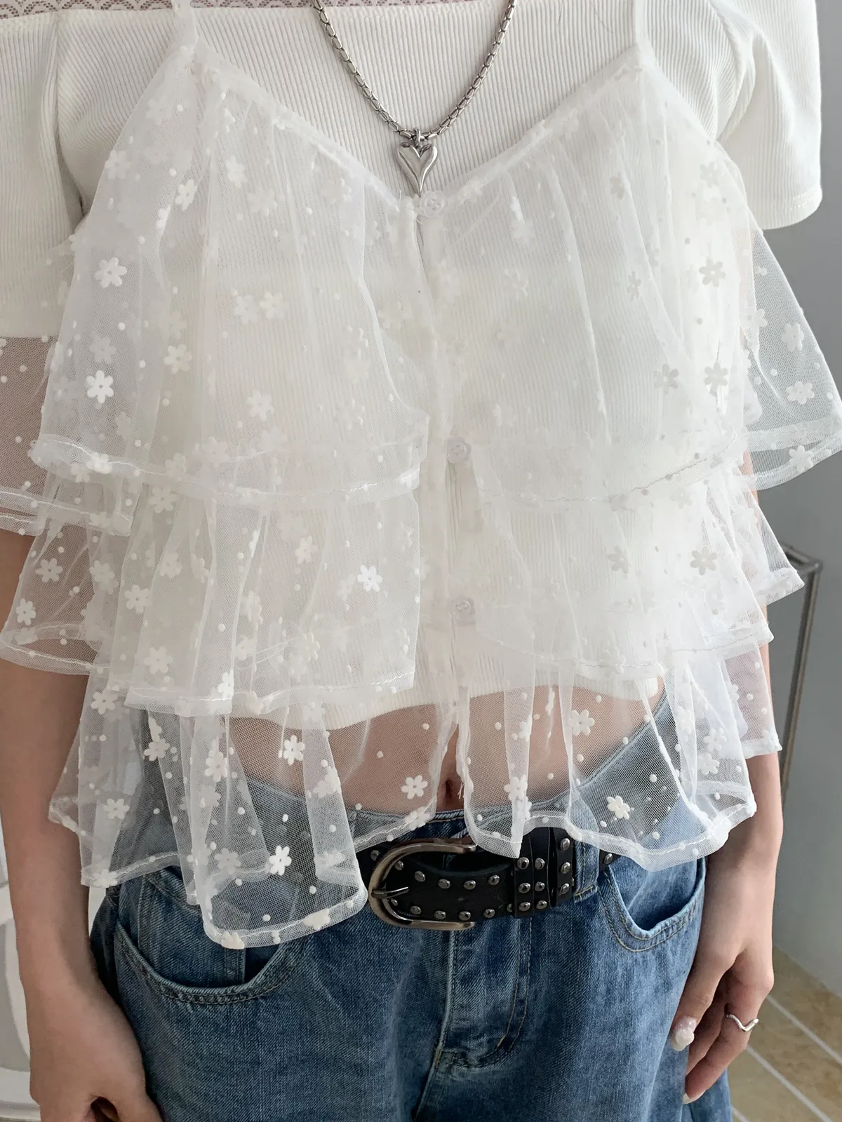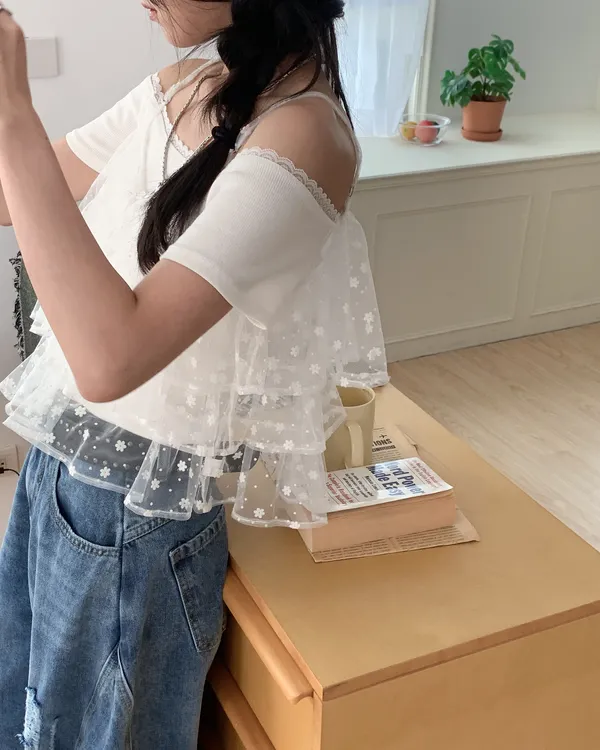 Model Size - F / 158cm, 42kg.- Sheer meah- Layered tulle- Floral lace