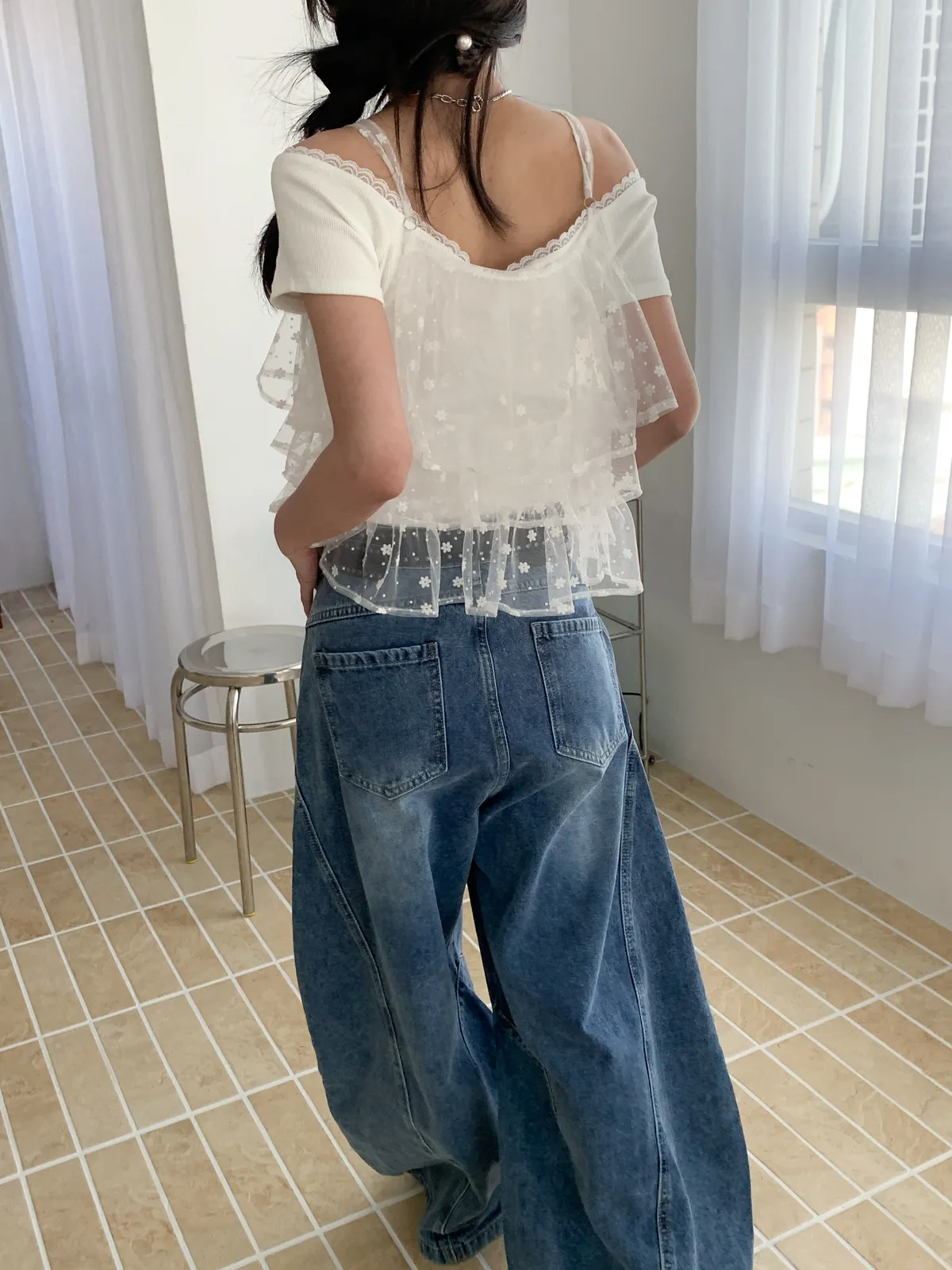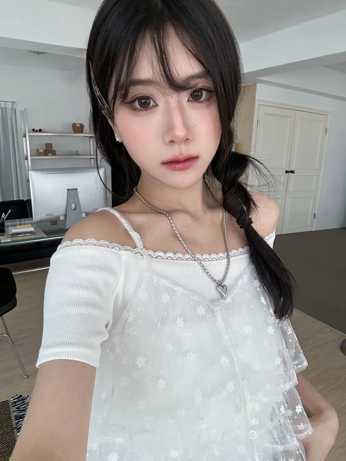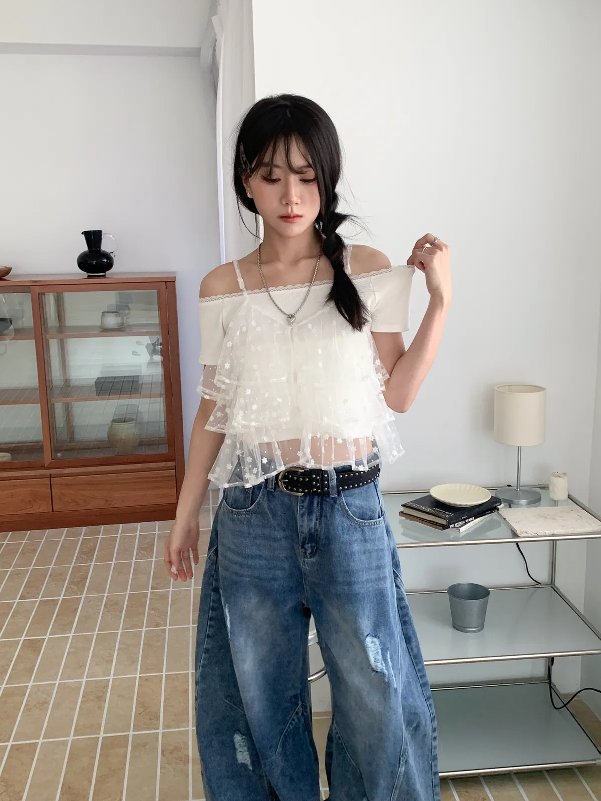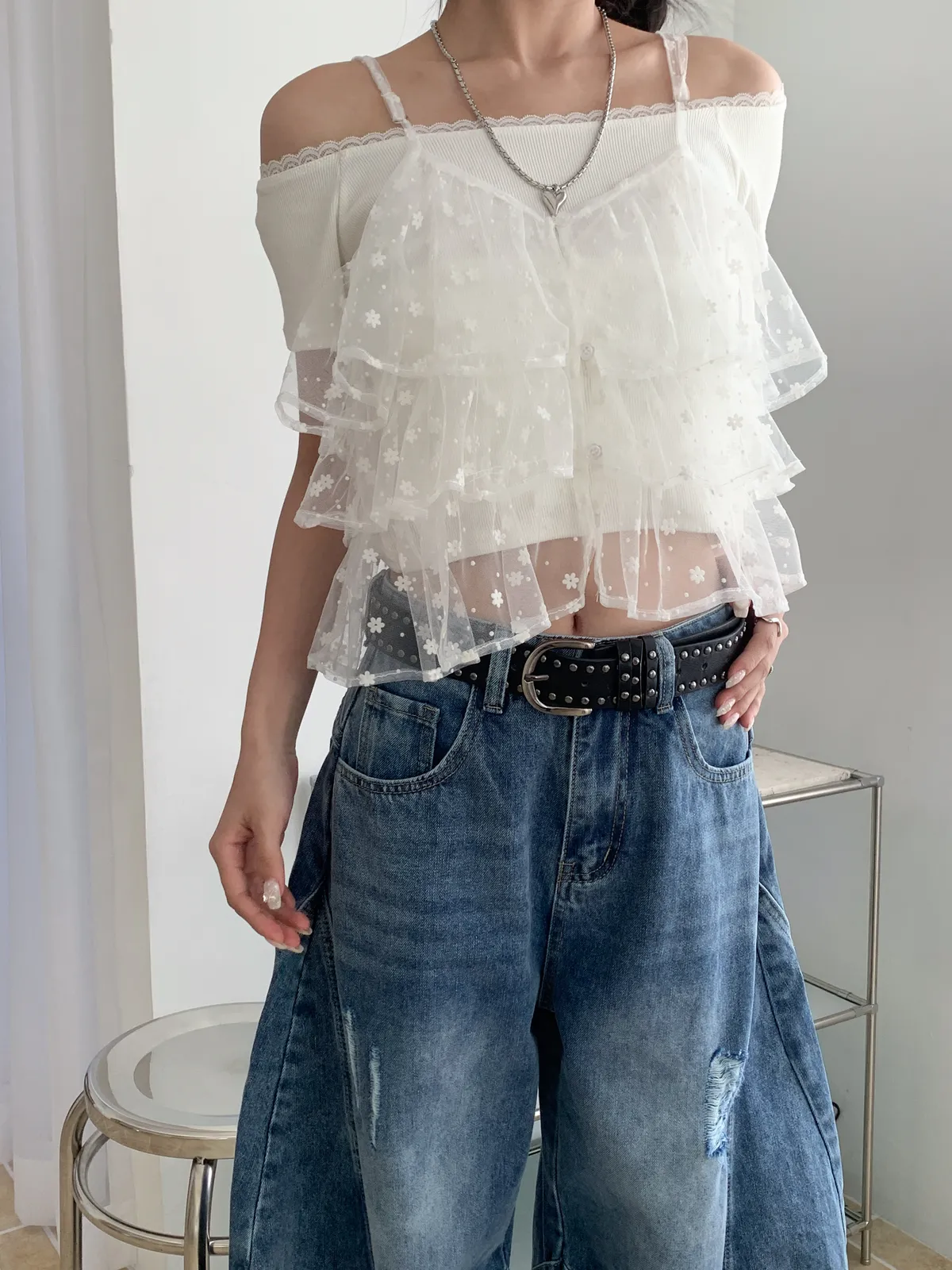 Model Size - F / 158cm, 42kg.- Sheer meah- Layered tulle- Floral lace