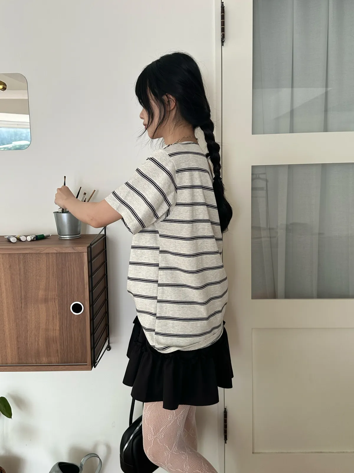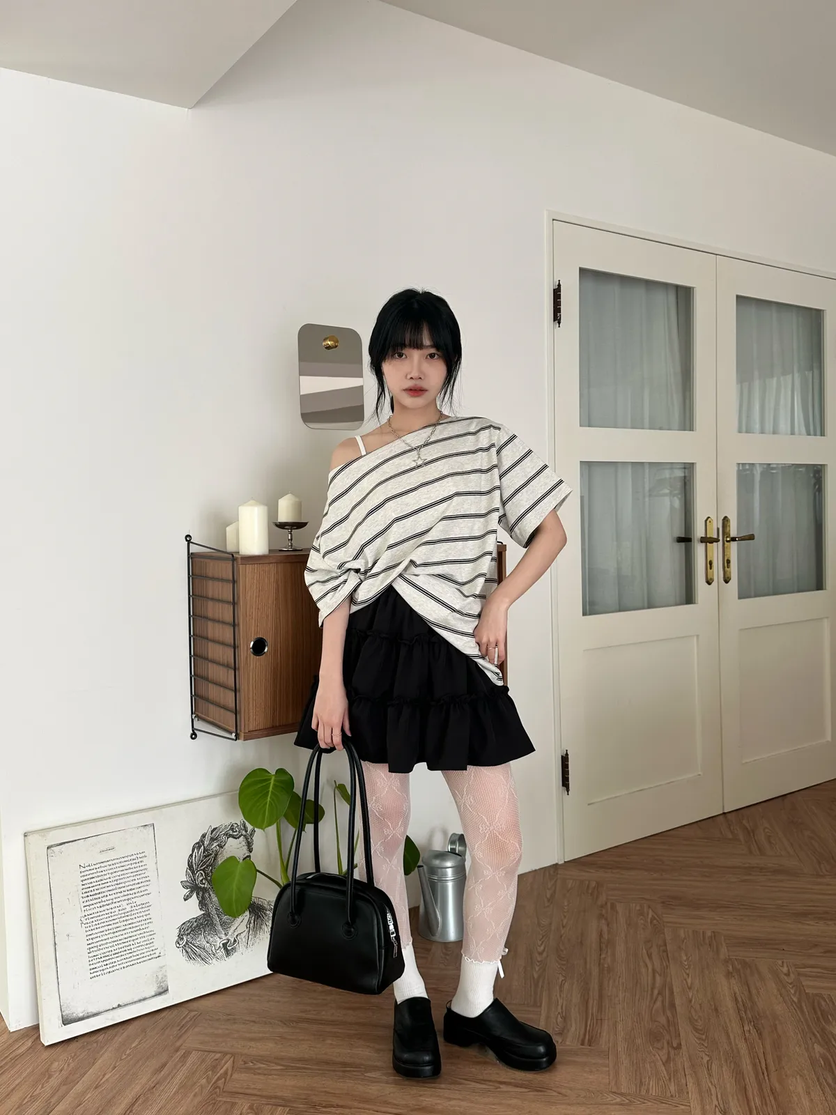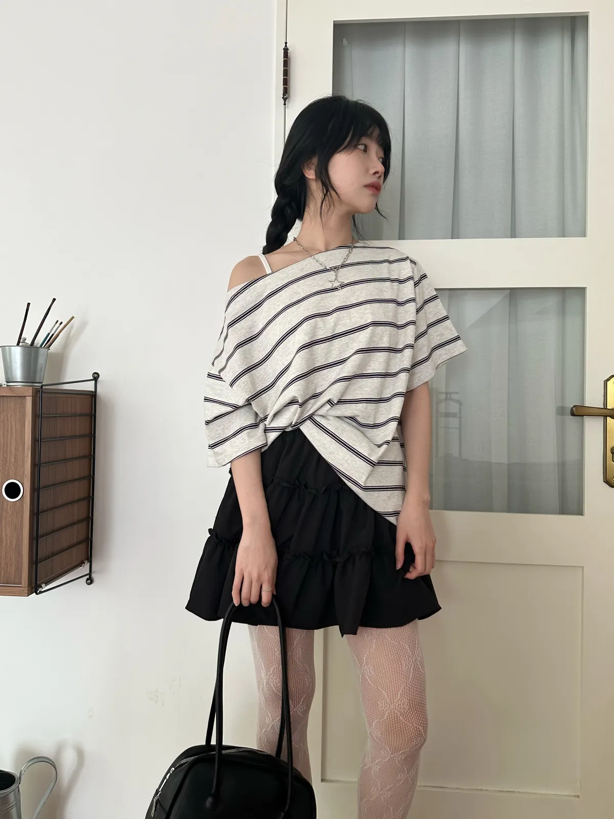 Peachy 斜肩條紋T-3col
