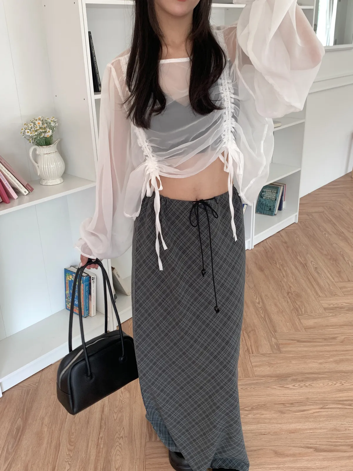 Model Size - F / 158cm, 42kg.- 2way wear- Dressable skirt- Elastic waistband