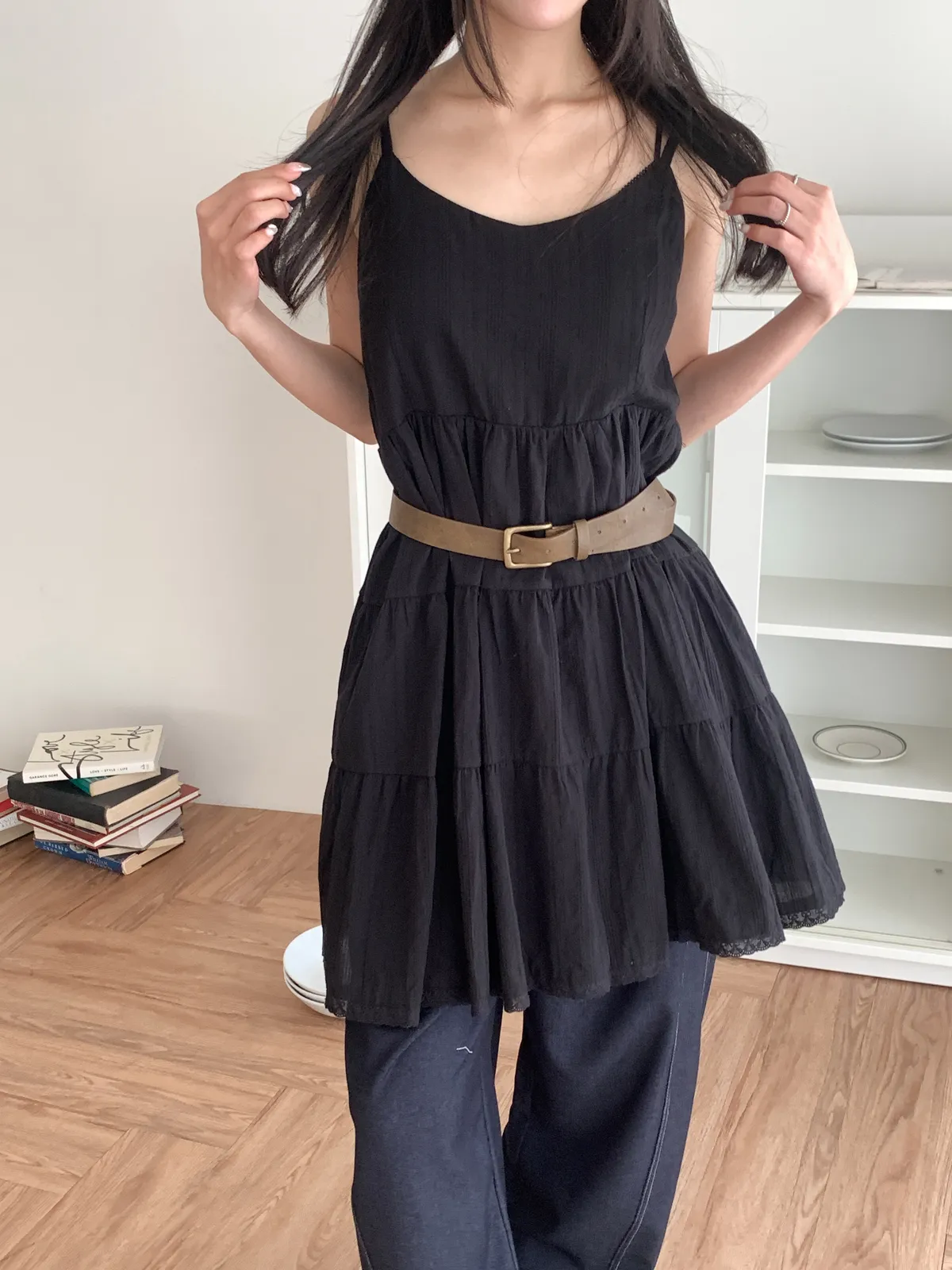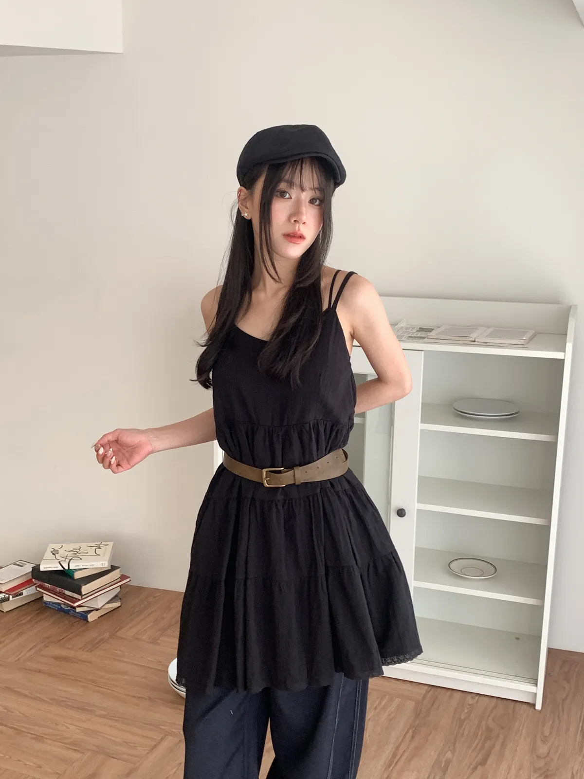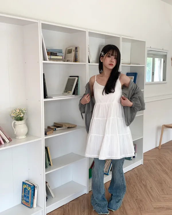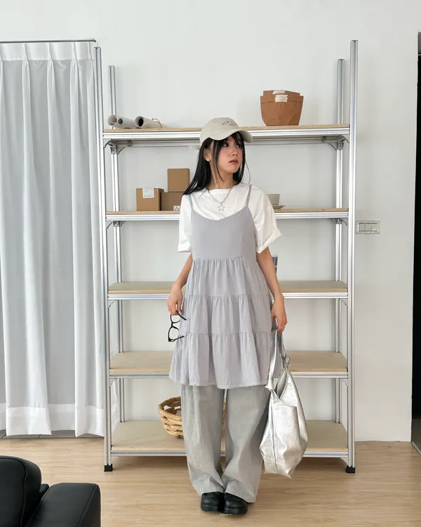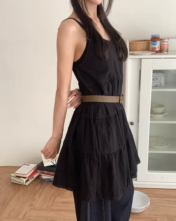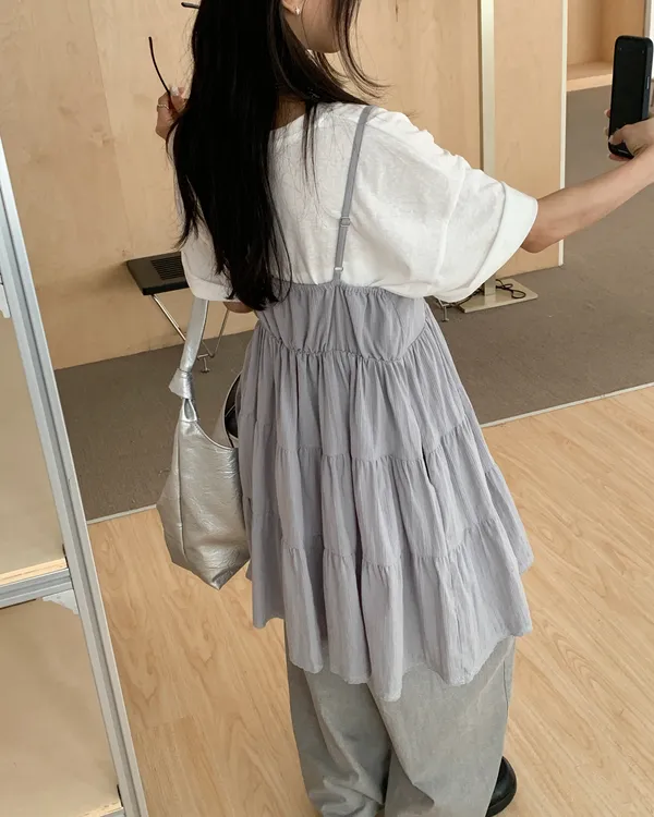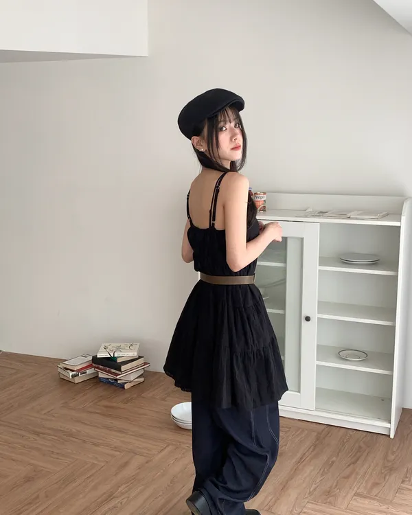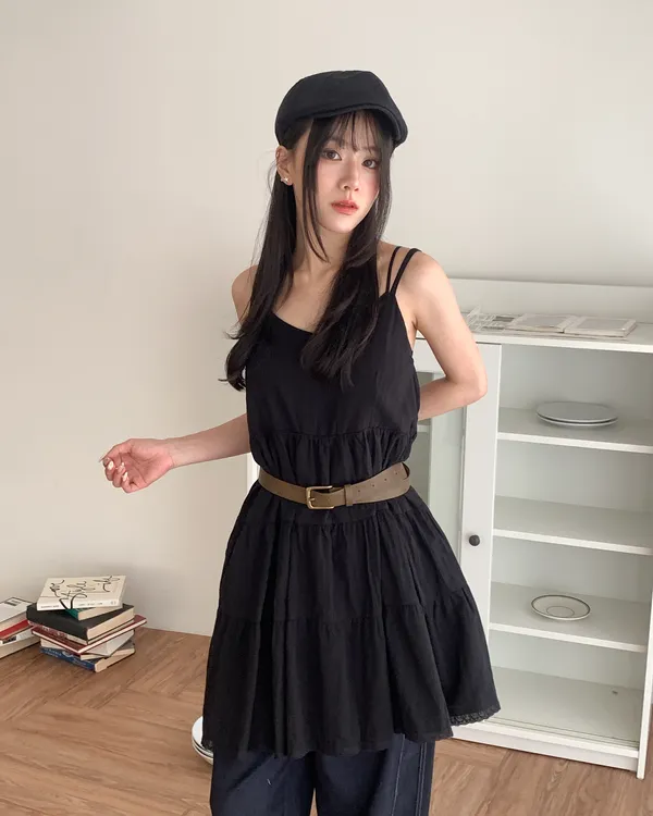 Model Size - S / 158cm, 42kg.- Cotton texture - Layered shape- Camisole styling