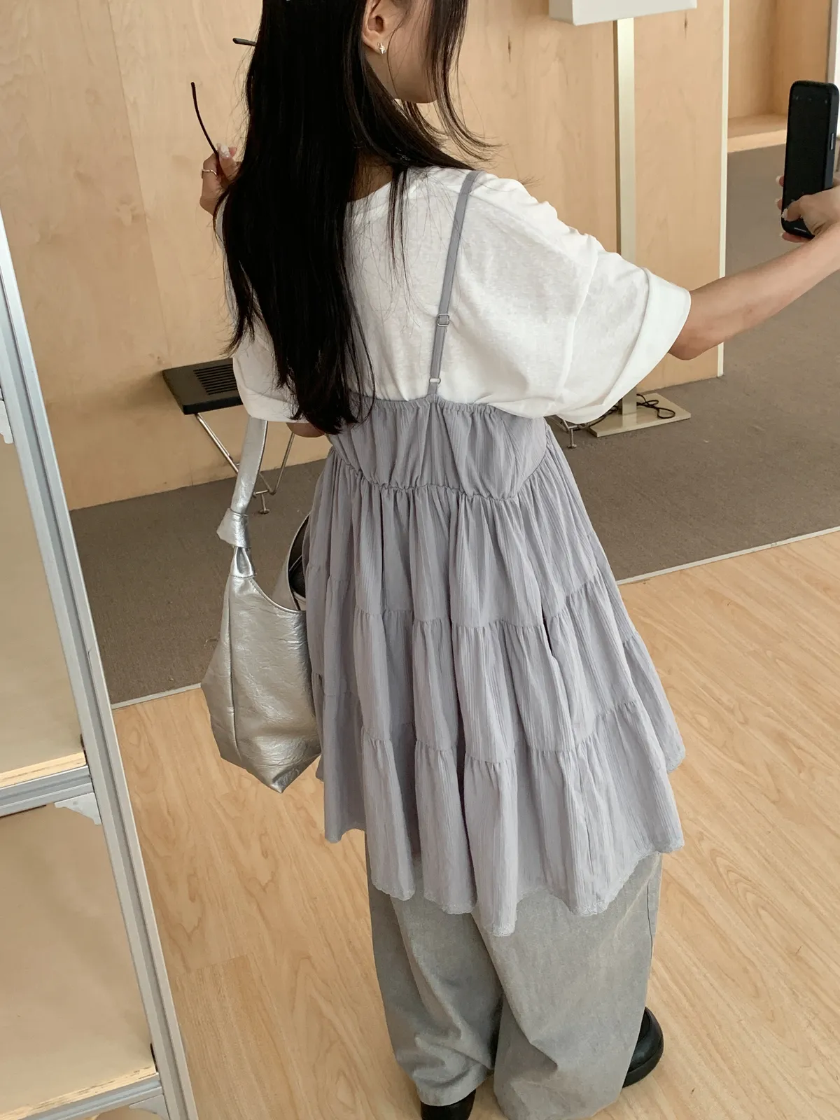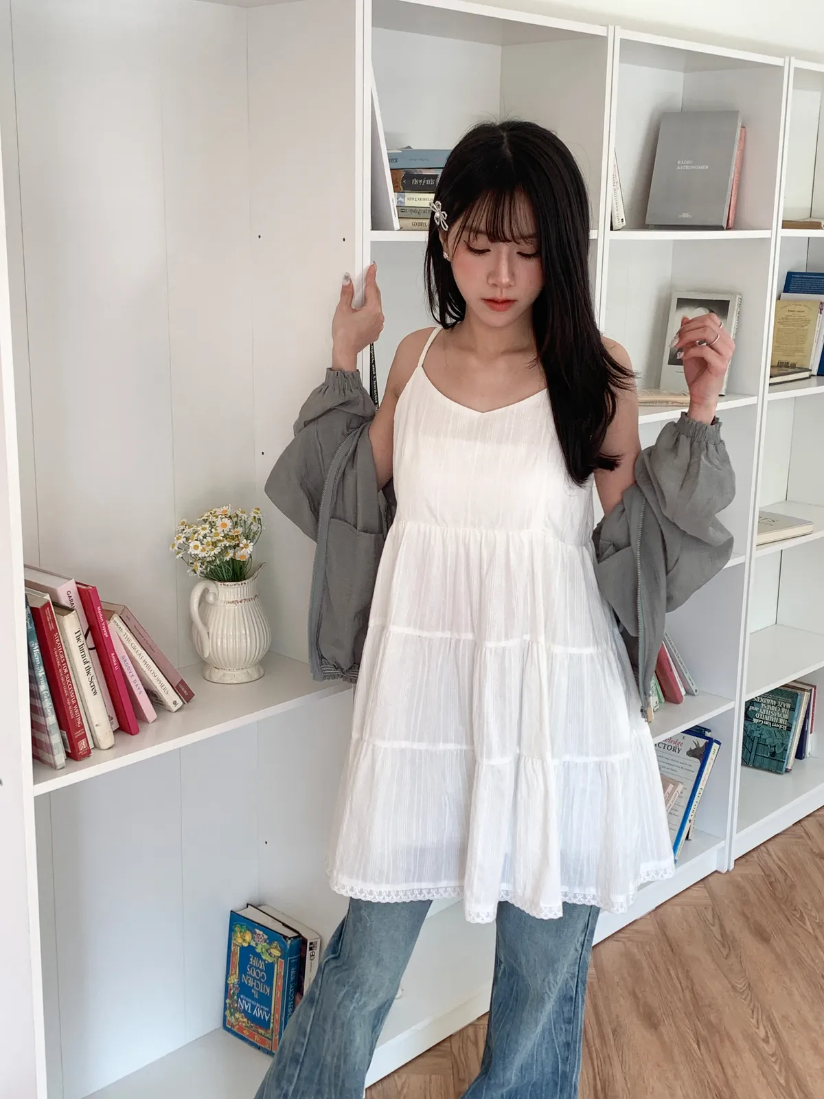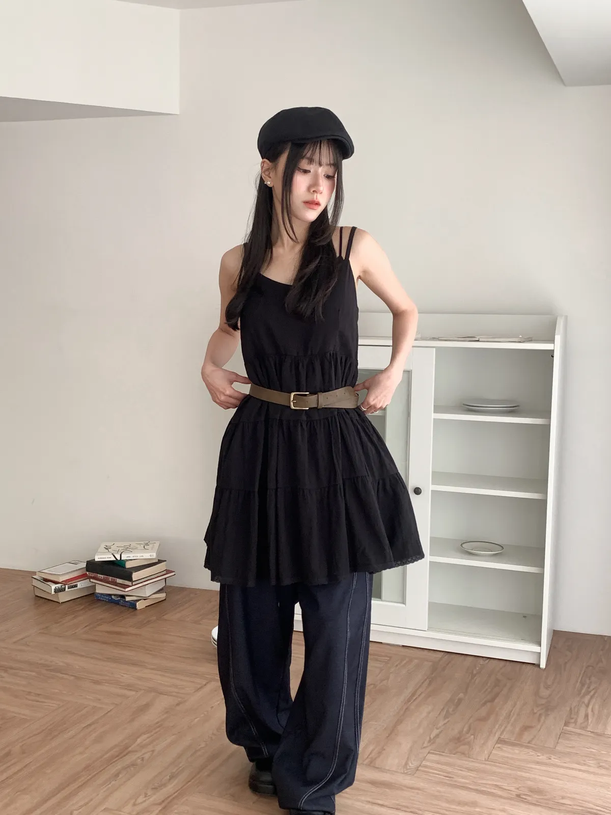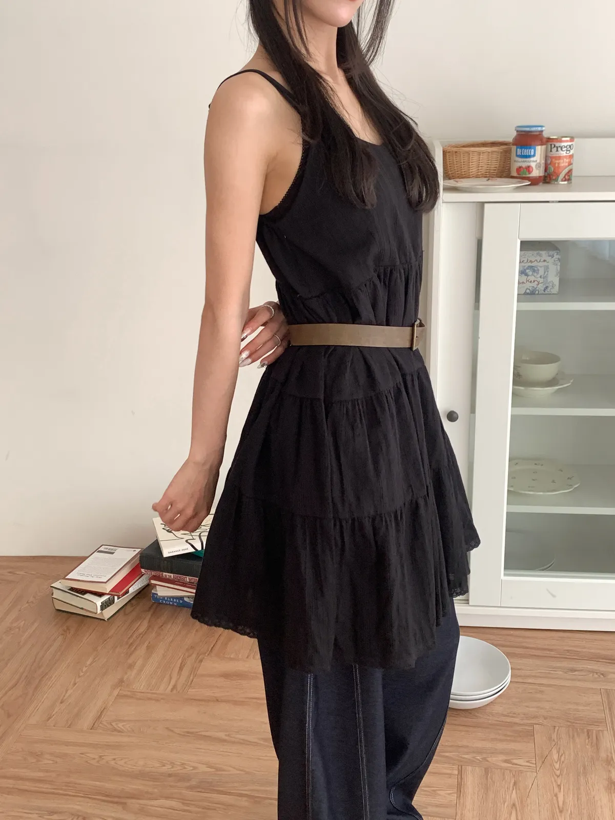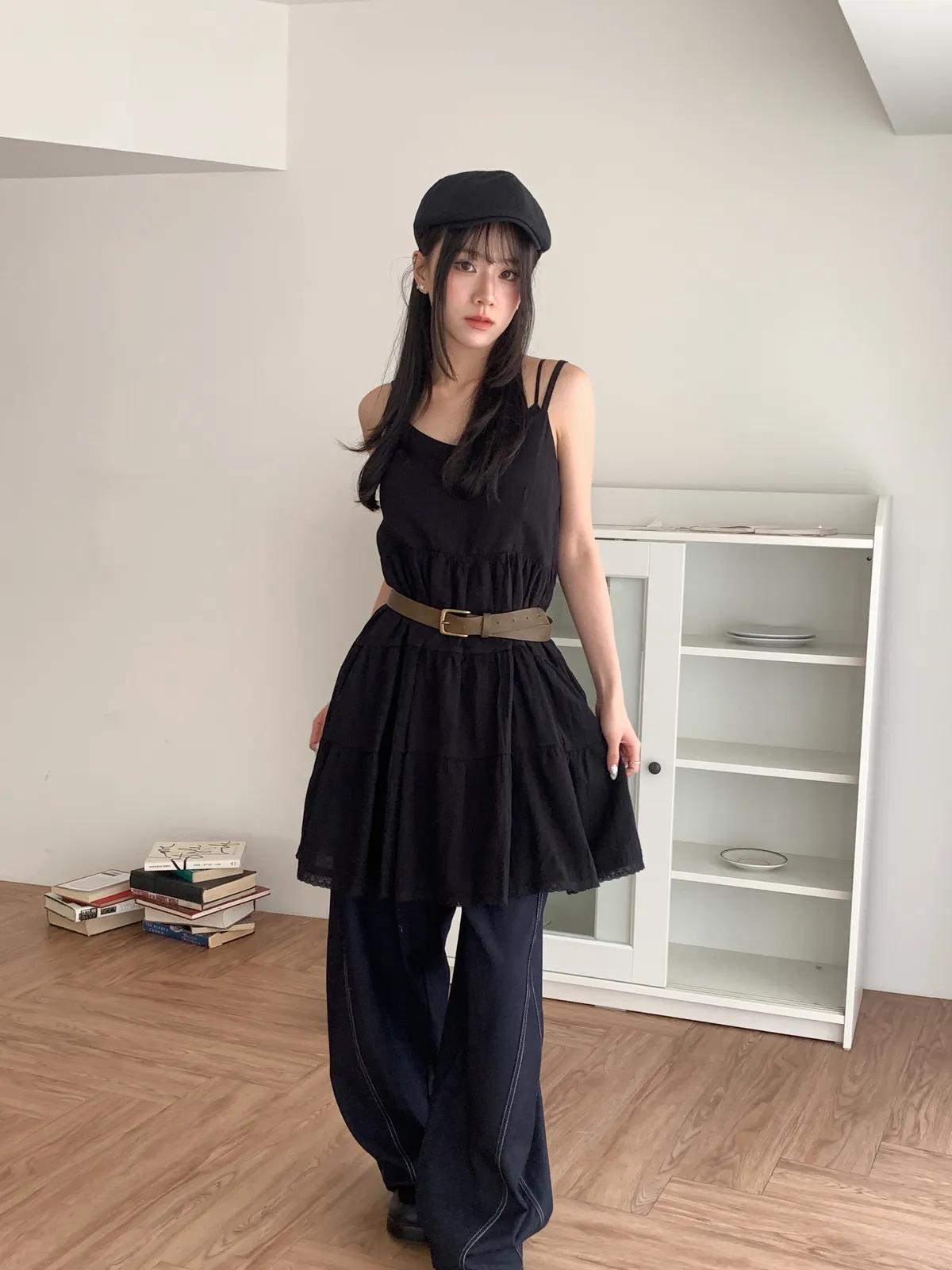 Model Size - S / 158cm, 42kg.- Cotton texture - Layered shape- Camisole styling