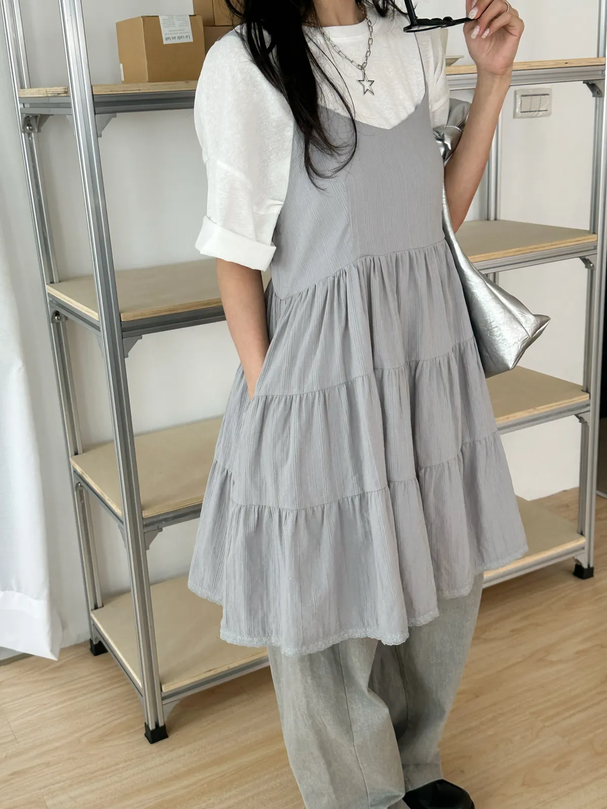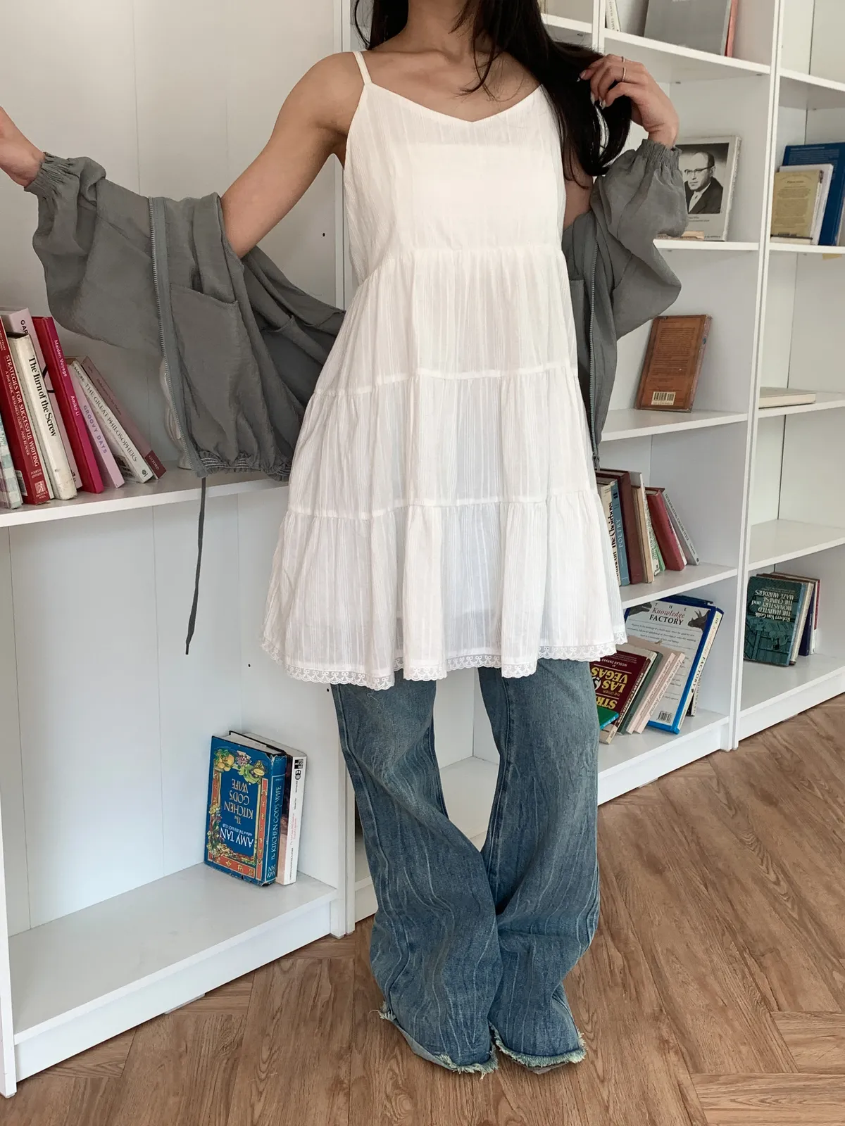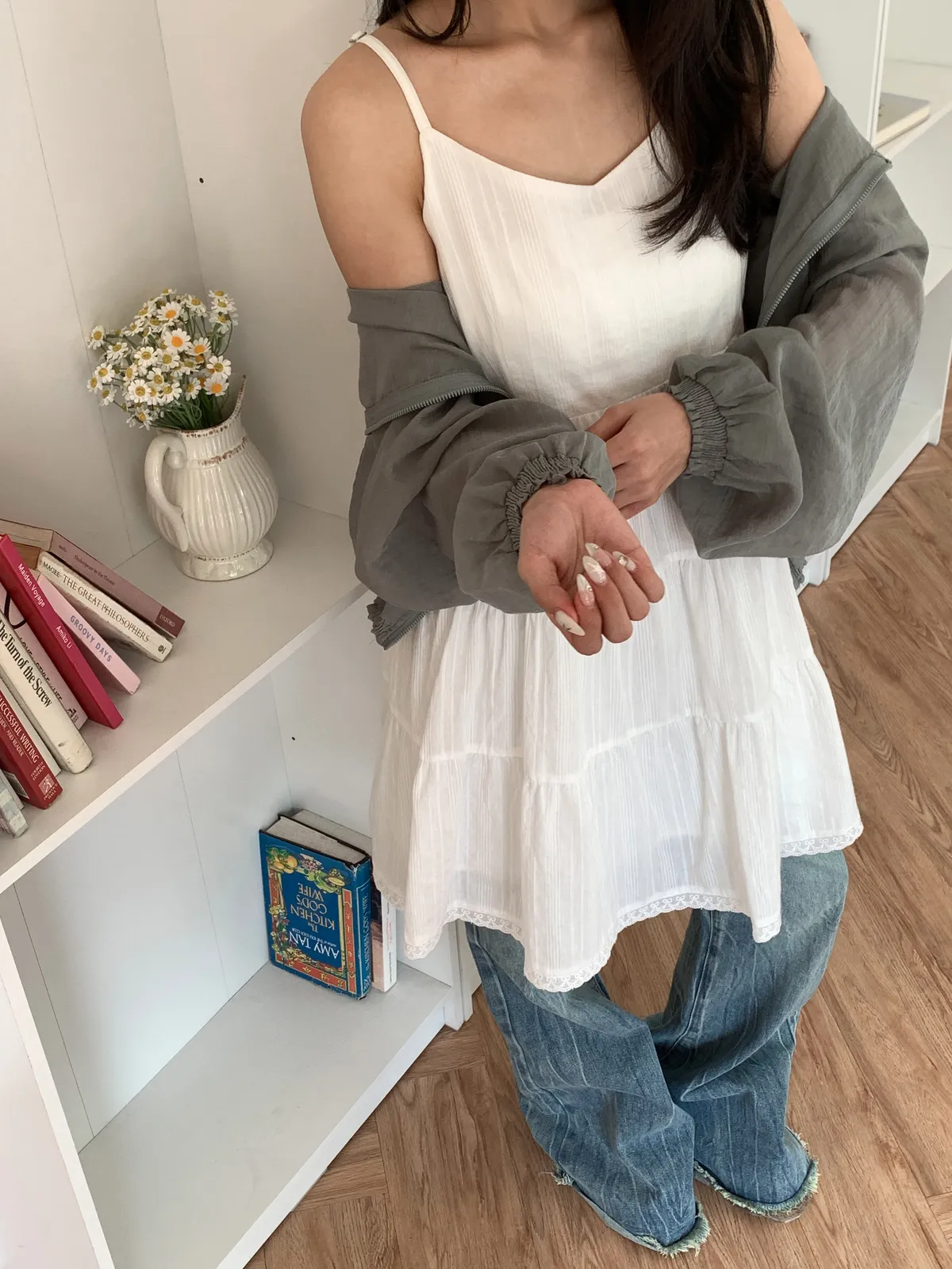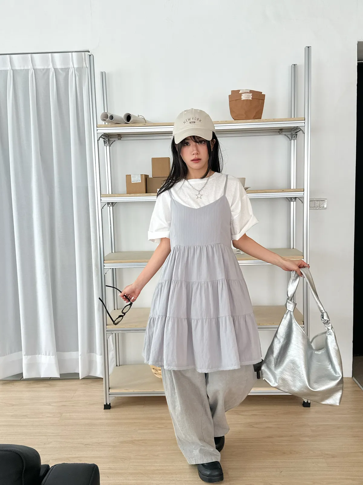 Model Size - S / 158cm, 42kg.- Cotton texture - Layered shape- Camisole styling