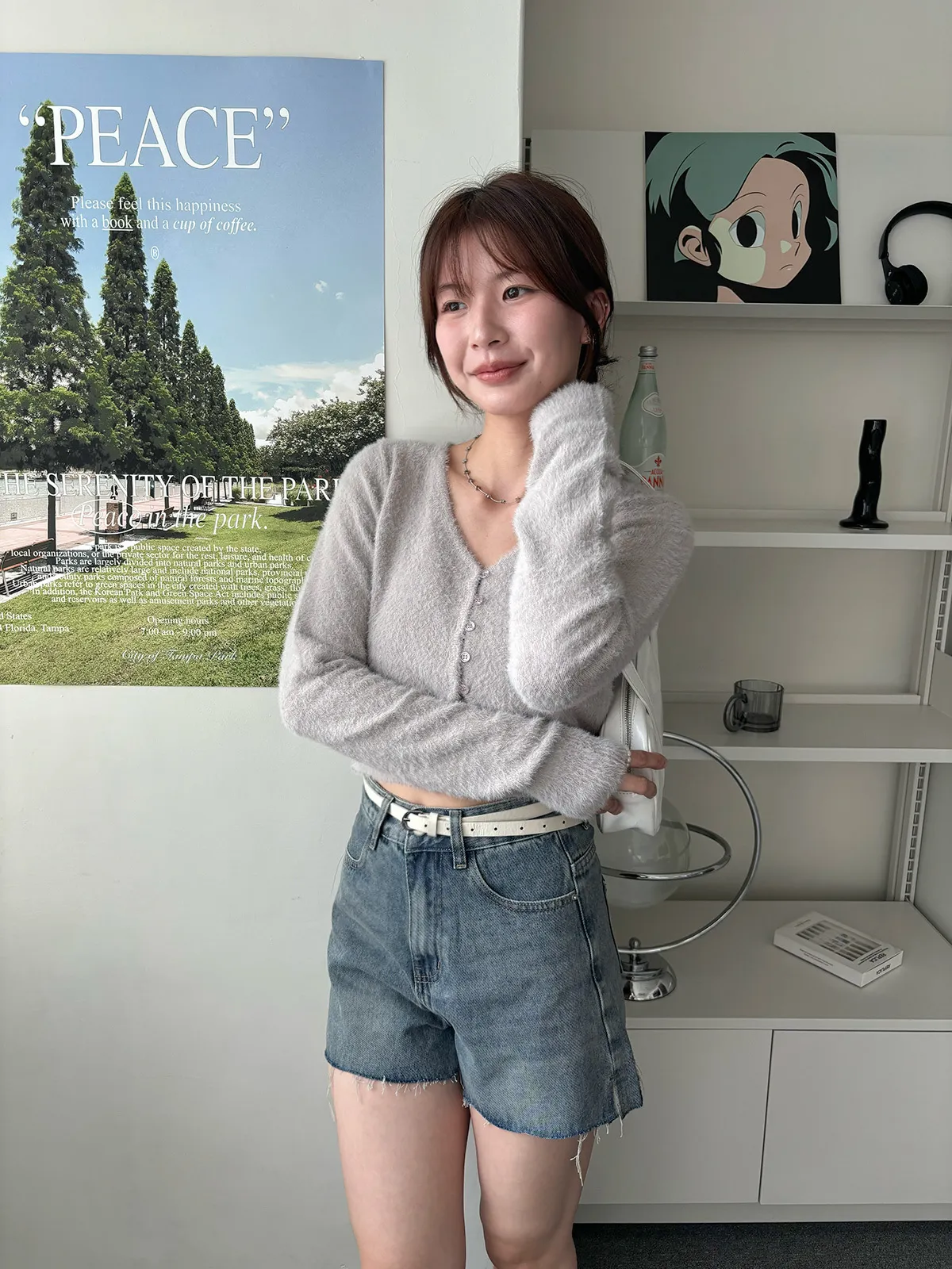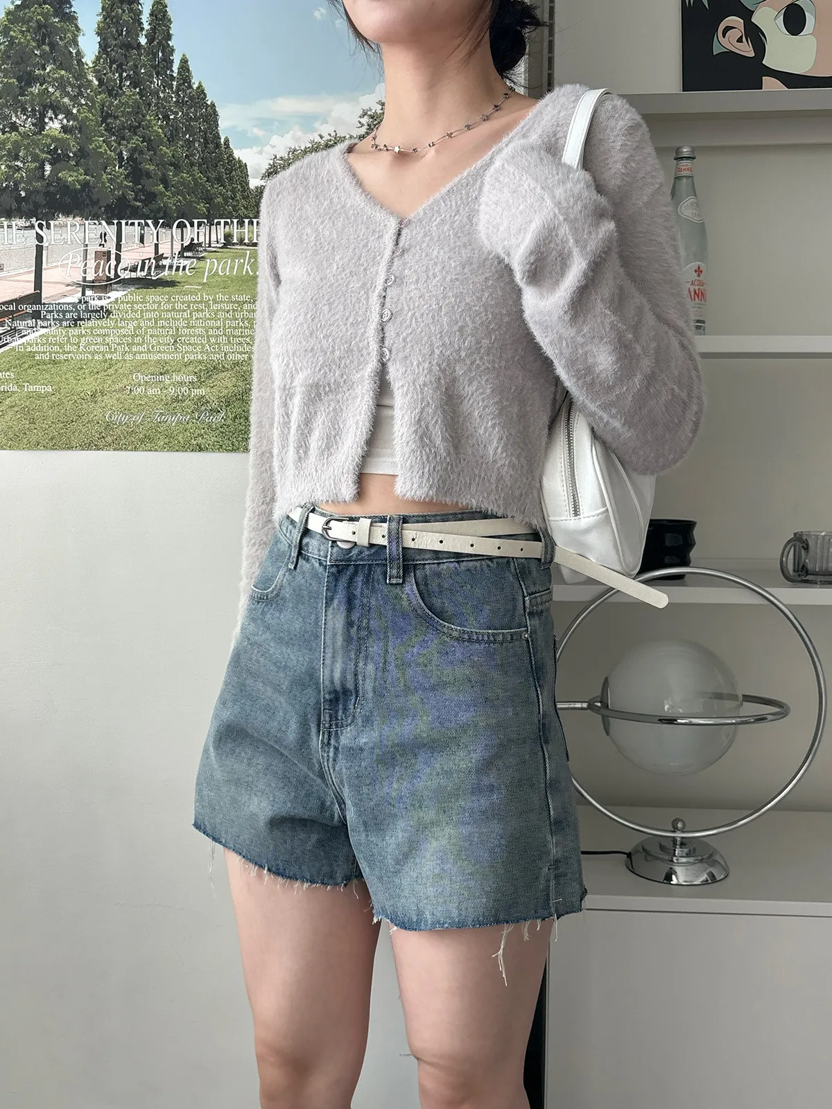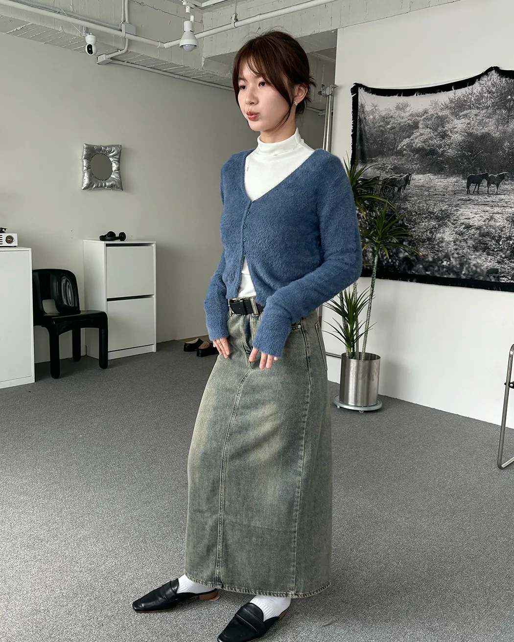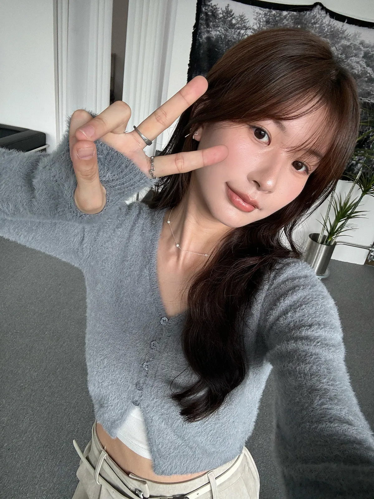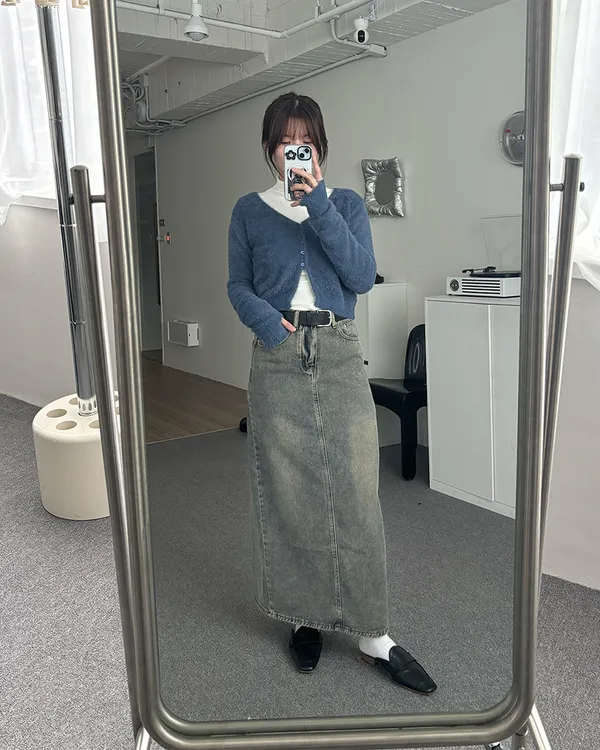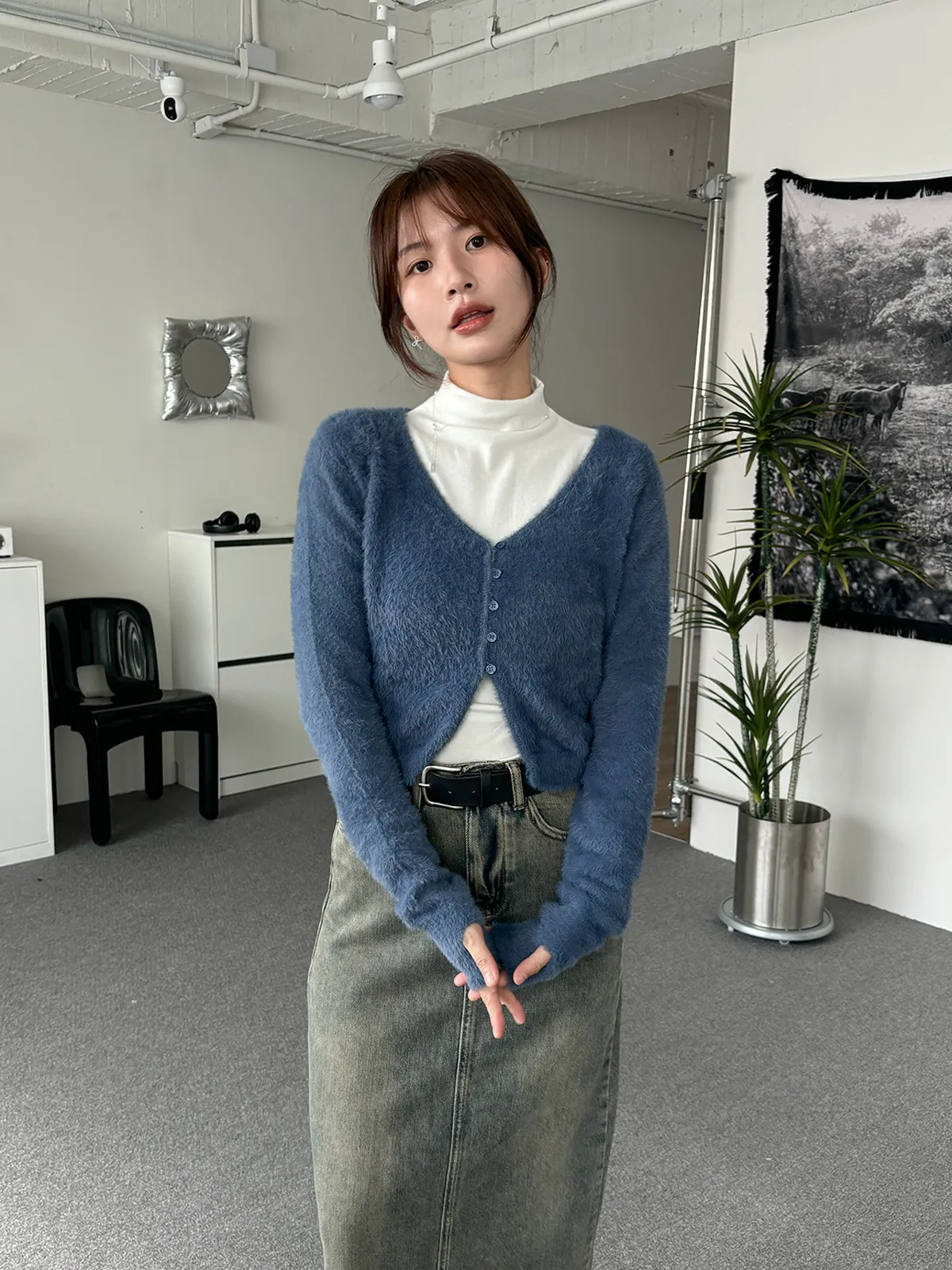 軟軟水貂毛V領排釦上衣(5col)