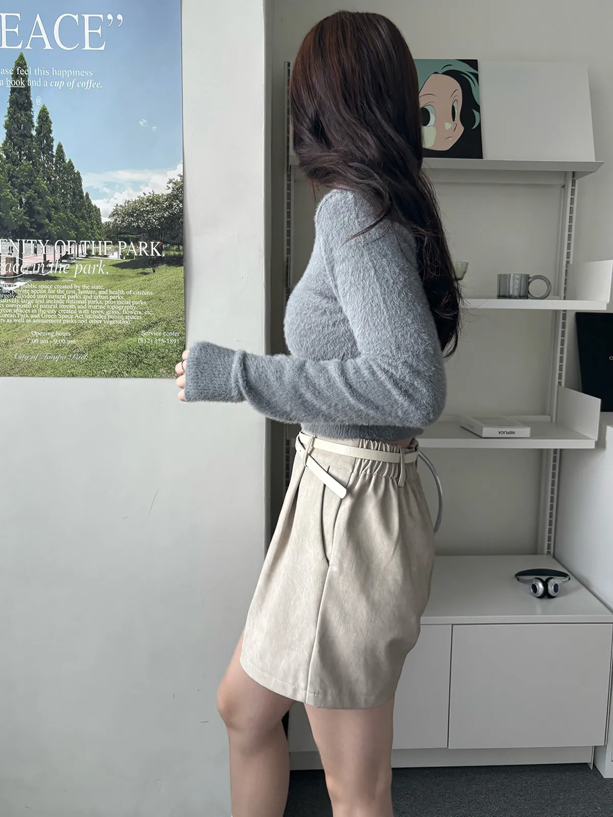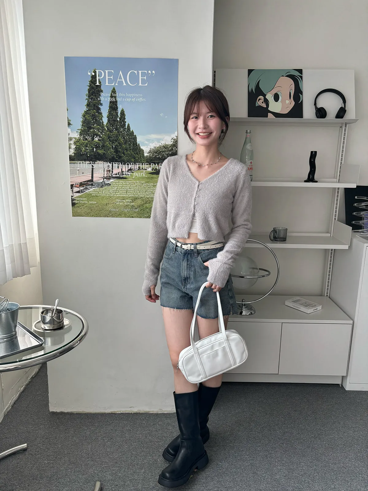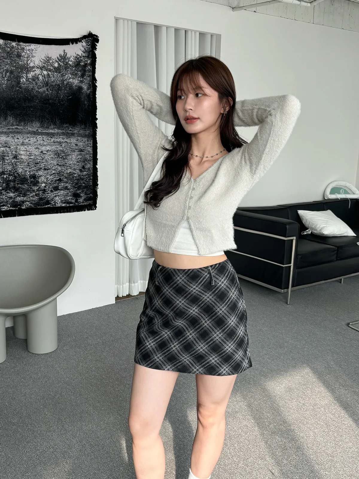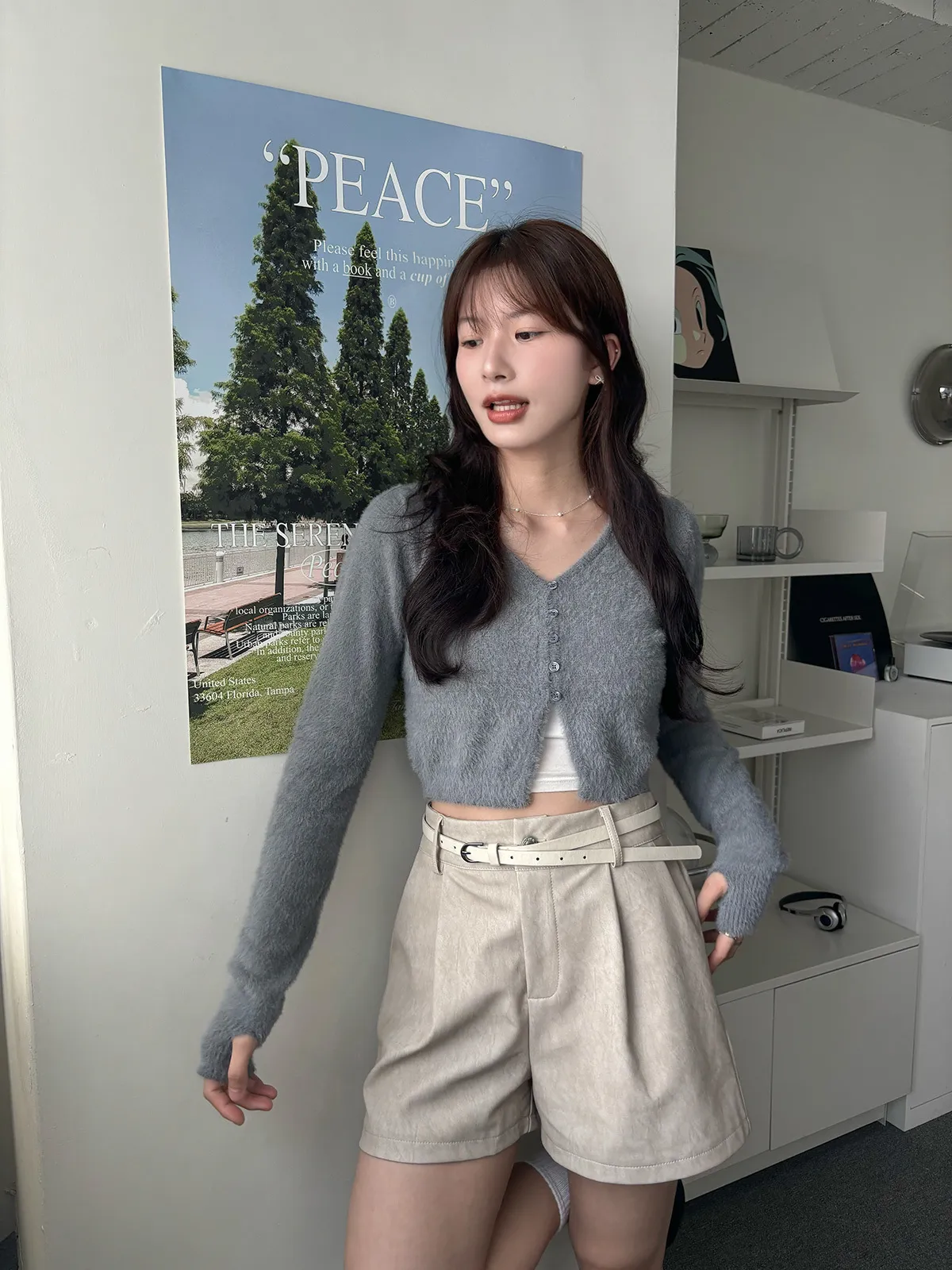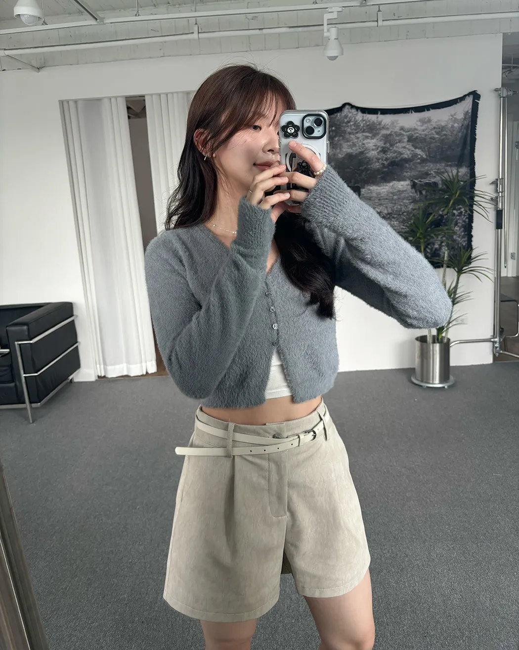 軟軟水貂毛V領排釦上衣(5col)