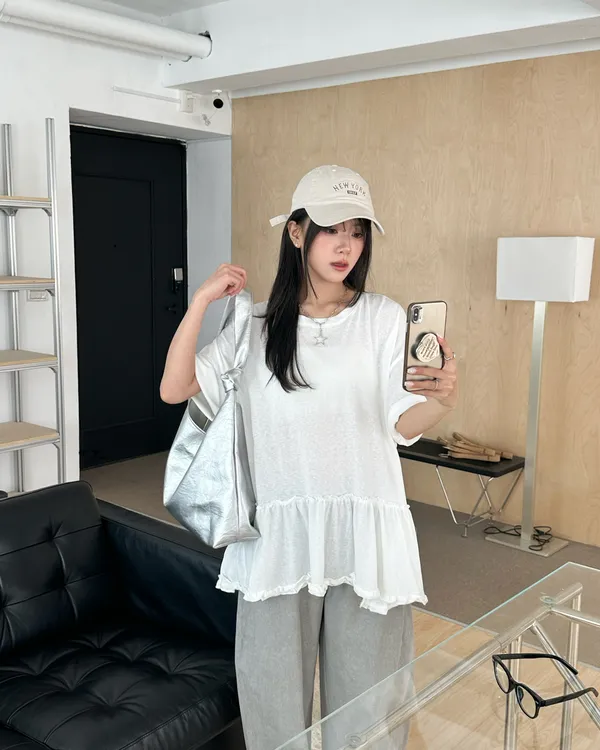 Model Size - F / 158cm, 42kg.- Oversized top- Soft-touch cotton- Shirt-hem detail