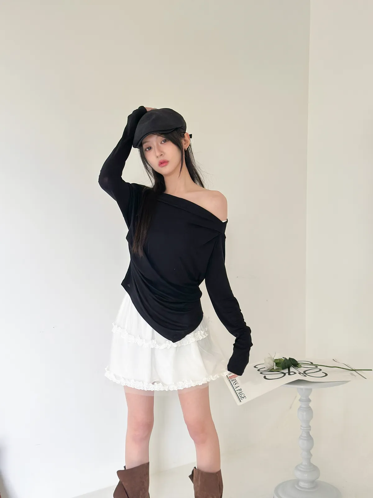[MD PICK♡] 平口/斜肩皺皺上衣-3col