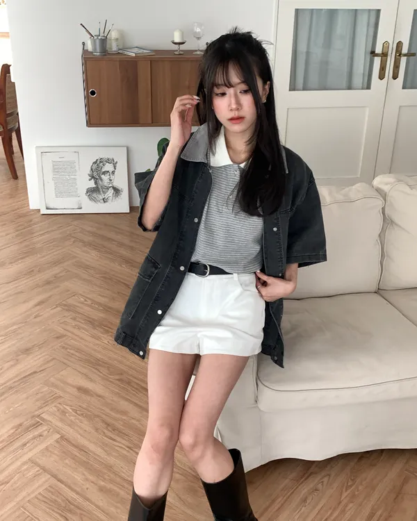 今日帥氣度1000ˊ˖ ࣪⊹撞色牛仔襯衫-3col