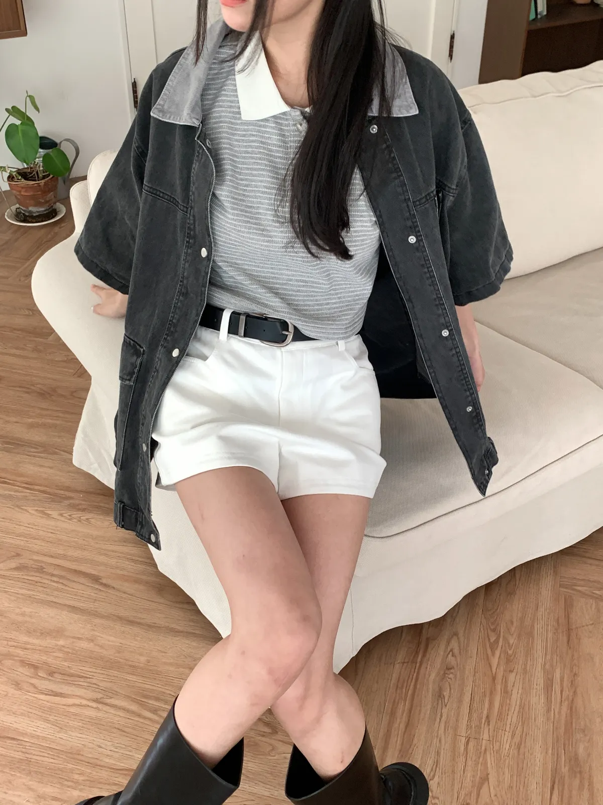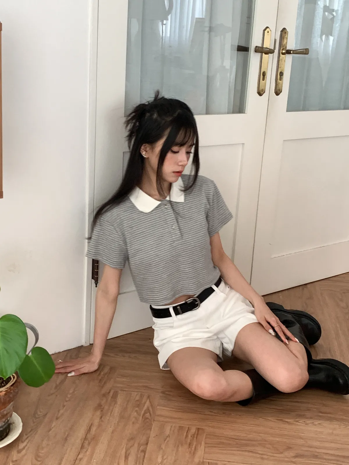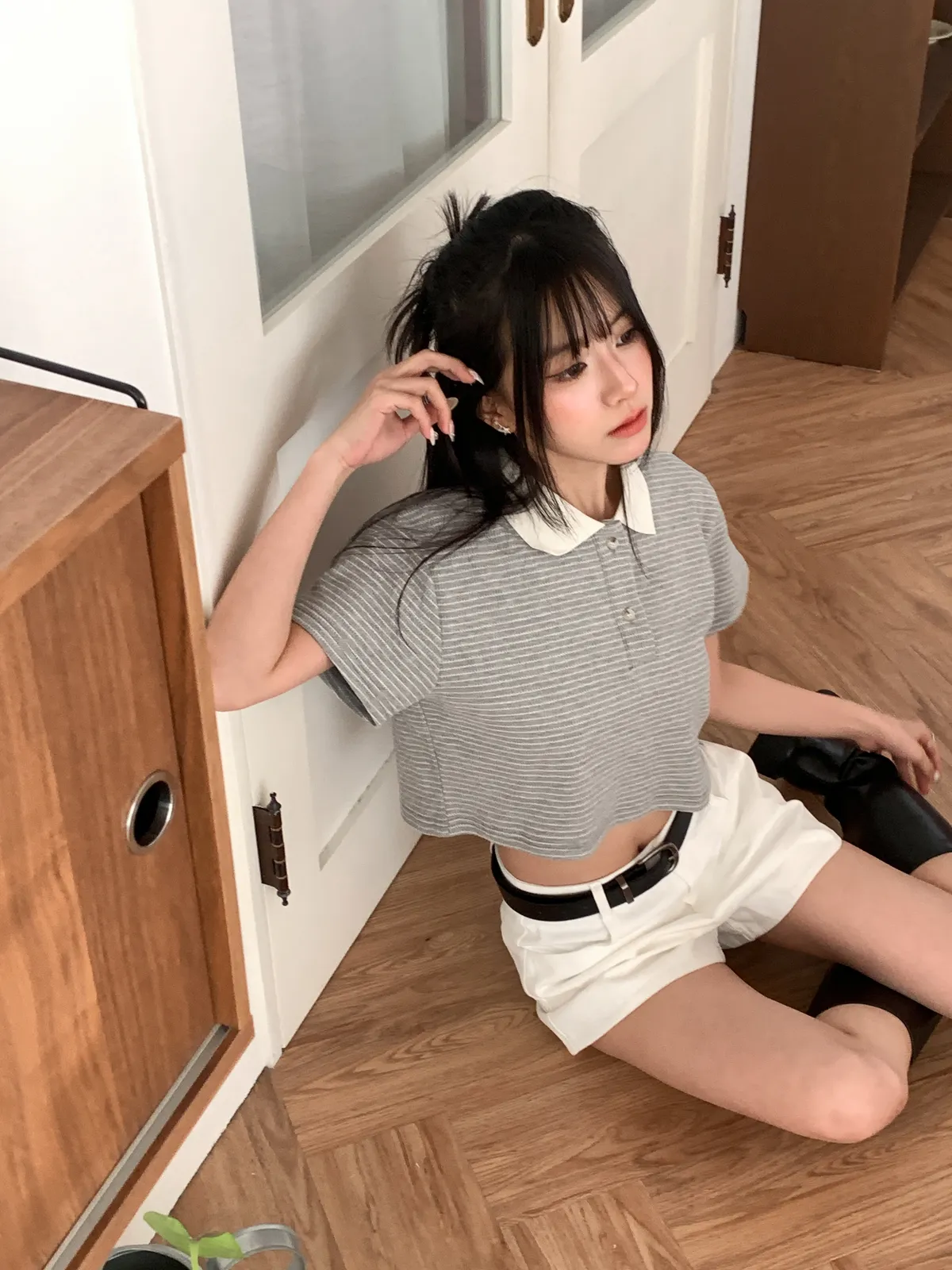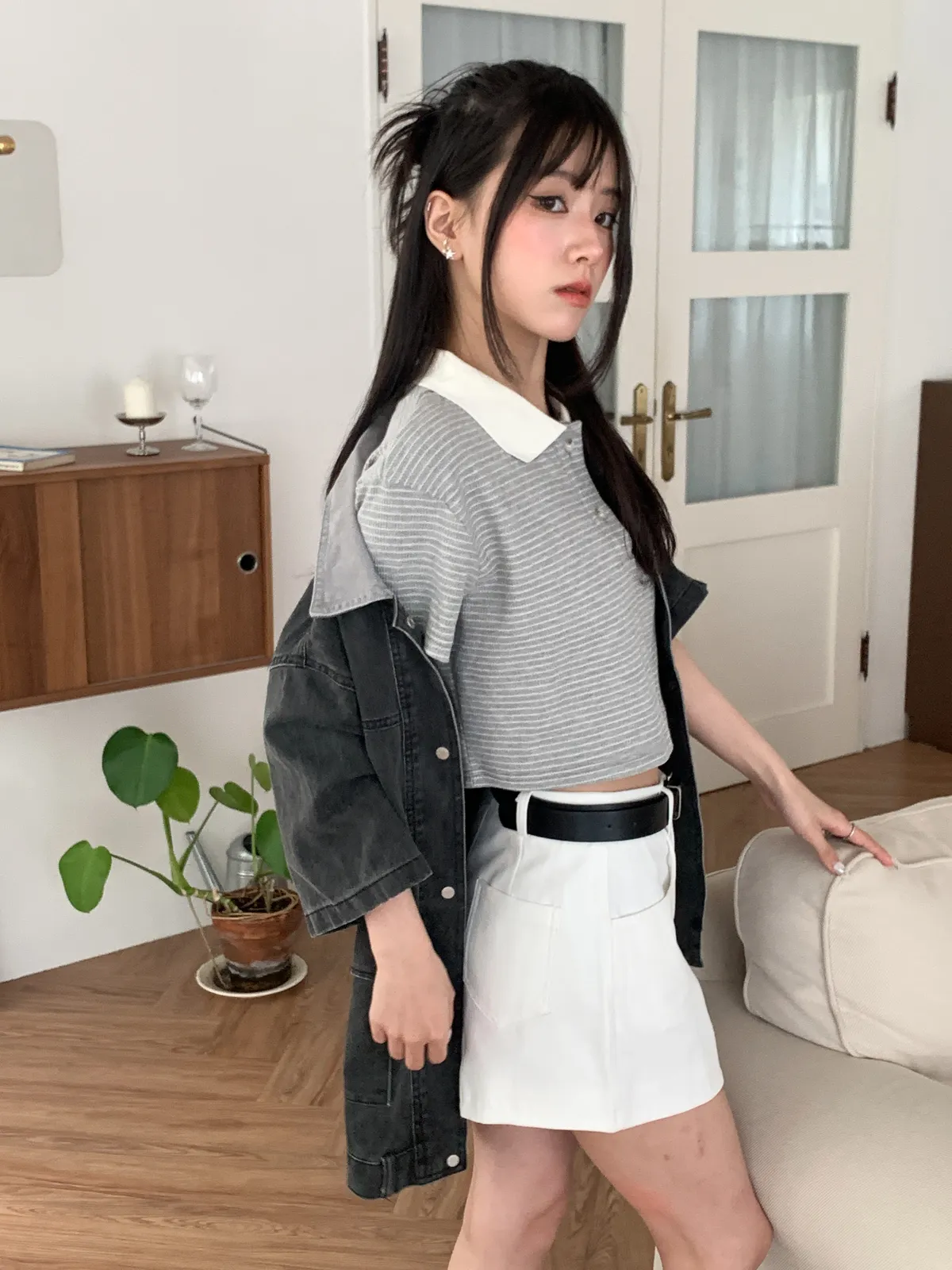 全員好感♡ 翻領條紋短上衣-4col