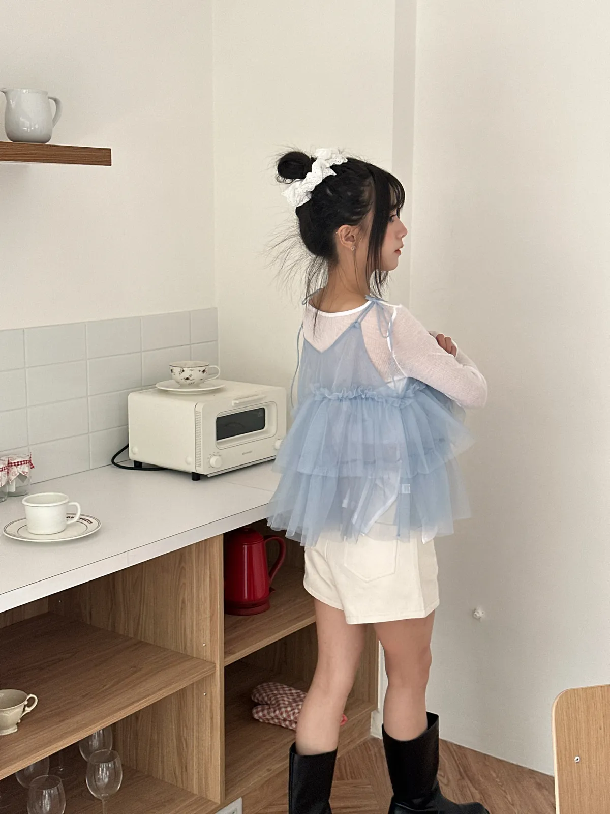 (滾蕾絲邊)Everyday wear 平口短版上衣-3col