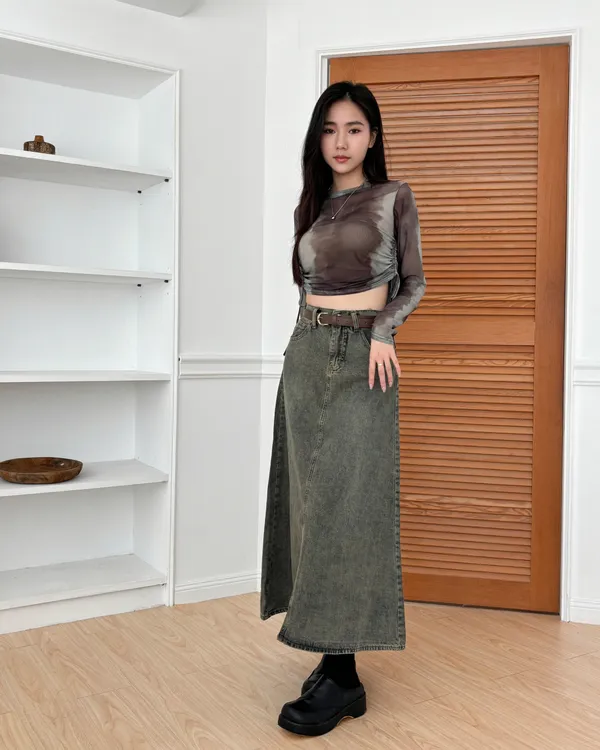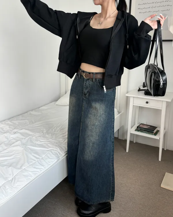梨形必收再+1 復古牛仔長裙(2col)