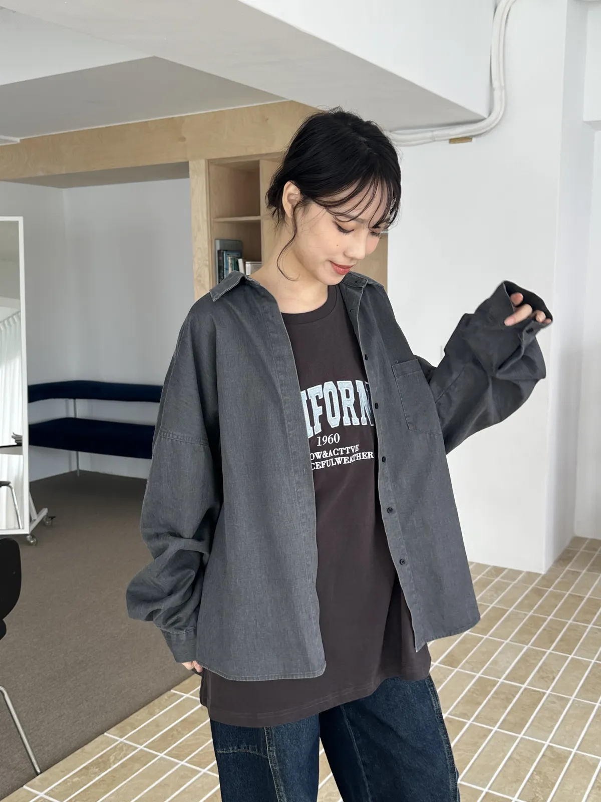 Oversize霧絨襯衫(3col)