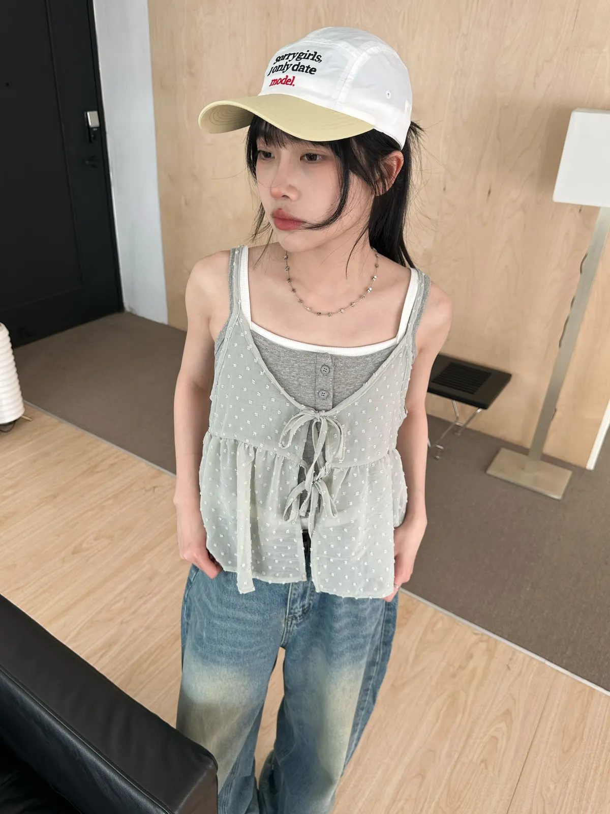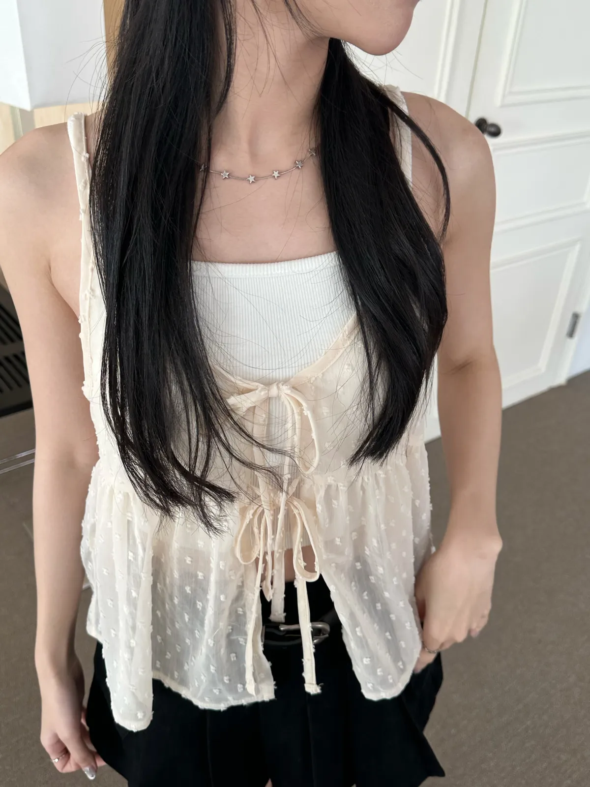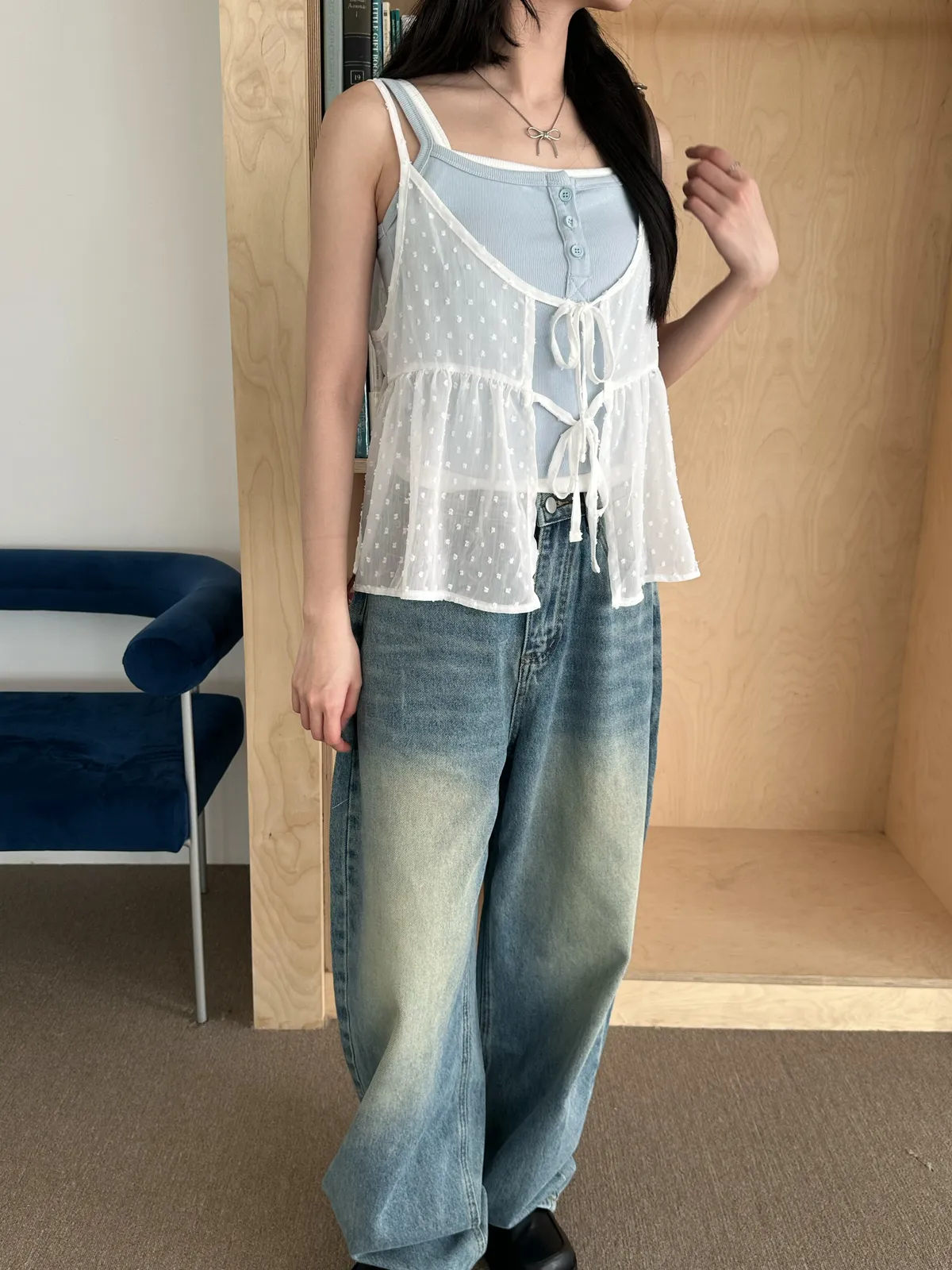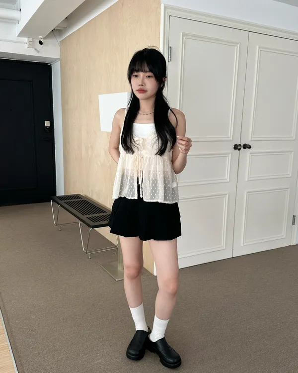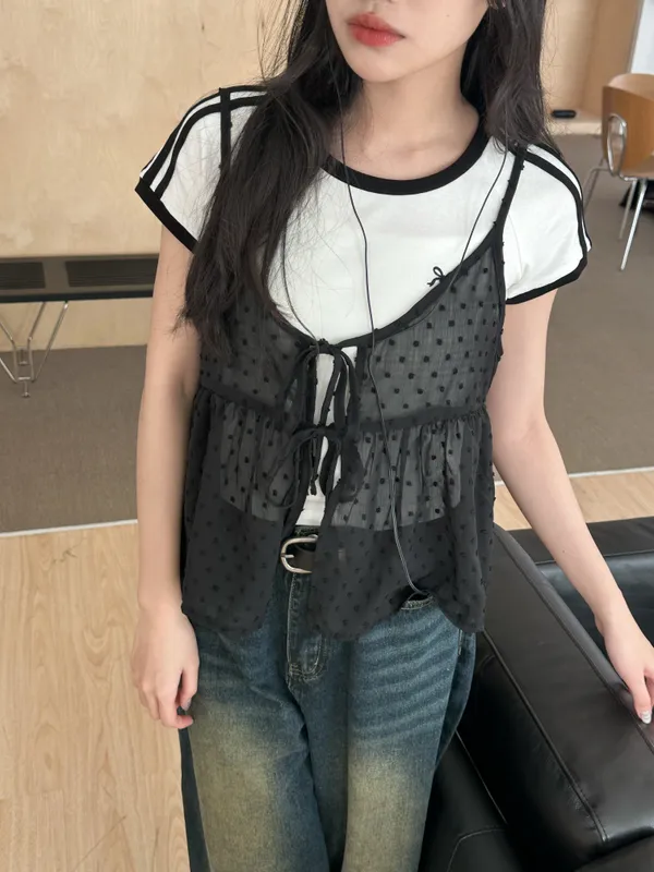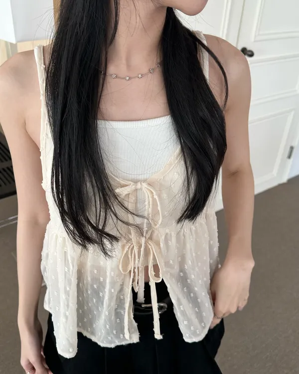 小圓點綁帶罩衫(4col)