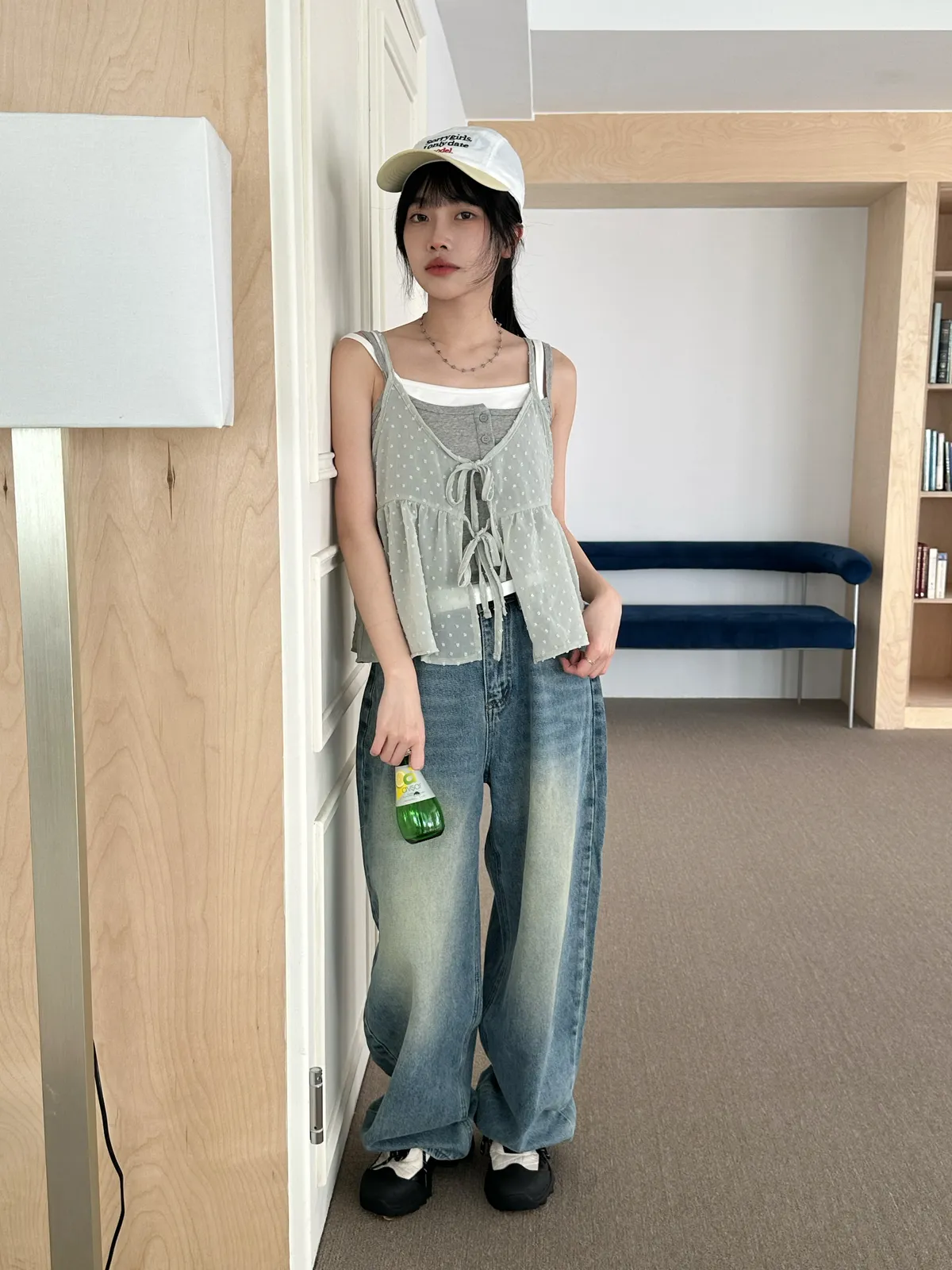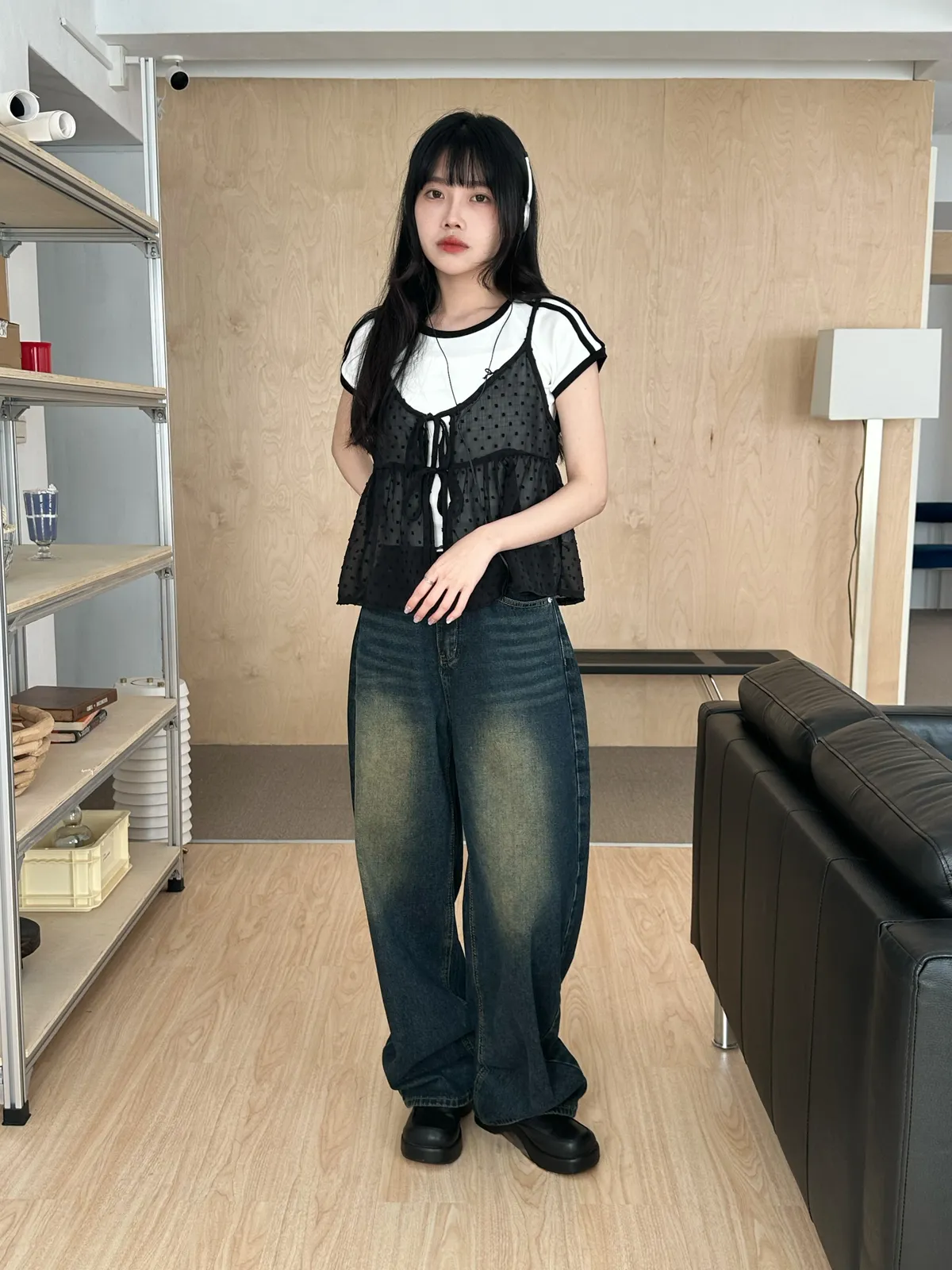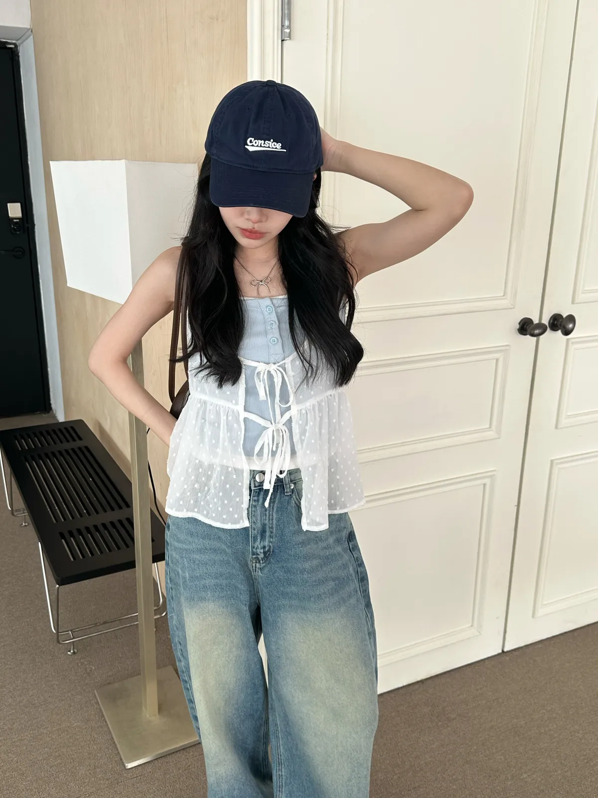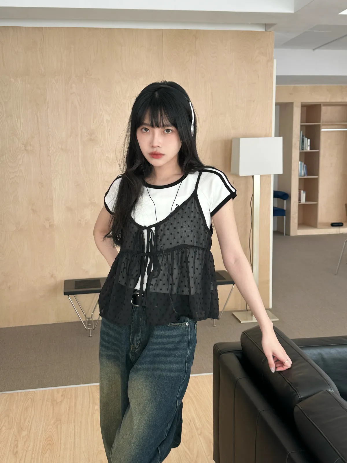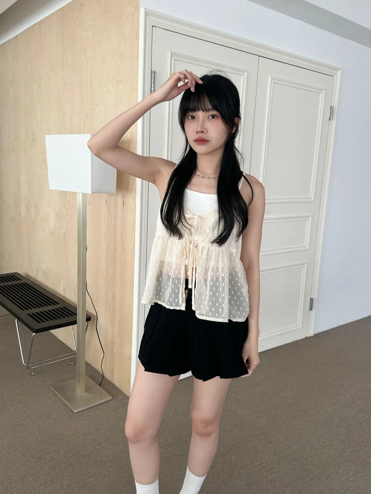 小圓點綁帶罩衫(4col)
