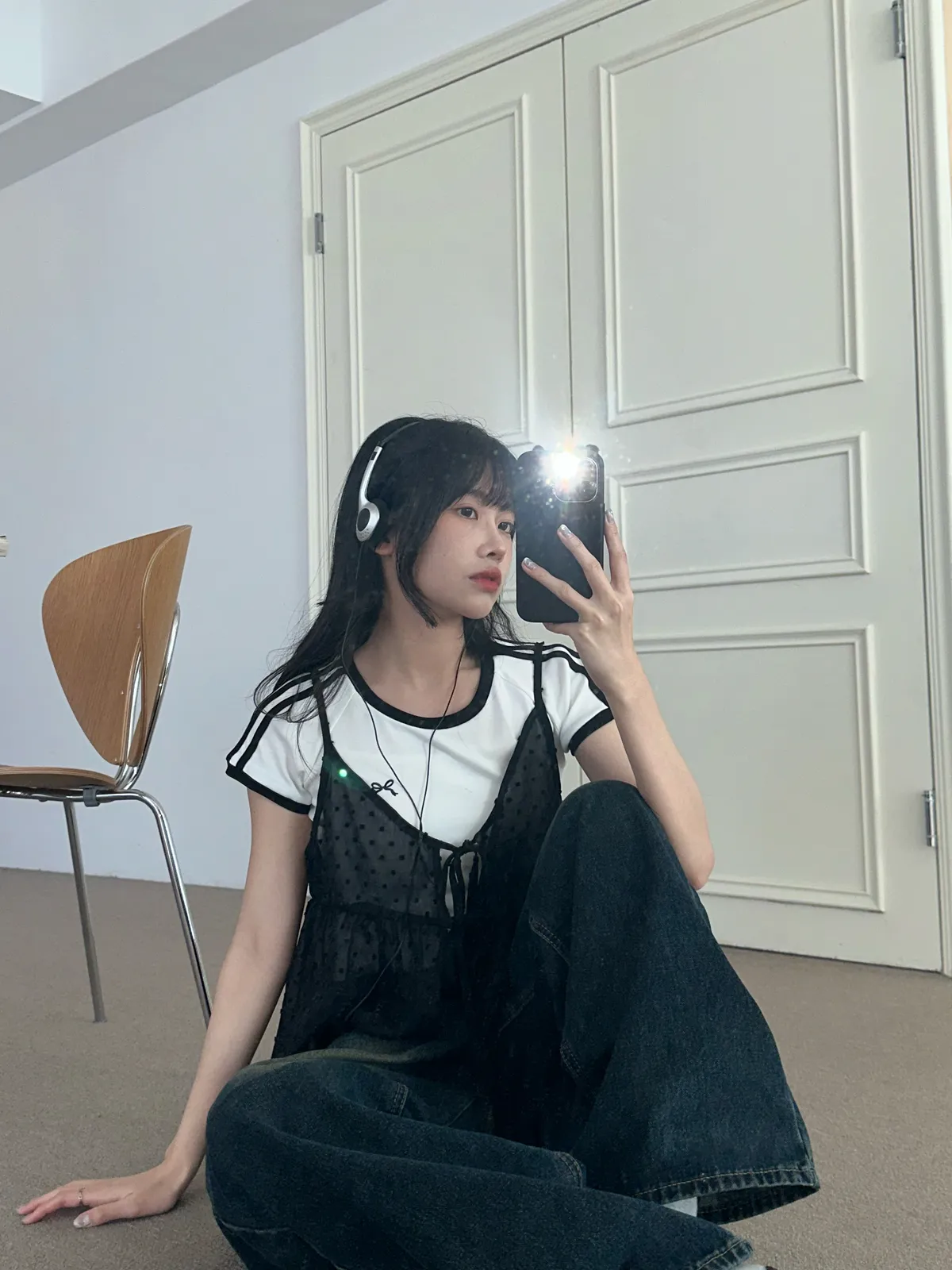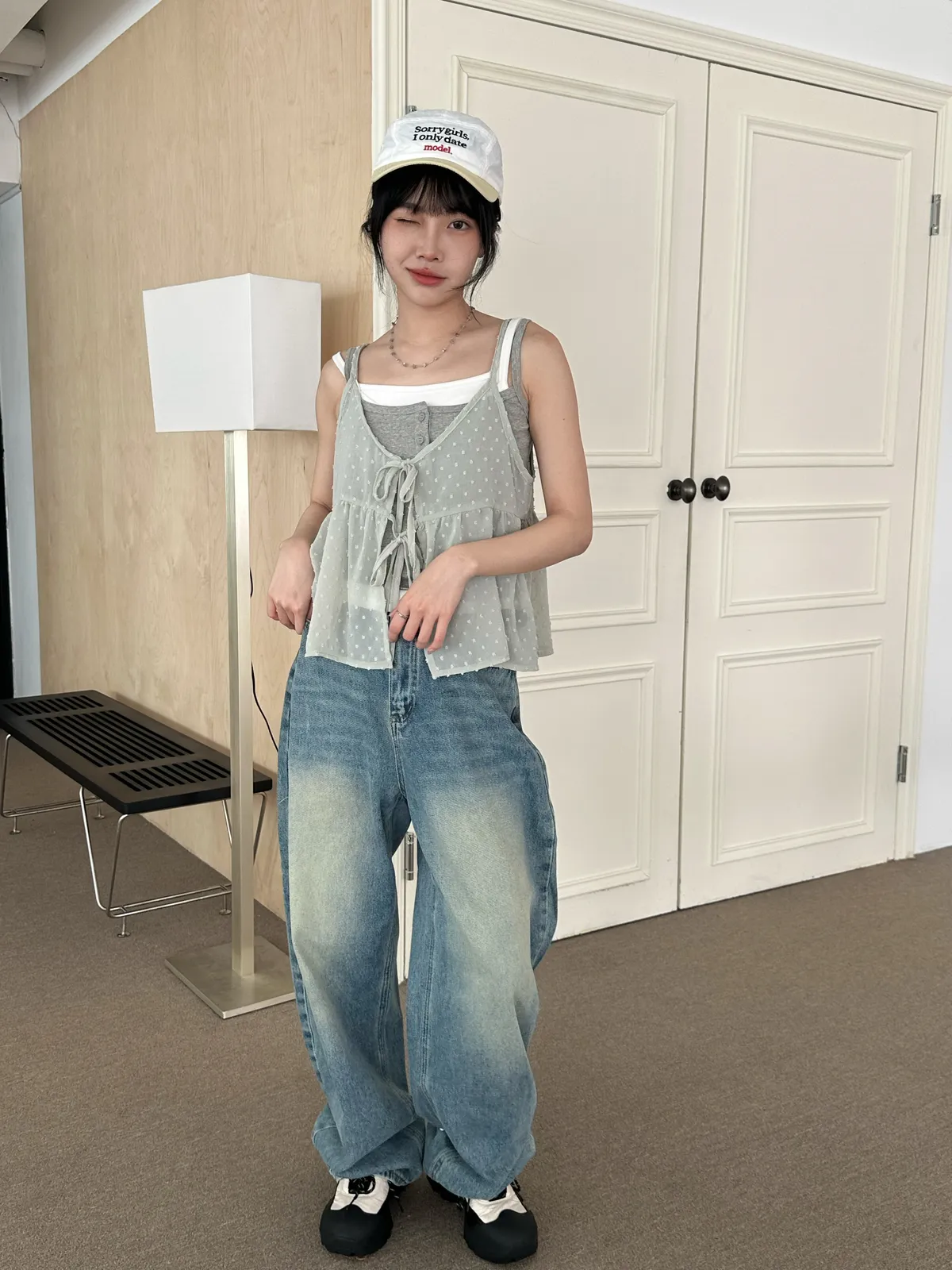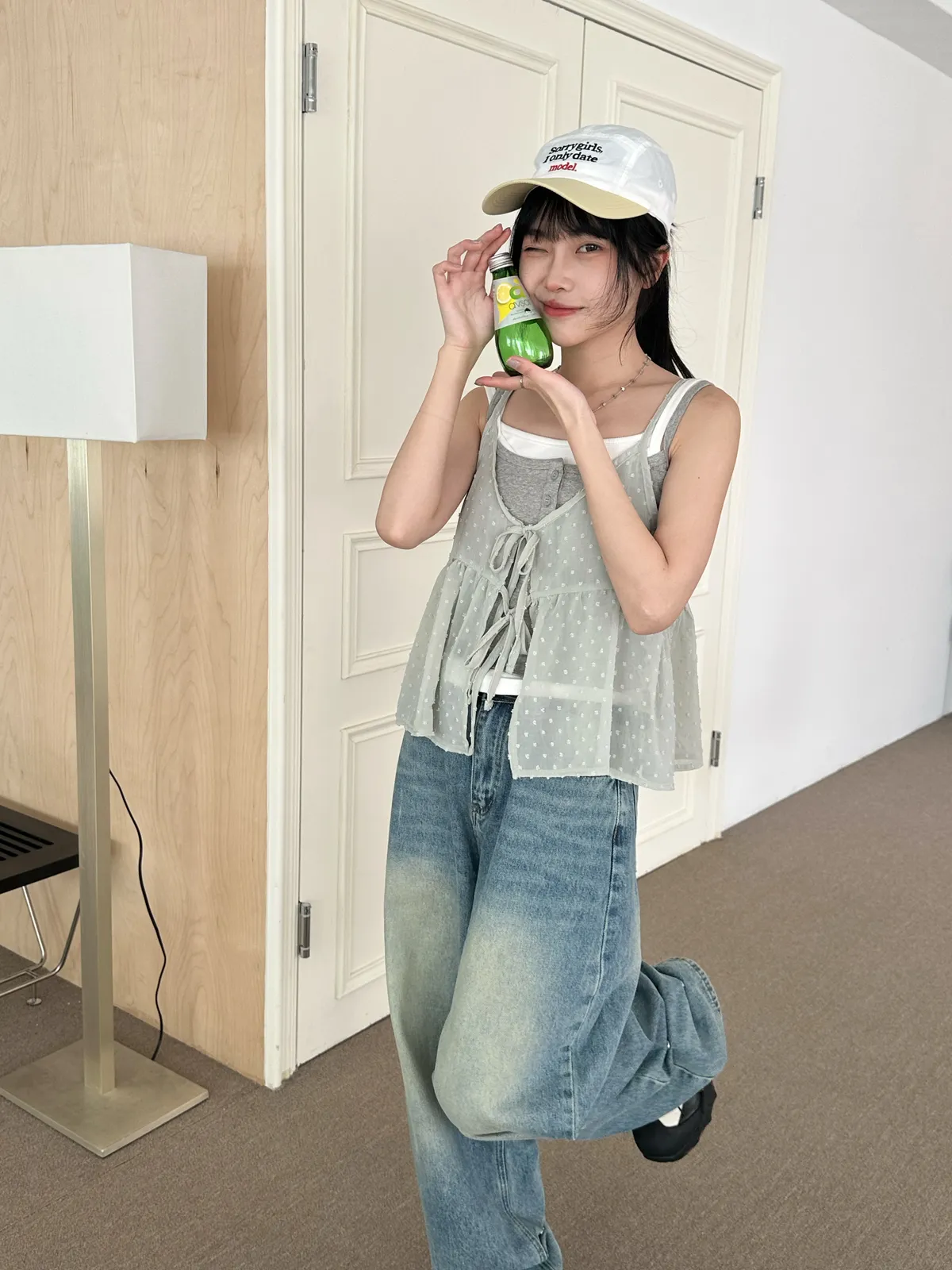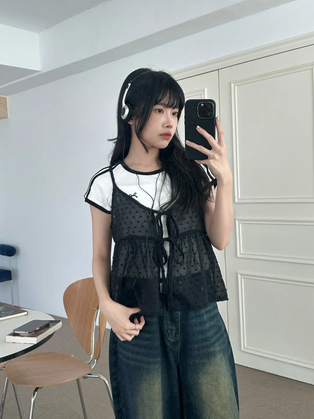 小圓點綁帶罩衫(4col)