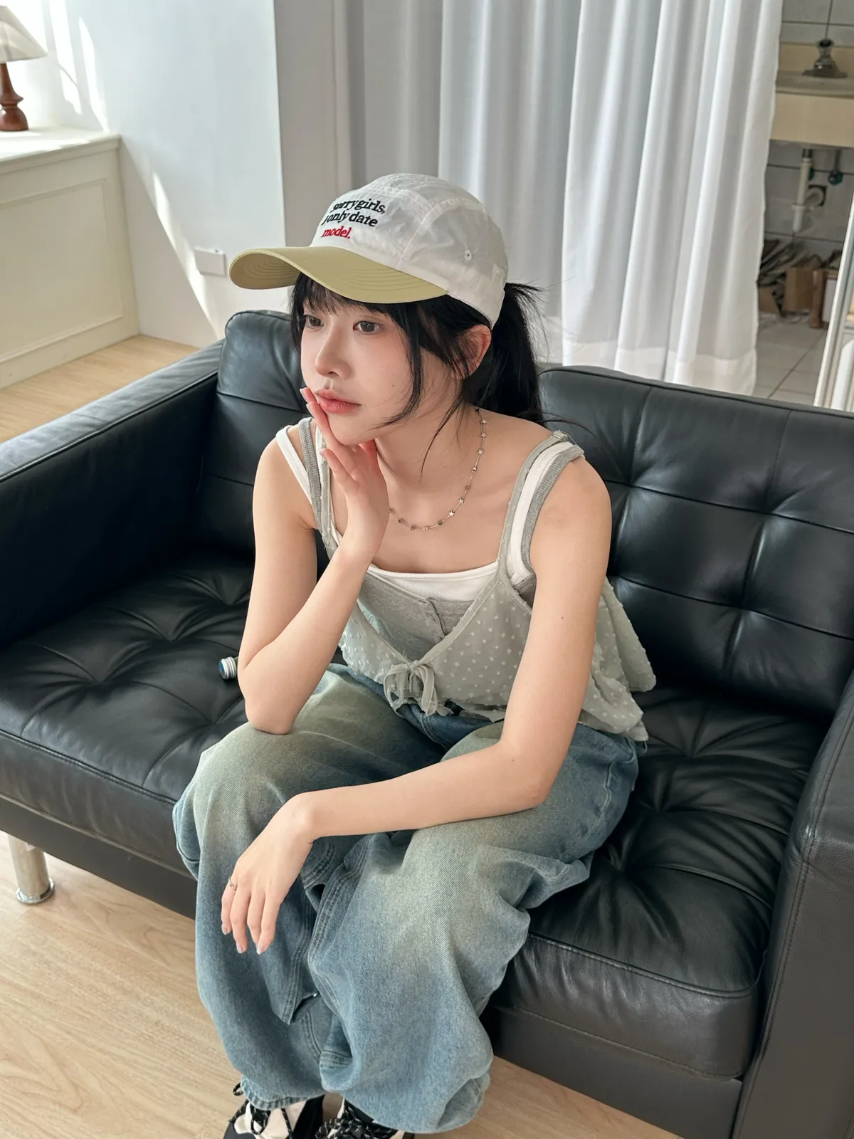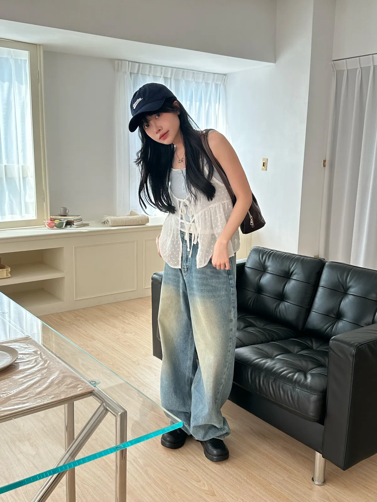 小編自留♡⃛ ̖́-設計釦牛仔寬褲(2col)