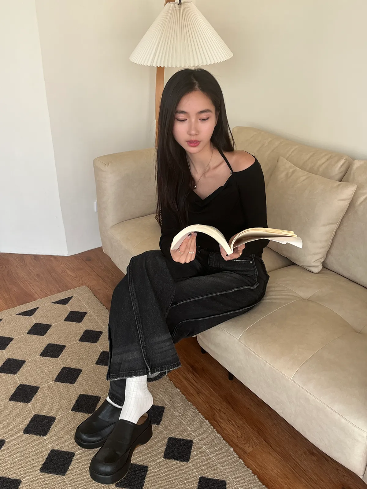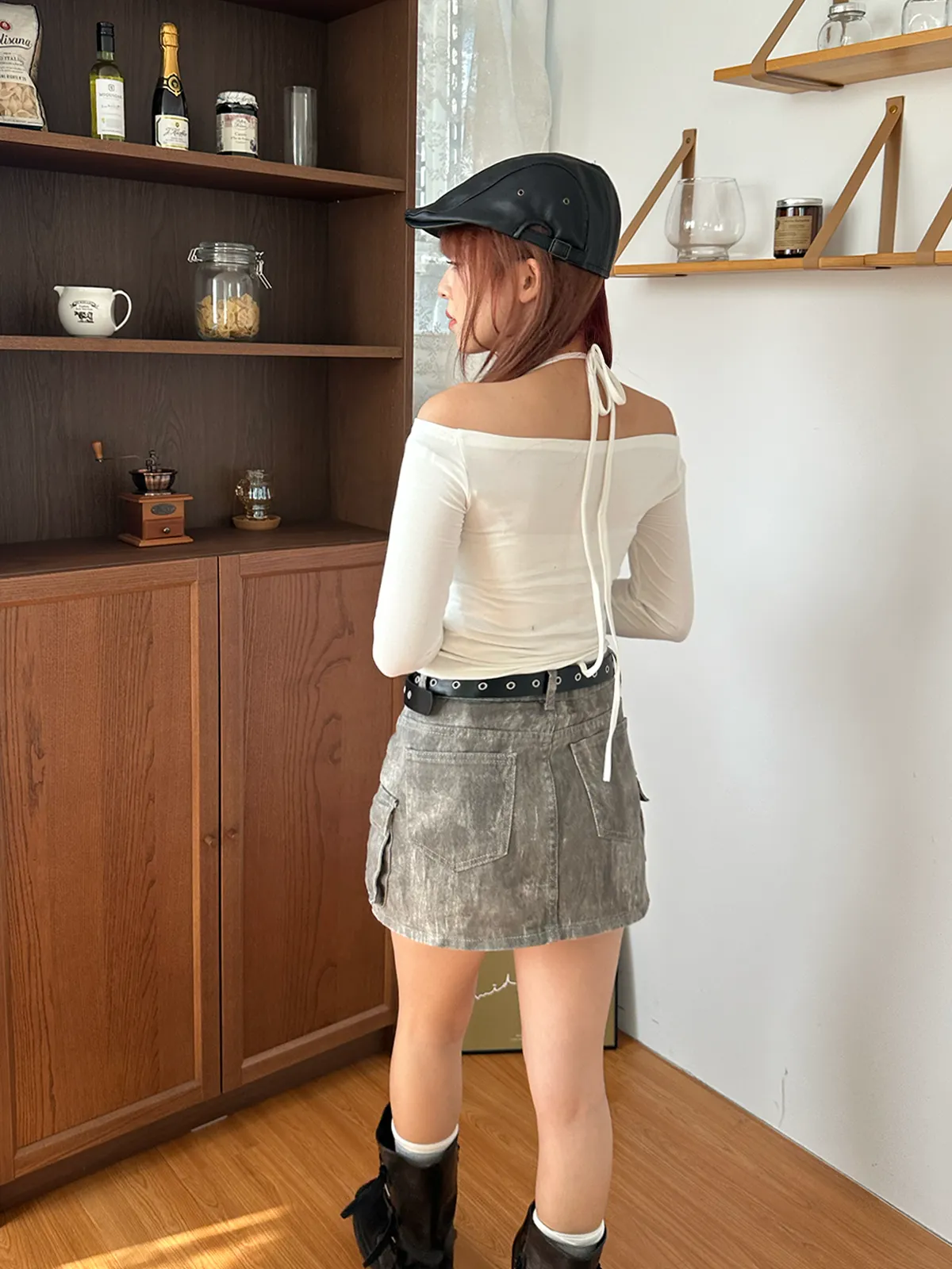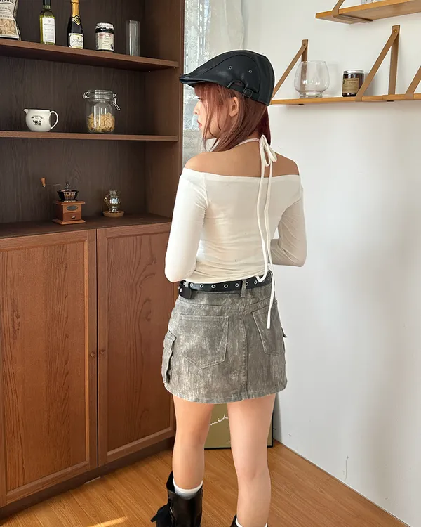 辣妹綁帶設計感平口上衣/附杯墊(2col)