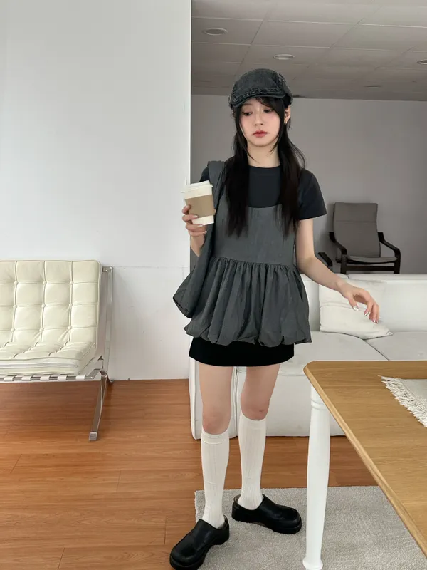 Moonlit serenade 蓬蓬綁帶背心/附包包(3col)