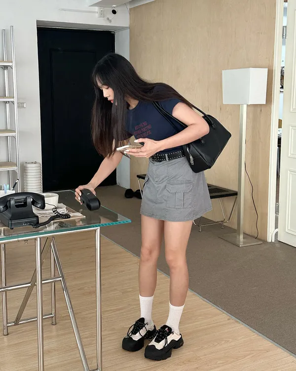 高腰工裝迷你裙(3col)