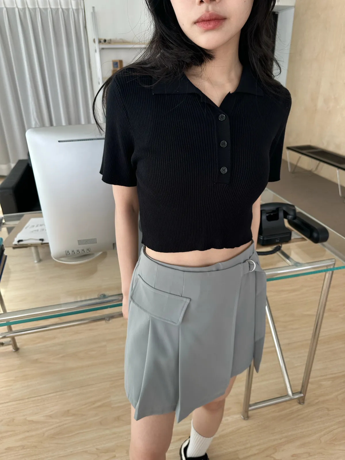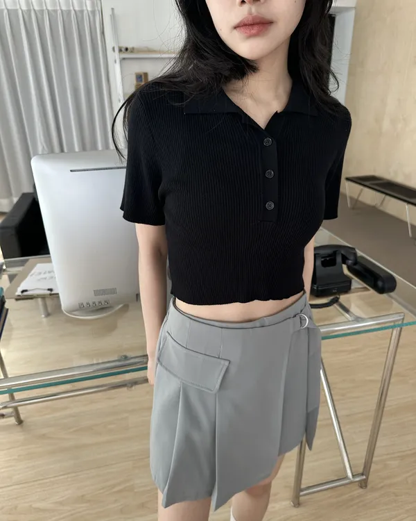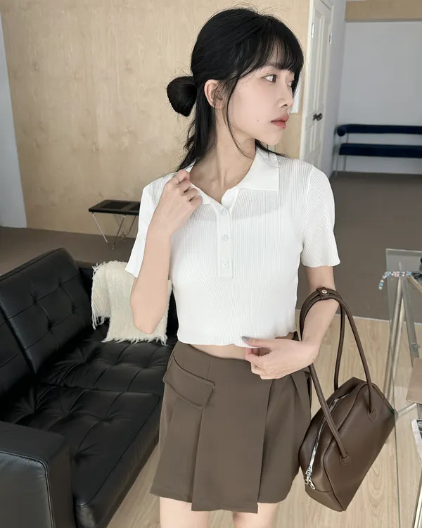 素色針織polo上衣(4col)